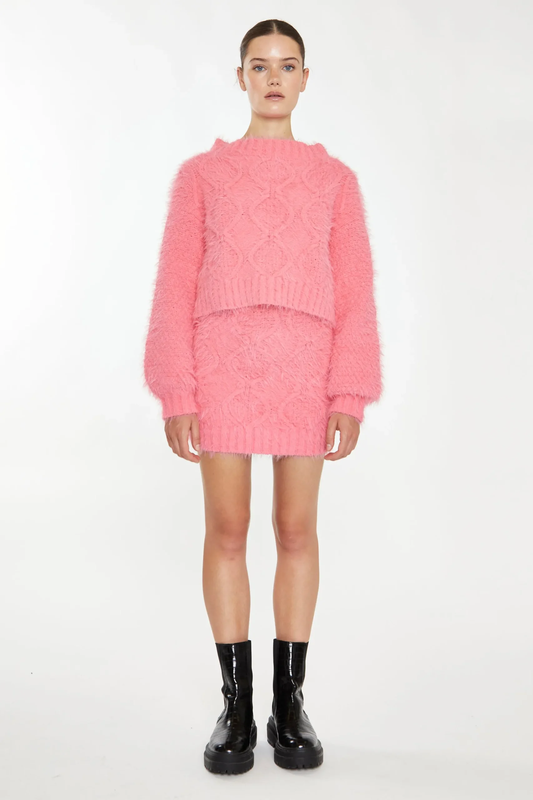 Glamorous Pink Knitted Mini Skirt. This knitted mini skirt is giving us the ultimate cosy vibes this season. Featuring a knitted style and flattering fit, this piece will look great on you! Elevate the look with our matching co-ord jumper for the ultimate on trend look.