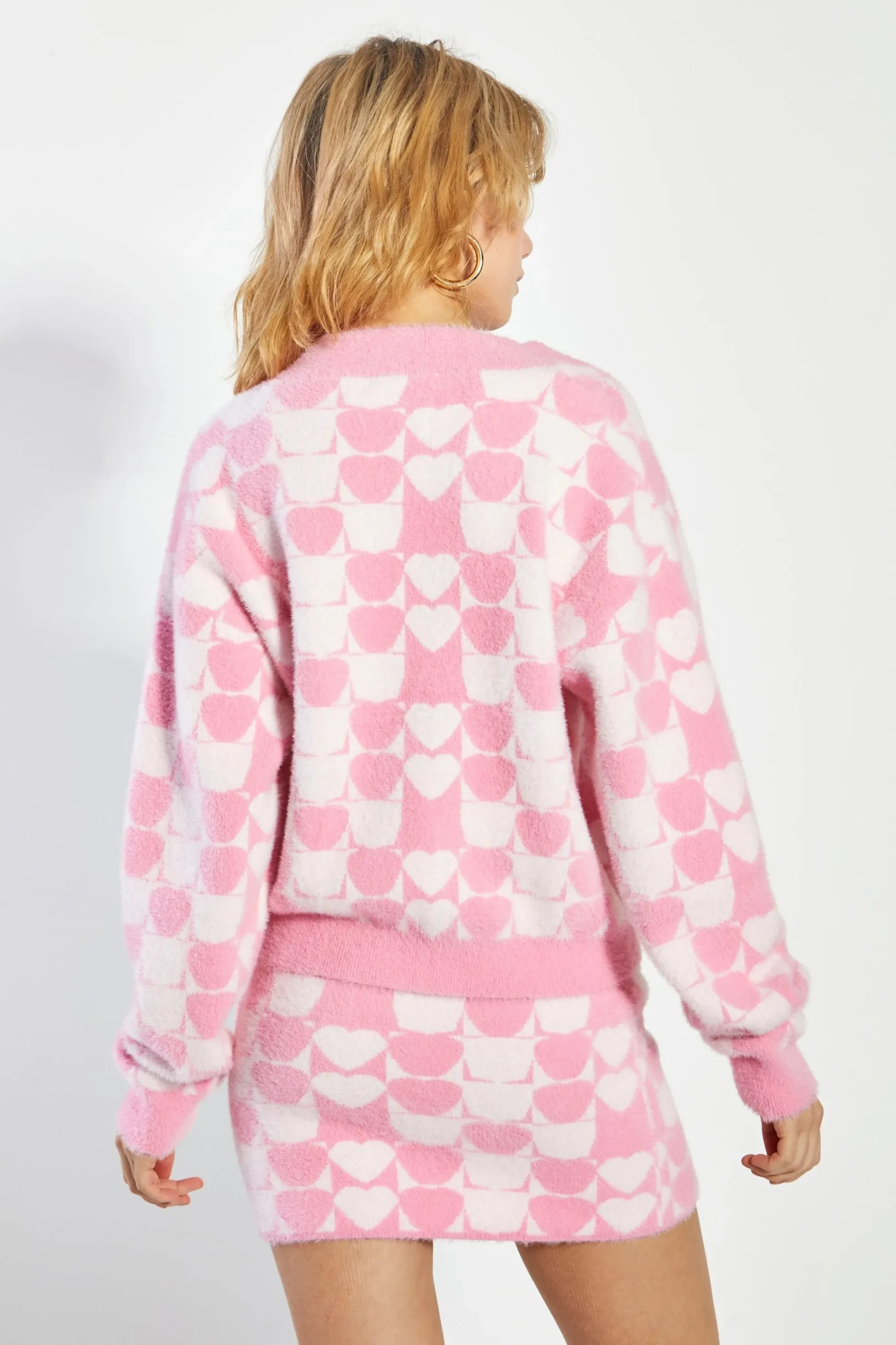 Glamorous womens Pink Multi Heart Button Front Crop Cardigan. This cardigan is perfect for your wardrobe this season. Featuring an on trend pattern, long sleeves, button detail and flattering crop fit, this cardigan is the perfect fashion forward fit for you. Pair with a midi skirt and white boots for the perfect on trend look.