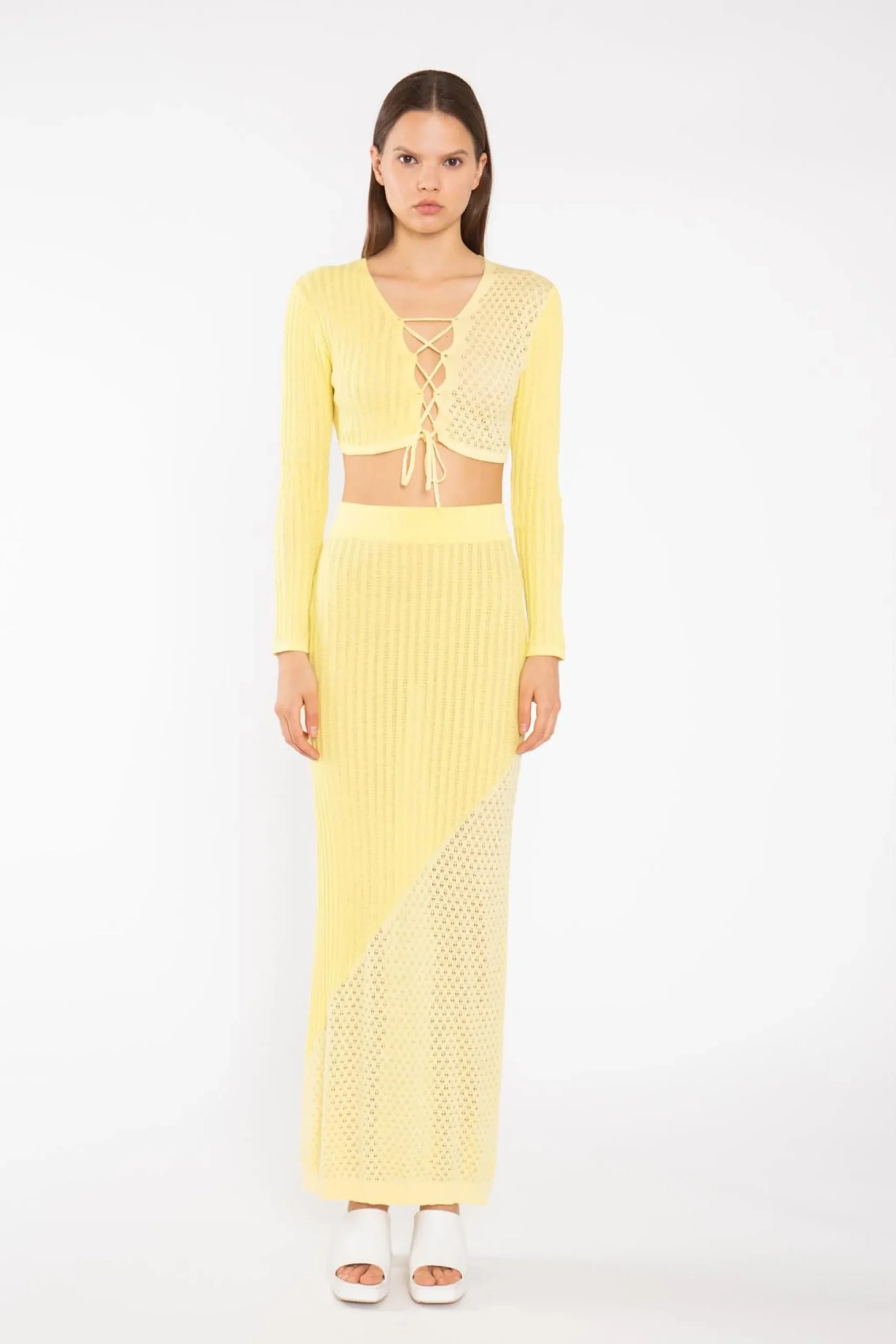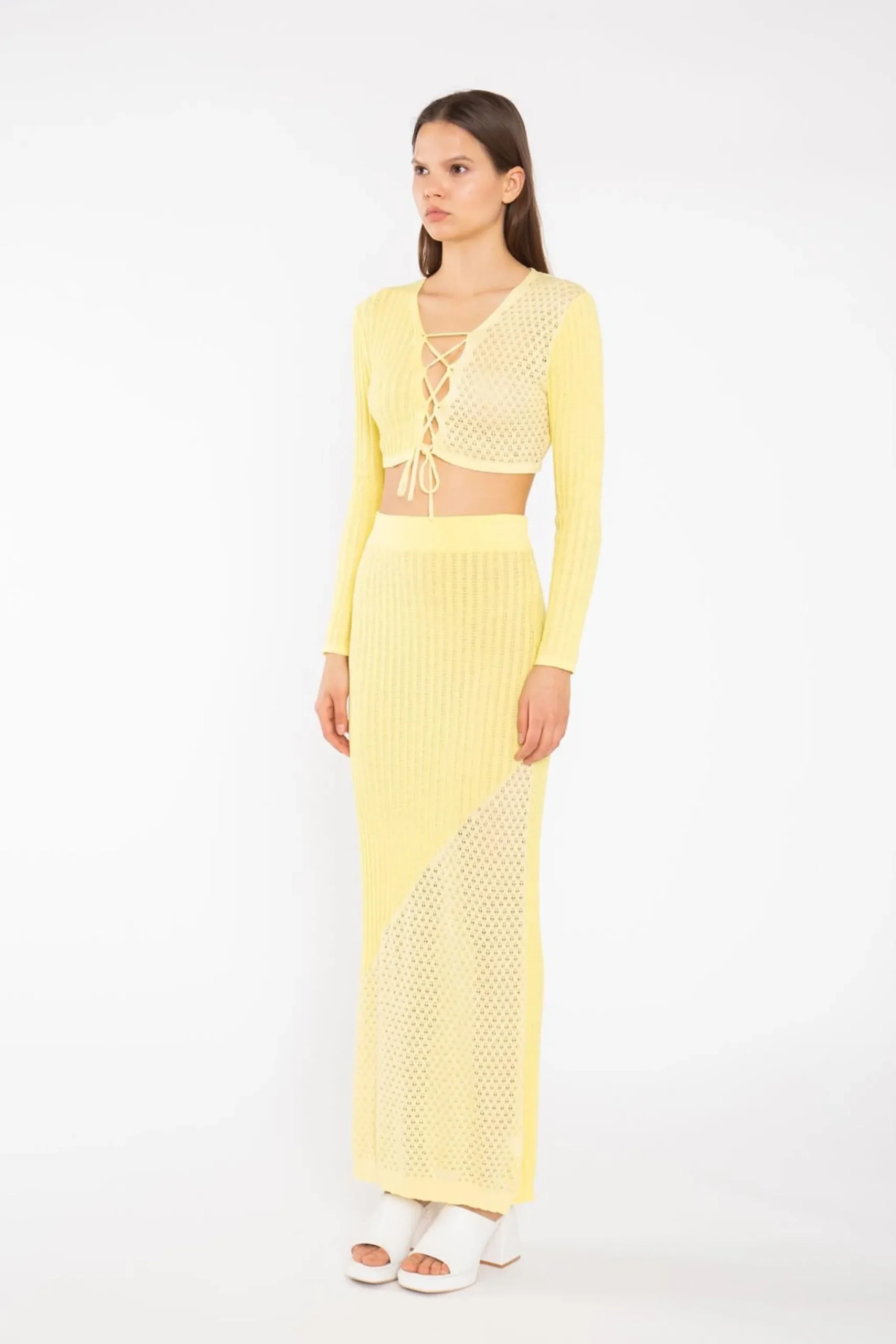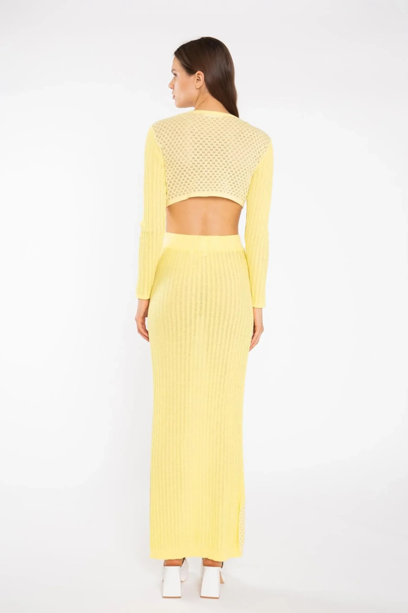 Glamorous Women’s Lemon-Yellow Mix Knit Straight Maxi-Skirt. This Lemon-Yellow Mix straight skirt is perfect for anyone looking for a look that stands out! Crafted with a mix of knit techniques and an elasticated waistband, you’ll be comfy and stylish all day. Plus, with its maxi length, you can team it up with the matching top to really make a statement.