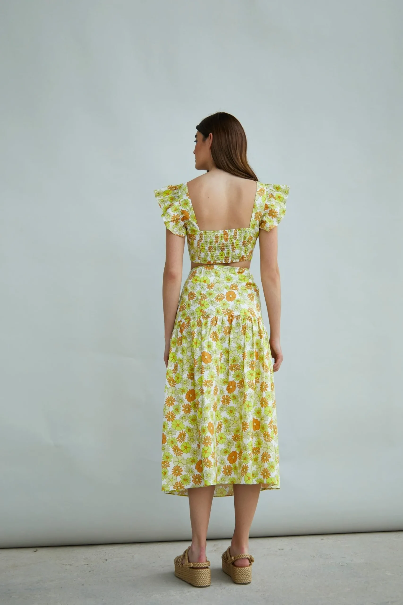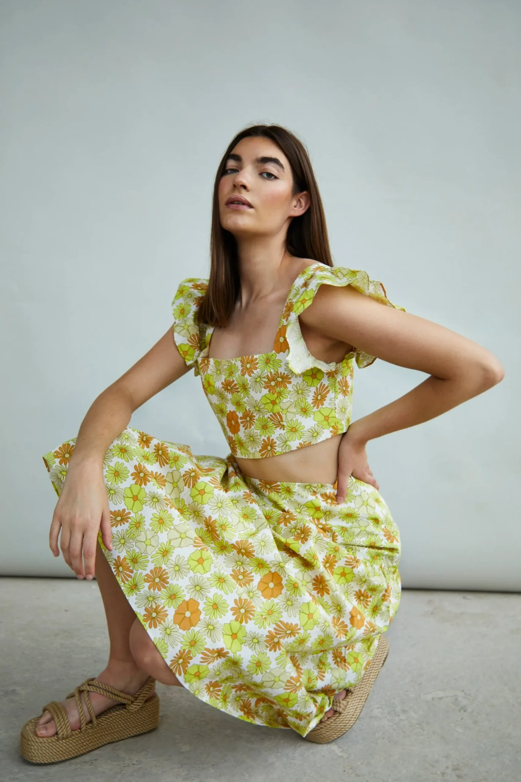 Glamorous Collection White Retro Floral Gathered Midi Skirt. If you add this piece to your wardrobe you wont regret it! Opt for bright summer florals with this flattering gathered midi skirt. Pair with the matching top for a fashionable co-ord moment.