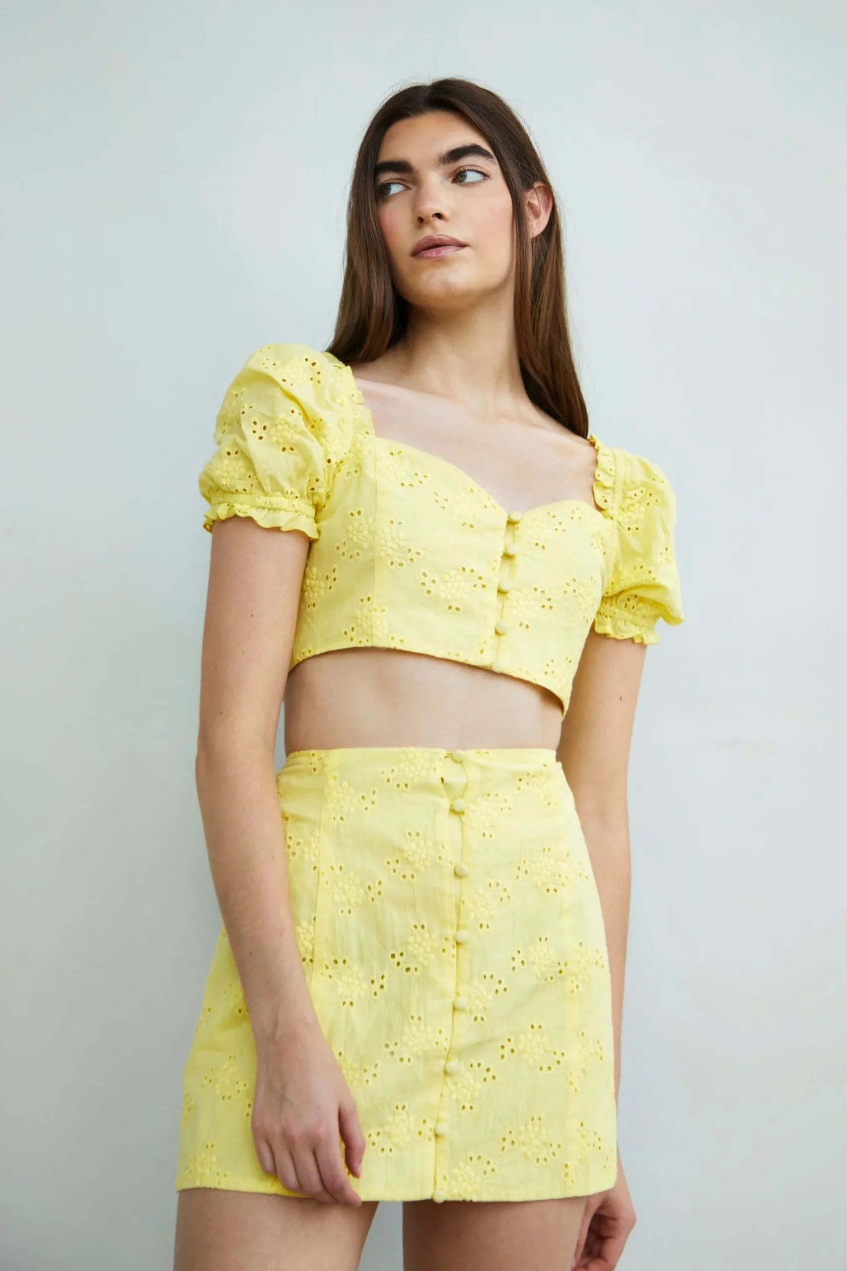 Glamorous Collection Yellow Button Through Mini Skirt. Add a pop of colour to your wardrobe with this fresh yellow mini skirt. Pair with the matching top for a super on trend co-ord this season.