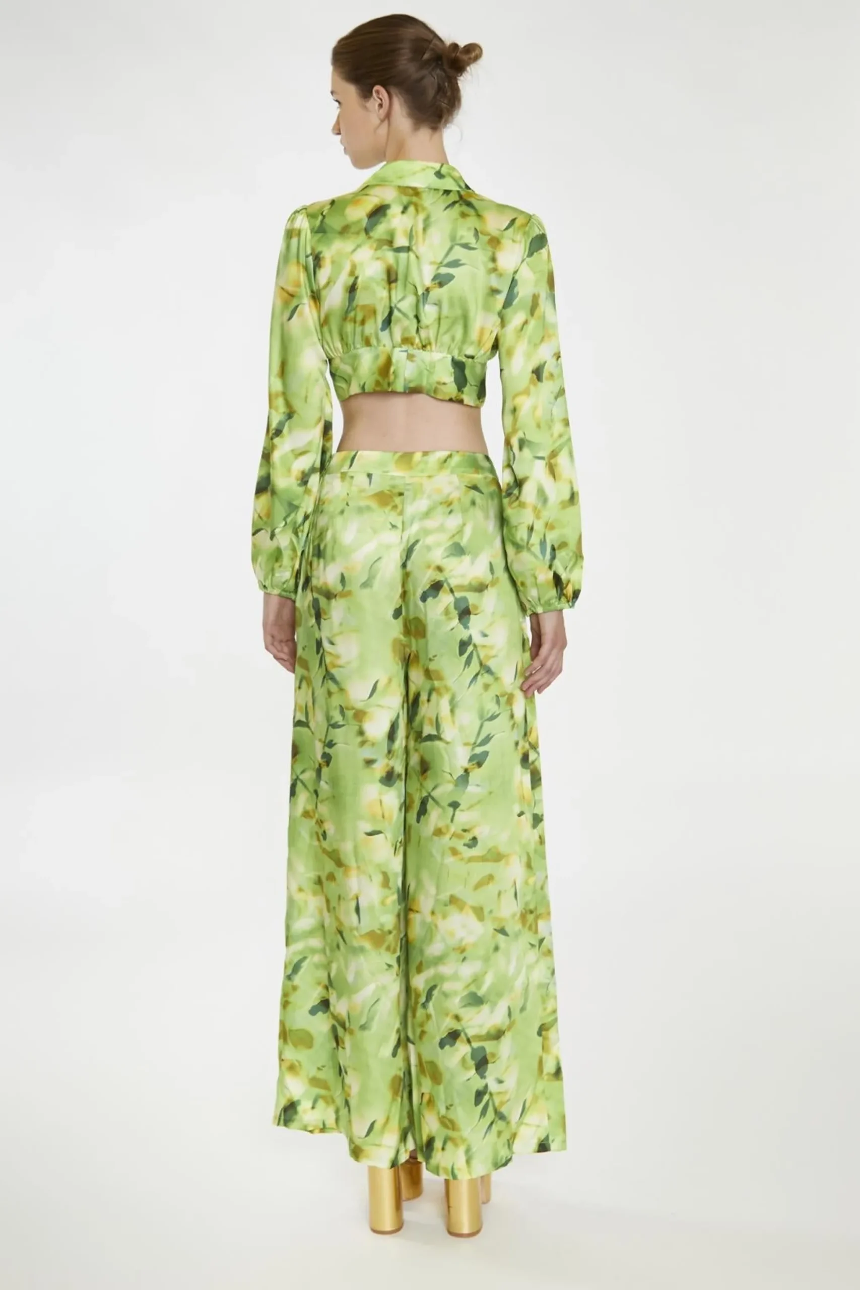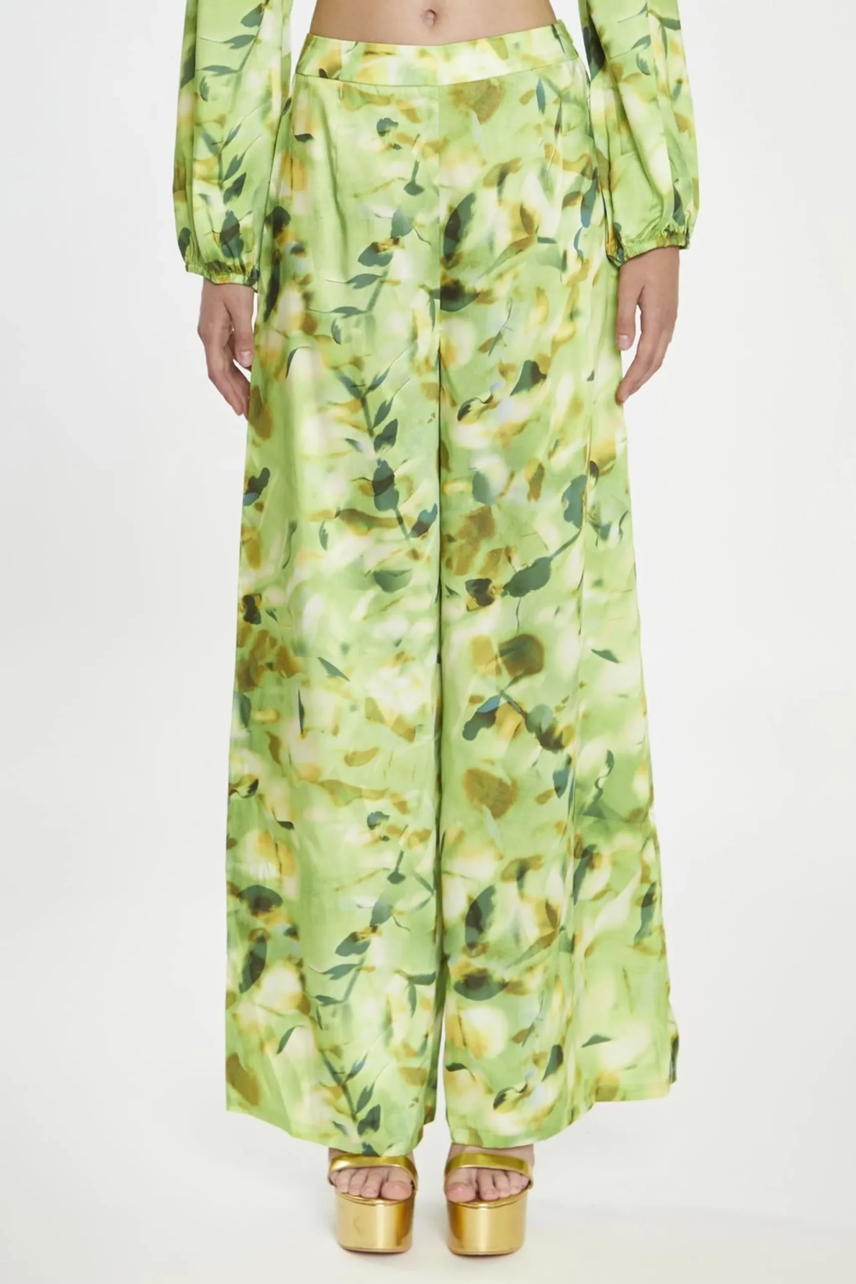 Glamorous Women’s Green Multi-Blur Wide Leg-Trousers. Take a risk and stand out from the crowd! Get ready to steal the spotlight with these Green Multi-Blur Wide Leg-Trousers! The high waisted fit and wide leg design are sure to turn heads and make a statement. Spread your fashion wings and pair them with our coordinating blouse or top for a daring and distinctive appearance. Shake things up and confidently stand out from the sea of boring fashion choices!