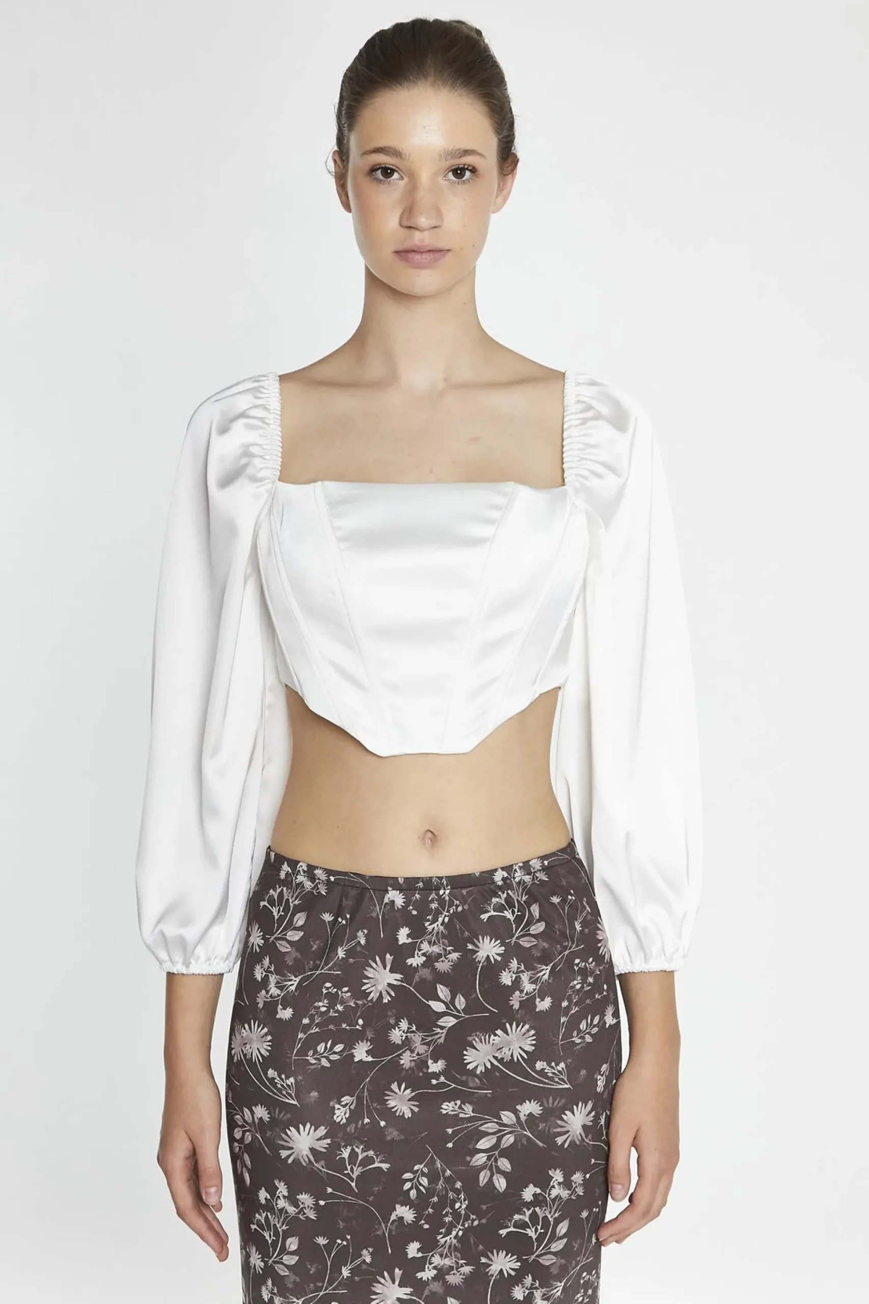 Glamorous Women’s White-Satin Corset Crop-Top. Add a touch of luxury to your wardrobe with this white satin corset crop top. The square neckline creates a flattering silhouette, while the luxurious satin fabric feels smooth against your skin. The internal corset boning provides extra support and shaping, while the puff sleeves add a playful touch. The shirred back panel adds comfort to the fit, and the cropped length is perfect for pairing with your favourite high-waisted bottoms. This top is ideal for a special occasion or a night out on the town. Pair it with some high-waisted pants and heels for a glamorous look, or dress it down with some distressed denim jeans and boots for a more relaxed vibe. The white satin colour is both elegant and timeless, making this top a true showstopper. This crop top is sure to make you feel confident and fabulous from the moment you put it on.