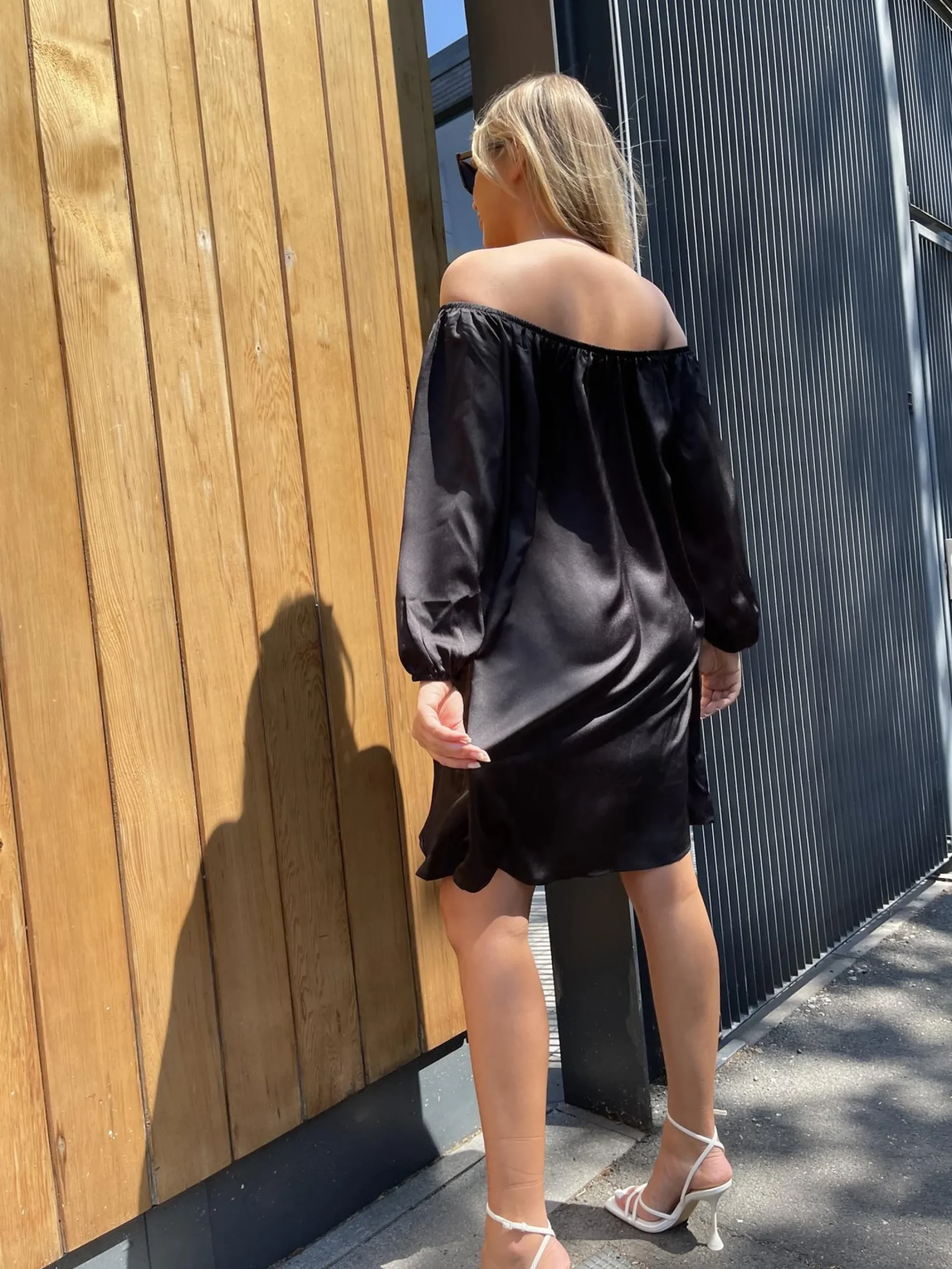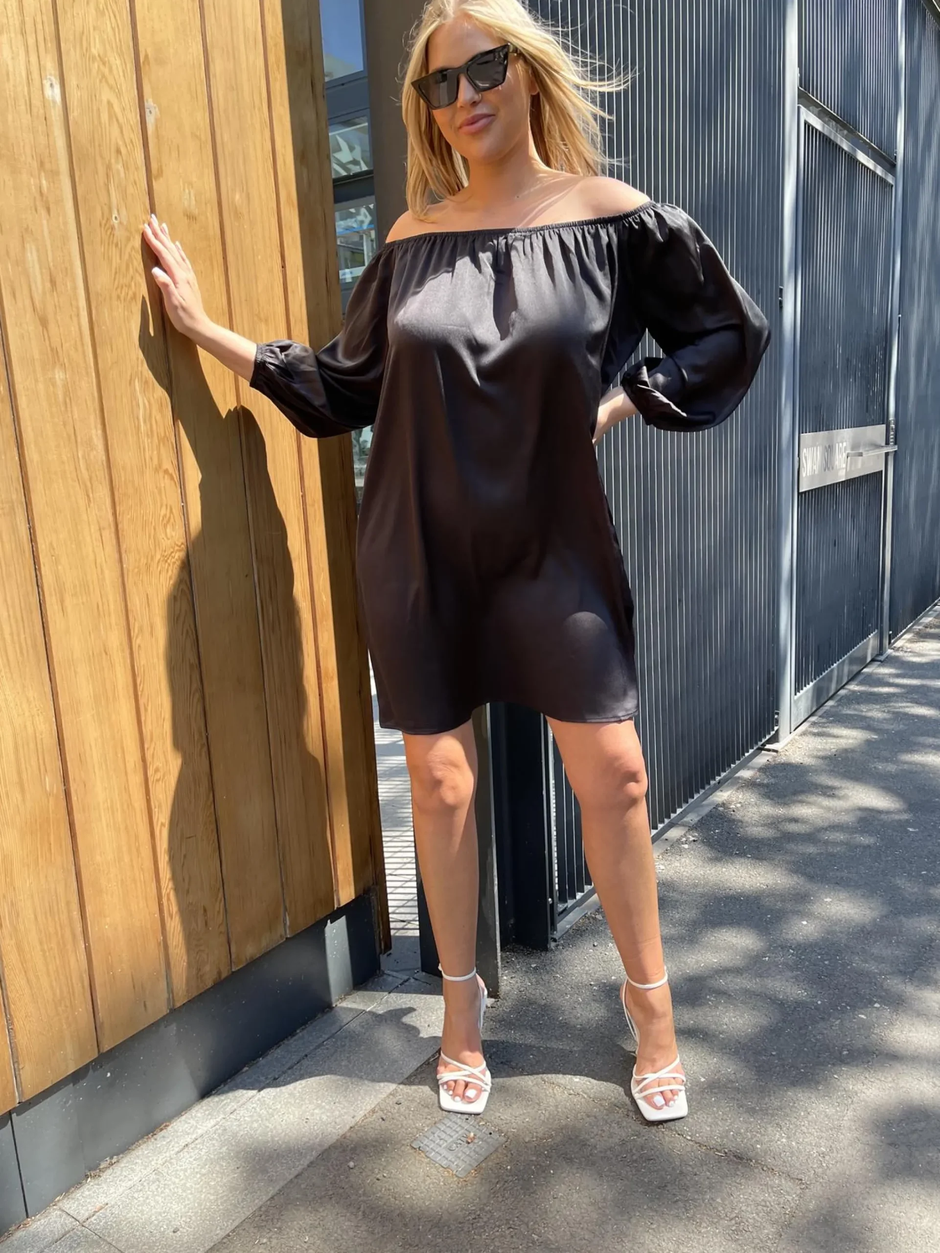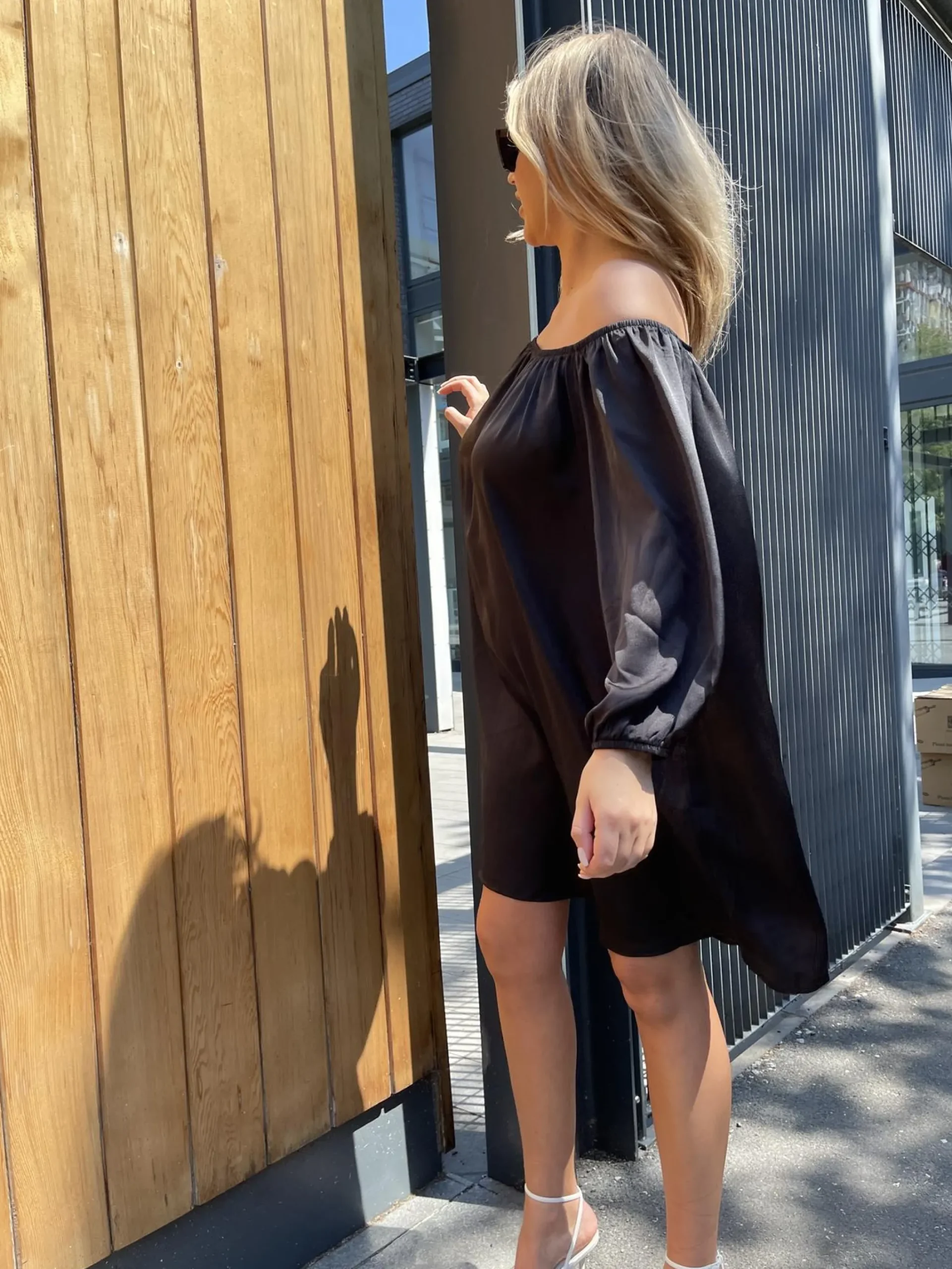 Glamorous Curve Women’s Black Bardot Mini-Dress. Unleash your inner fashionista in our Black Bardot Mini-Dress. Featuring a stylish Bardot neckline, loose swing fit, and 3/4 length sleeves, this mini dress will have you looking effortlessly chic. Perfect for any occasion, this dress is a must-have addition to your wardrobe.