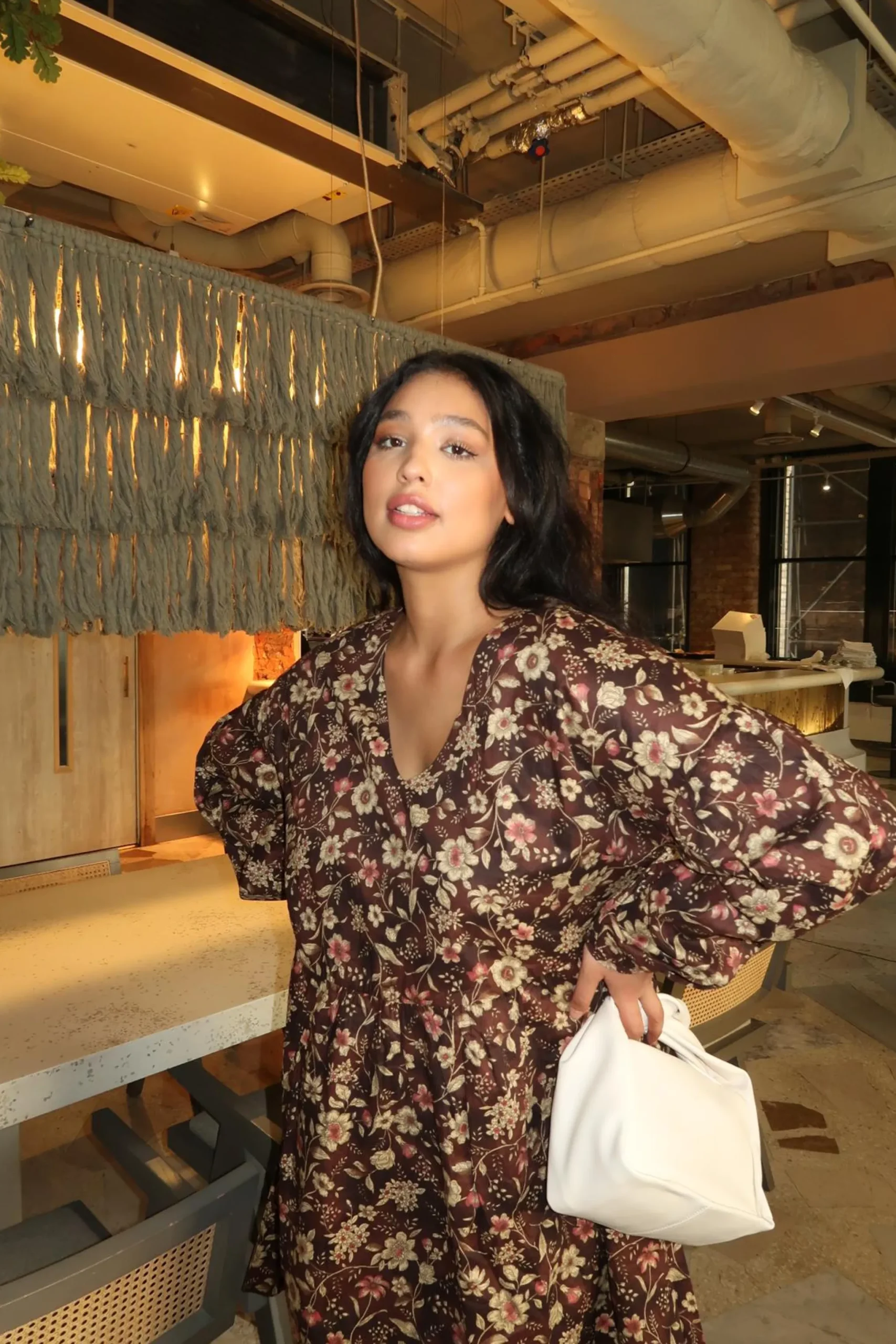 Glamorous Women’s Brown Brown floral midi Midi-Dress. This brown floral midi dress brings together ease and style, perfect for any day when you want to feel comfortable and put-together. The lined bodice offers a soft and secure fit, giving you that extra layer of comfort throughout the day. With its delicate floral print, this dress brings a fresh, nature-inspired touch to your wardrobe. Fully lined, it flows beautifully, making it an effortless choice for casual outings or relaxed events. The tie-back detail adds a subtle, playful element, allowing you to adjust the fit just the way you like. Pair it with simple flats or dress it up with neutral sandals for a versatile look that works across seasons.