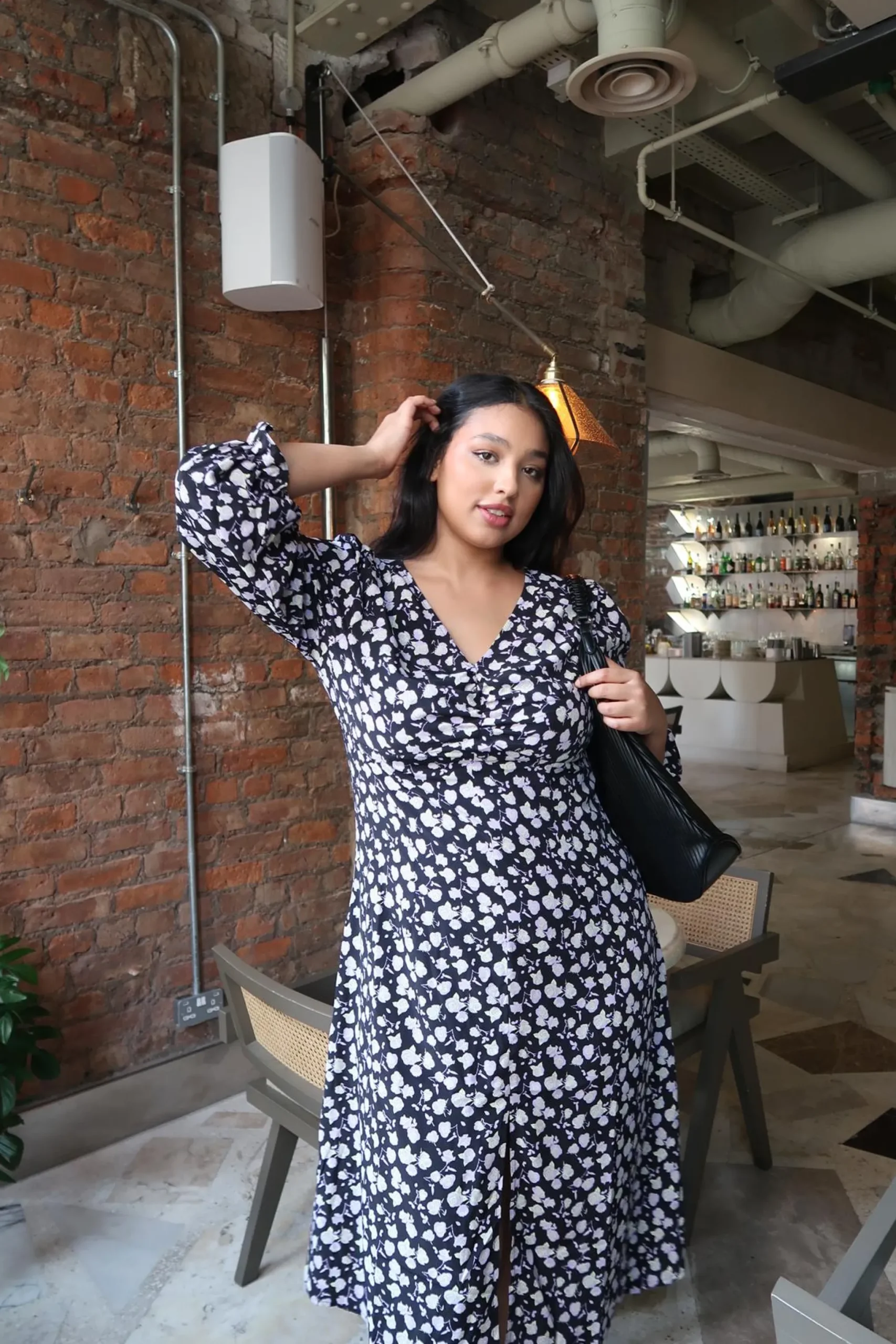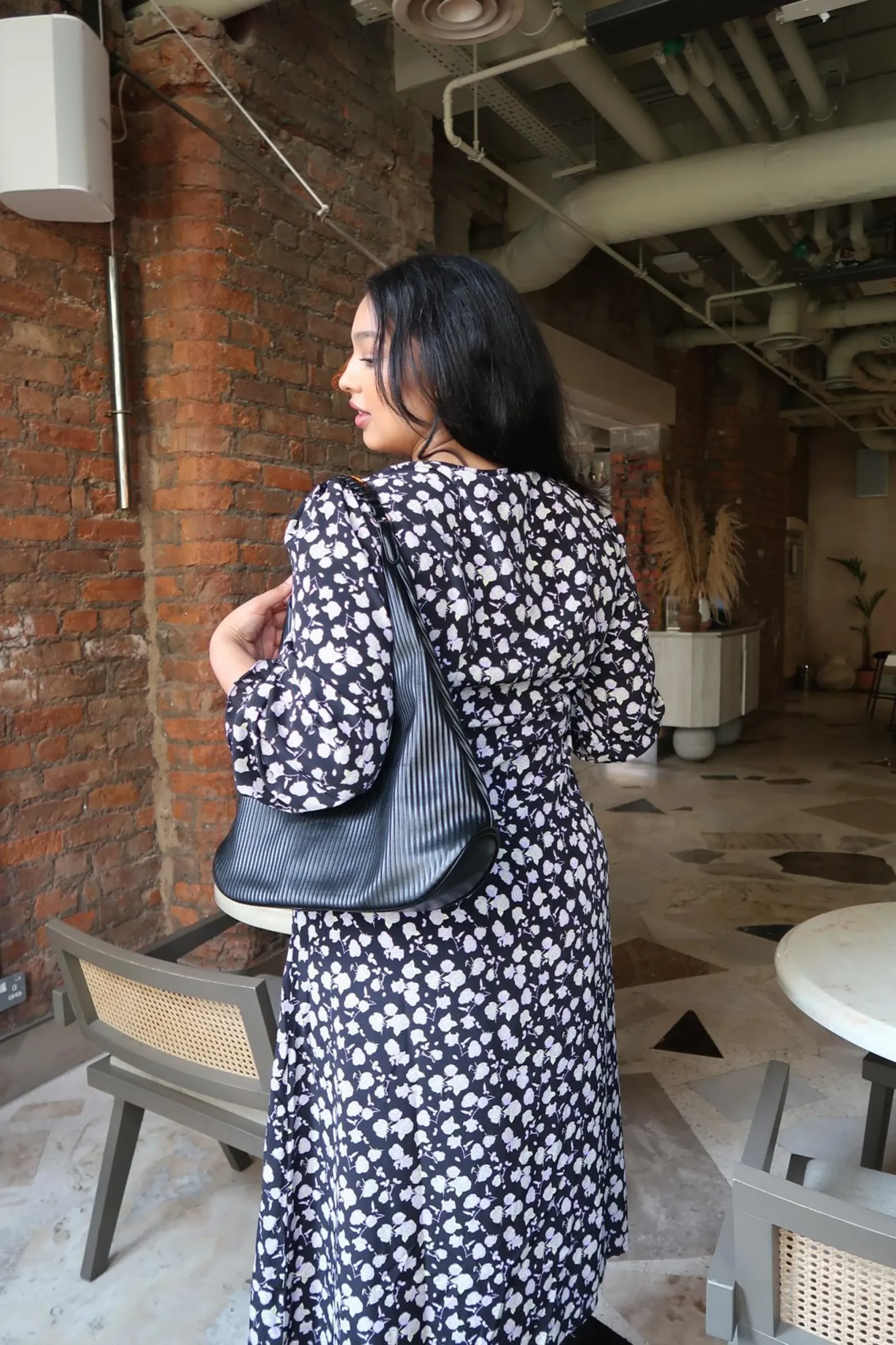 Glamorous Women’s Lilac Rose Comfortable Midi-day dress. This black midi-day dress is a perfect blend of comfort and style, designed for easy-going days when you want to feel good and look great. The floral print adds a touch of nature-inspired charm, while the mid-length sleeves and V-neck create a flattering silhouette that feels just right for daytime wear. The soft fabric ensures you stay comfortable from morning to evening, whether you’re out for coffee or running errands. Pair it with sandals for a relaxed look or dress it up with ankle boots and accessories for something a little more polished. It’s an effortlessly stylish piece that can easily take you from day to night.