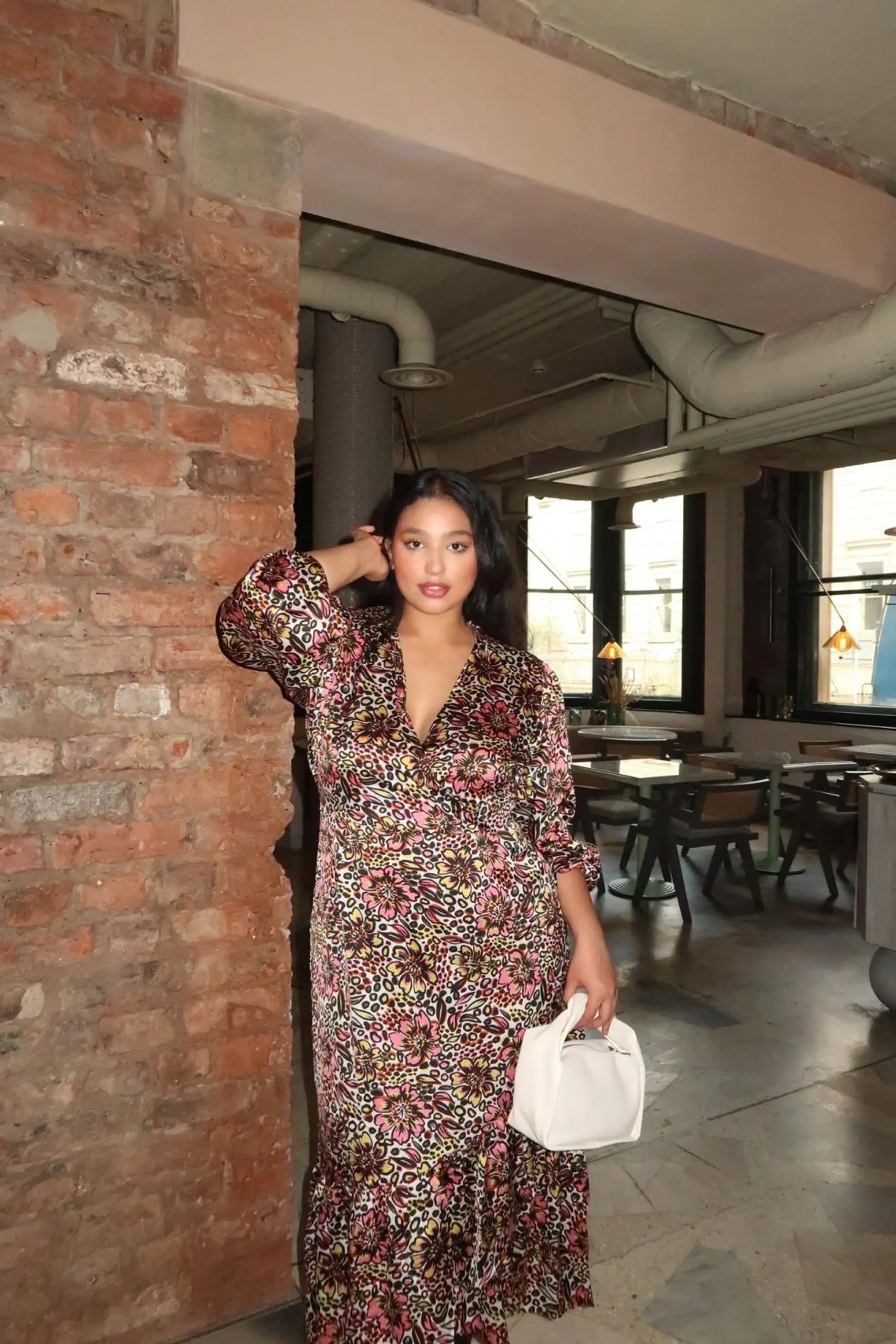 Glamorous Day Dresses|Glamorous Curve|Retro Abstract-Floral Fixed Wrap Midaxi-Dress –