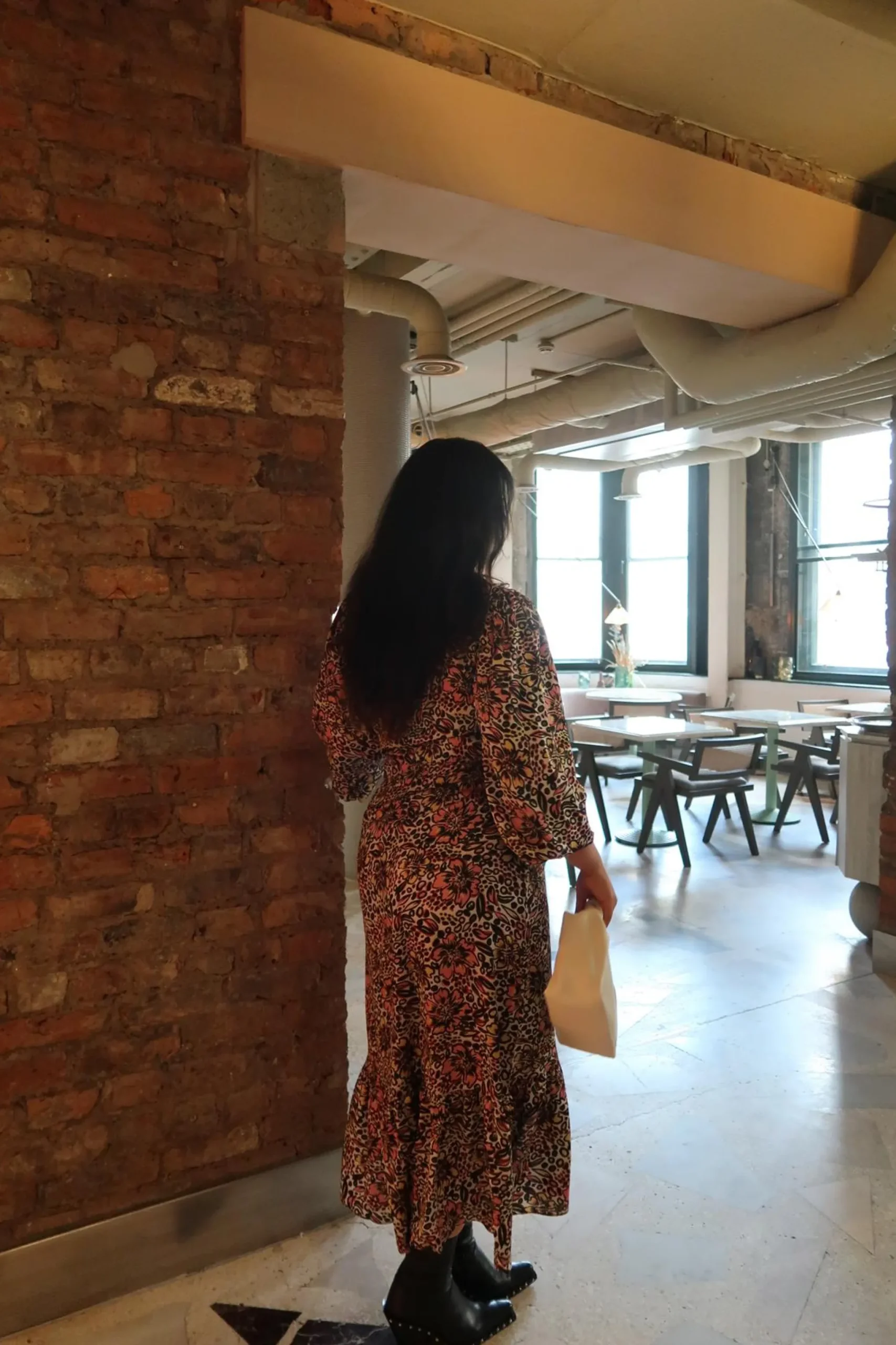 Glamorous Women’s Retro Abstract-Floral Fixed Wrap Midaxi-Dress. Get ready to turn heads in our Retro Abstract-Floral Fixed Wrap Midaxi-Dress. With a playful fixed wrap design and charming ruffle hem, this dress is perfect for making a statement. Stay stylish and comfortable with long sleeves and a midaxi length. You’ll love the unique twist this dress brings to your wardrobe!