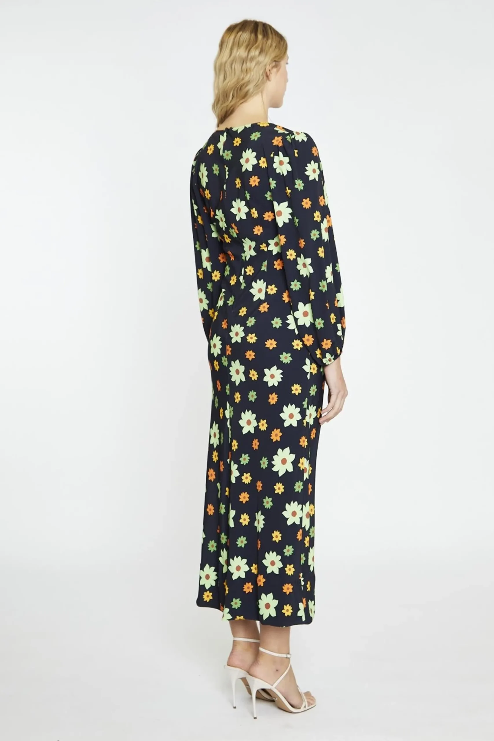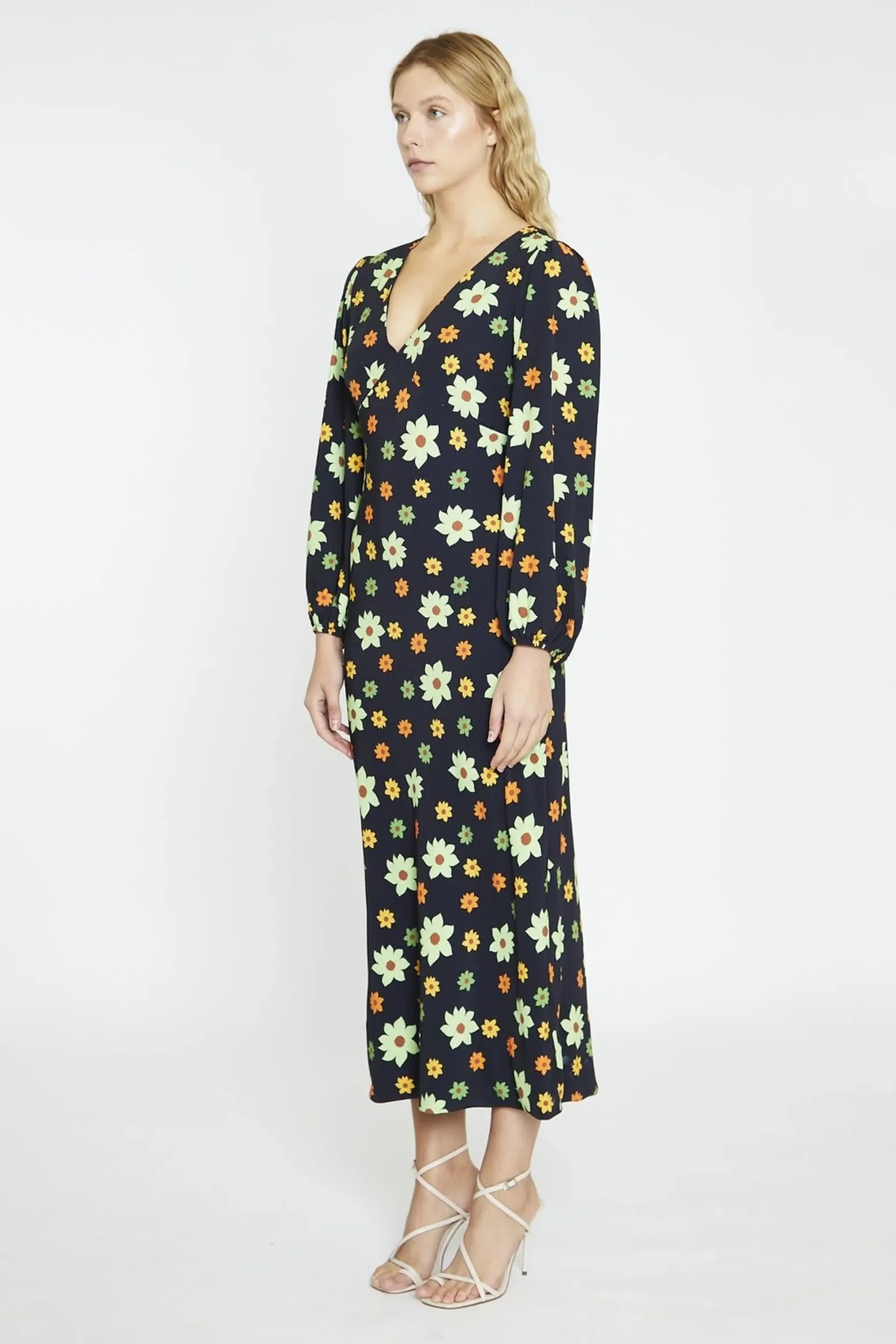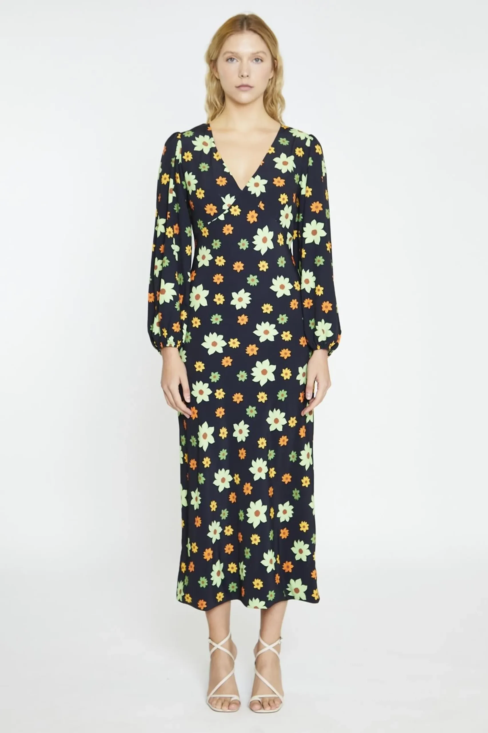 Glamorous Women’s Black-Green Flower V-Neck Maxi-Dress. This maxi dress is perfect for any occasion. The v-neck and long puff sleeves give it a flattering, feminine look. The bias cut and fitted silhouette create a figure-hugging shape, while the maxi length keeps you covered and comfortable. It’s fully lined for added coverage and has a concealed zip fastening at the back for easy on and off. The black and green floral print adds a touch of nature-inspired style. Pair it with sandals for a casual daytime look, or dress it up with heels for a night out. This versatile dress is sure to become a wardrobe staple.