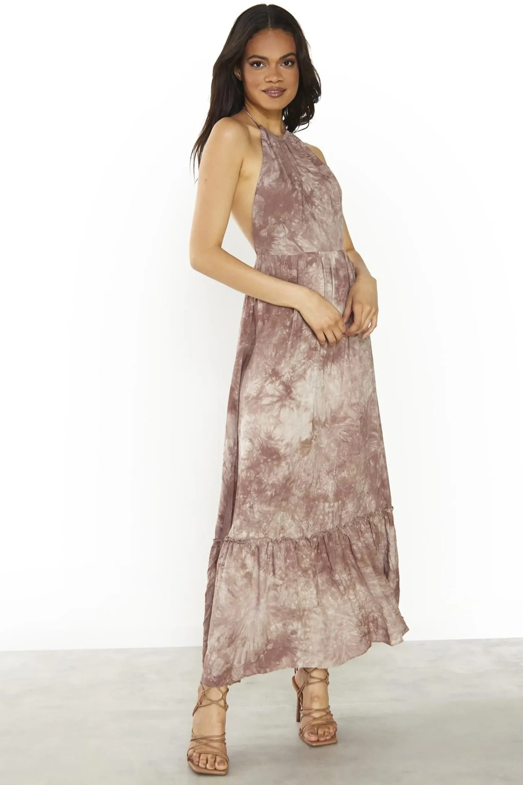 Glamorous Women’s Brown Tie-Dye Halter-Neck Maxi-Dress. Discover the effortless charm of the Brown Tie Dye Halter Neck Maxi Dress, a perfect blend of comfort and style for those sunny days or relaxed evenings. The halter neck design beautifully showcases your shoulders, while the open back adds a touch of allure without being too revealing. The unique tie-dye pattern in warm brown tones creates a laid-back vibe that feels both trendy and timeless. This maxi dress flows gracefully with every step, making it ideal for beach outings or casual get-togethers with friends. Pair it with some simple sandals and a wide-brimmed hat for a complete look that’s easy and chic. This dress is all about helping you feel fabulous wherever you go.