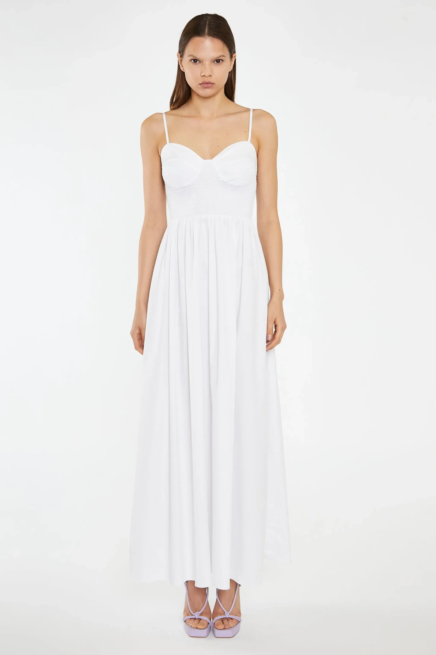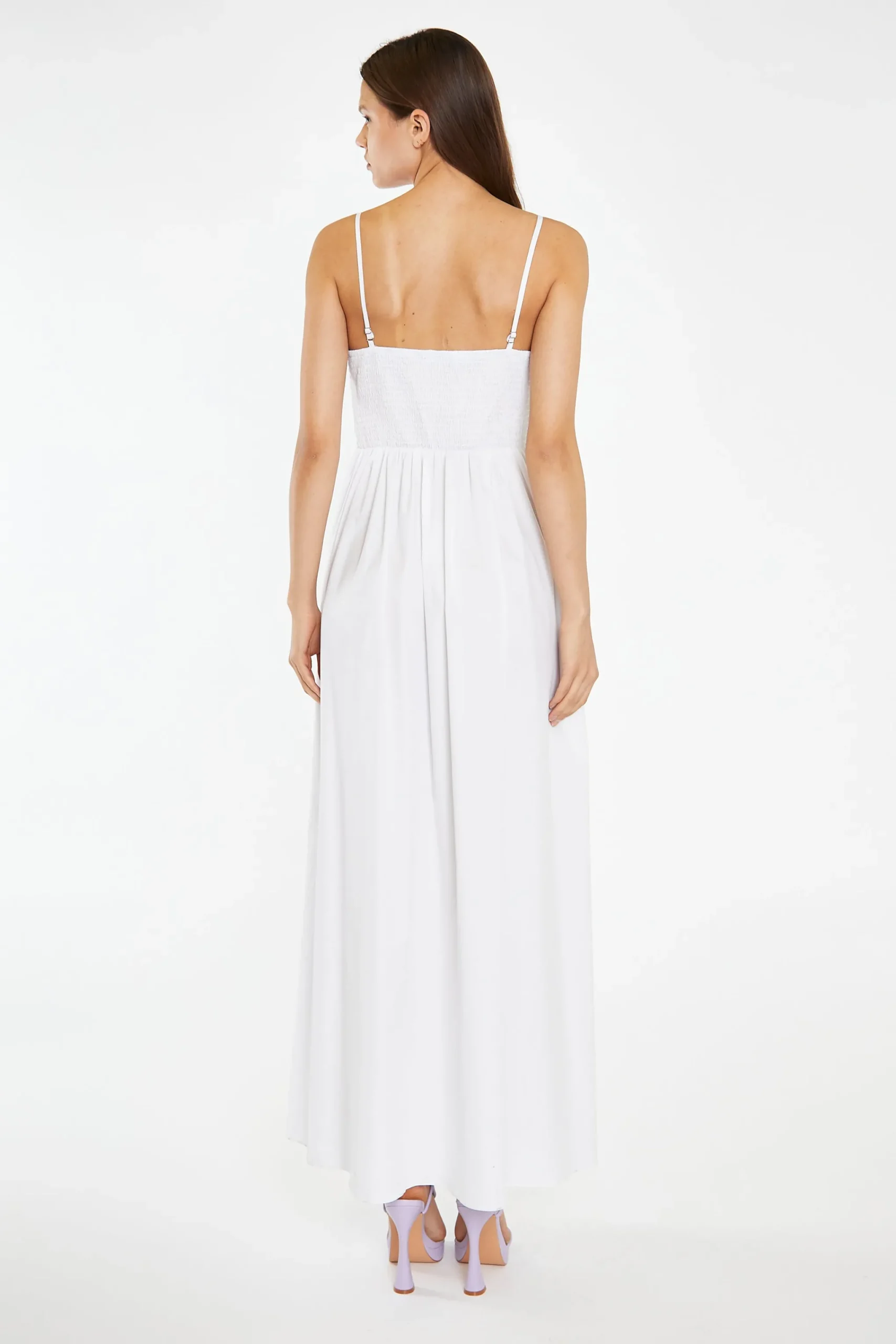 Glamorous Women’s White Shirred Bodice Maxi-Dress. This maxi-dress is effortlessly stylish with its shirred bodice and bust detail. The full gathered skirt and maxi length provide a comfortable and elegant fit. With the added bonus of strappy ties, this dress is perfect for any occasion, just dress up or down for your needs!