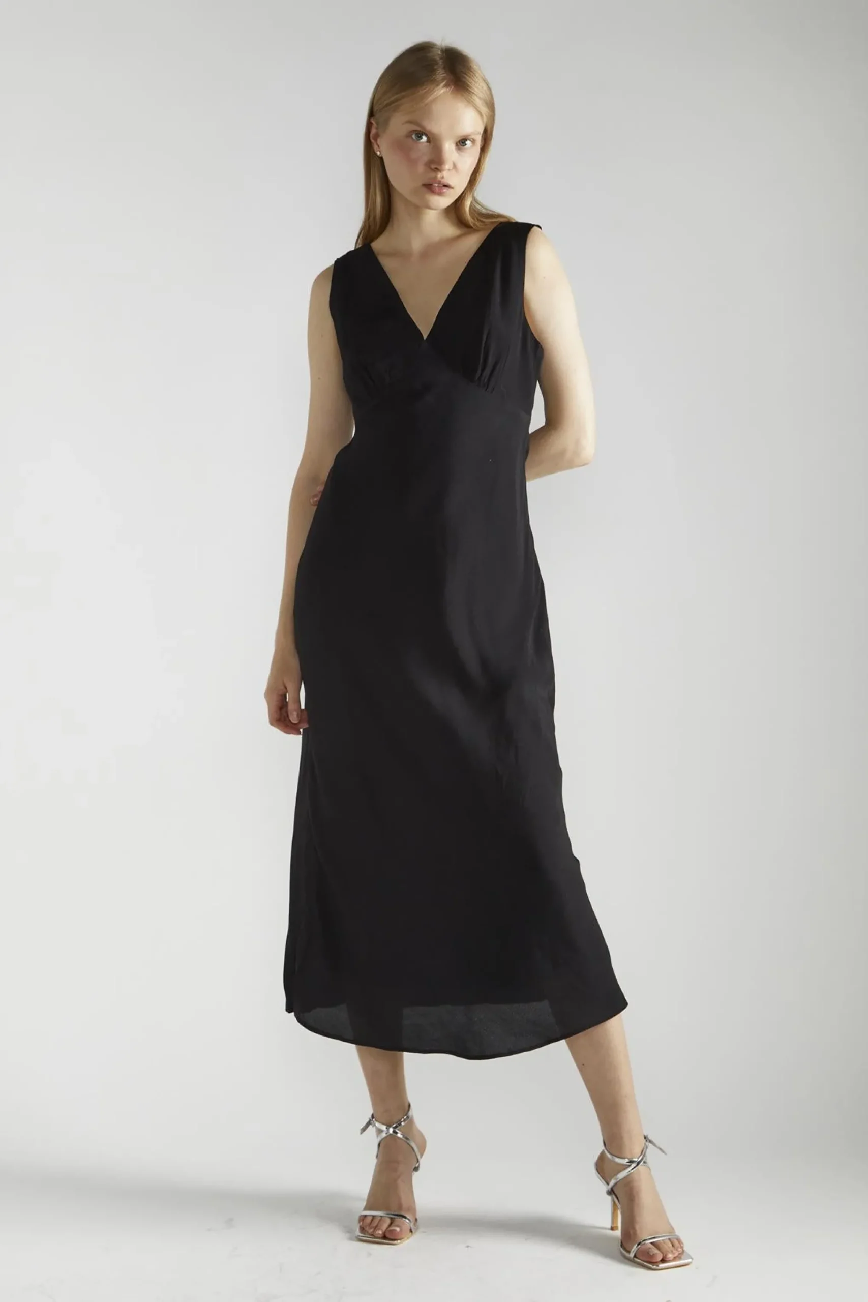 Glamorous Women’s Black V-neck Midi-Dress. Fall in love with our Black V-neck Midi-Dress, a versatile piece that’s bound to become your new favourite. This dress strikes the perfect balance between comfort and style, featuring a flattering V-neck that adds a touch of allure without being too revealing. The midi length gives you the freedom to move with ease while maintaining an air of elegance. It’s the kind of dress that makes you feel confident and put-together, no matter the occasion. Dress it up with statement jewellery and heels for a night out, or keep it casual with sneakers and a denim jacket for a day of running errands. The timeless black colour ensures it’ll pair seamlessly with accessories you already own. This dress isn’t just clothing; it’s a mood-booster that’ll have you looking forward to getting dressed. It’s your go-to solution for those “I have nothing to wear” moments, always ready to make you feel fabulous with minimal effort..