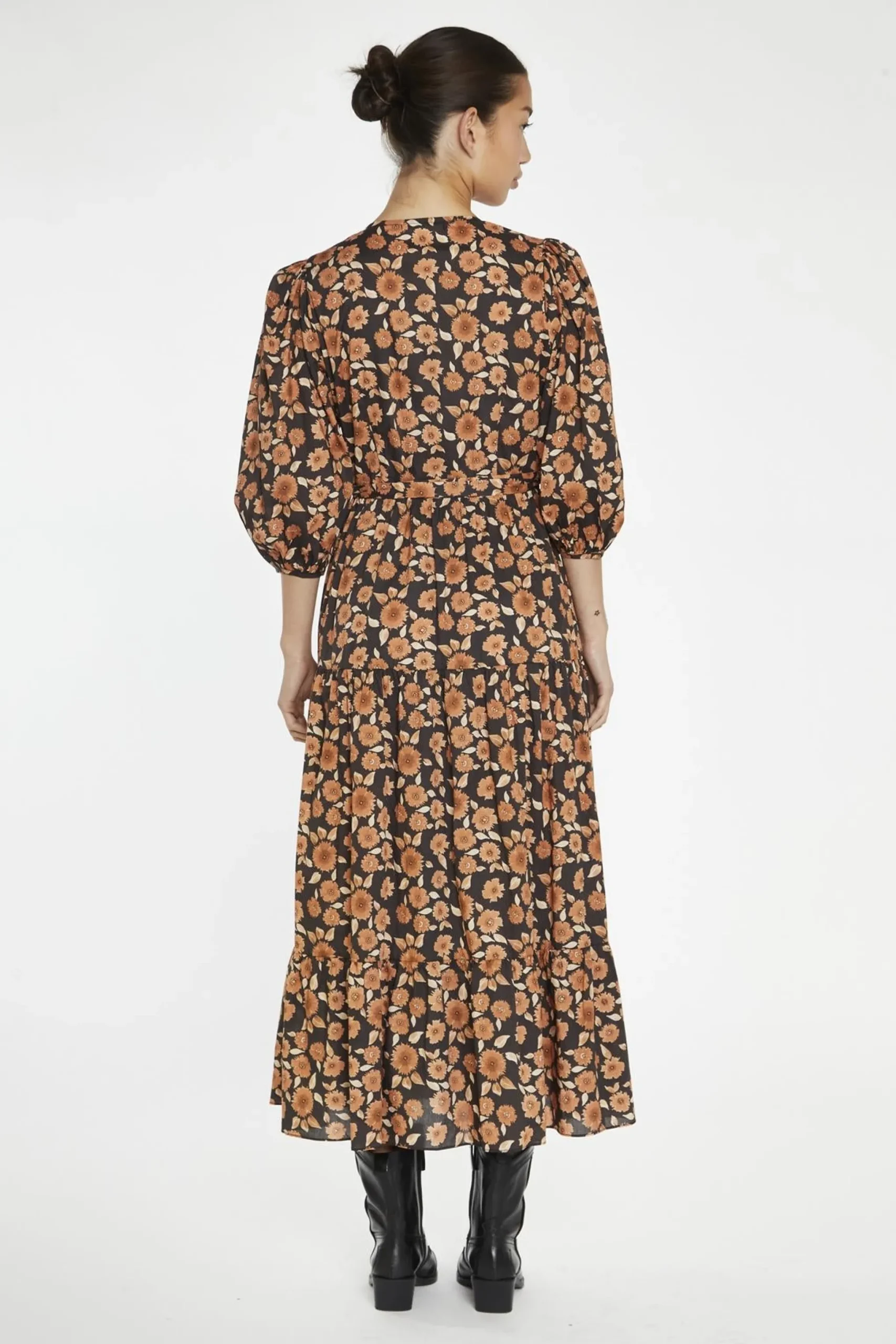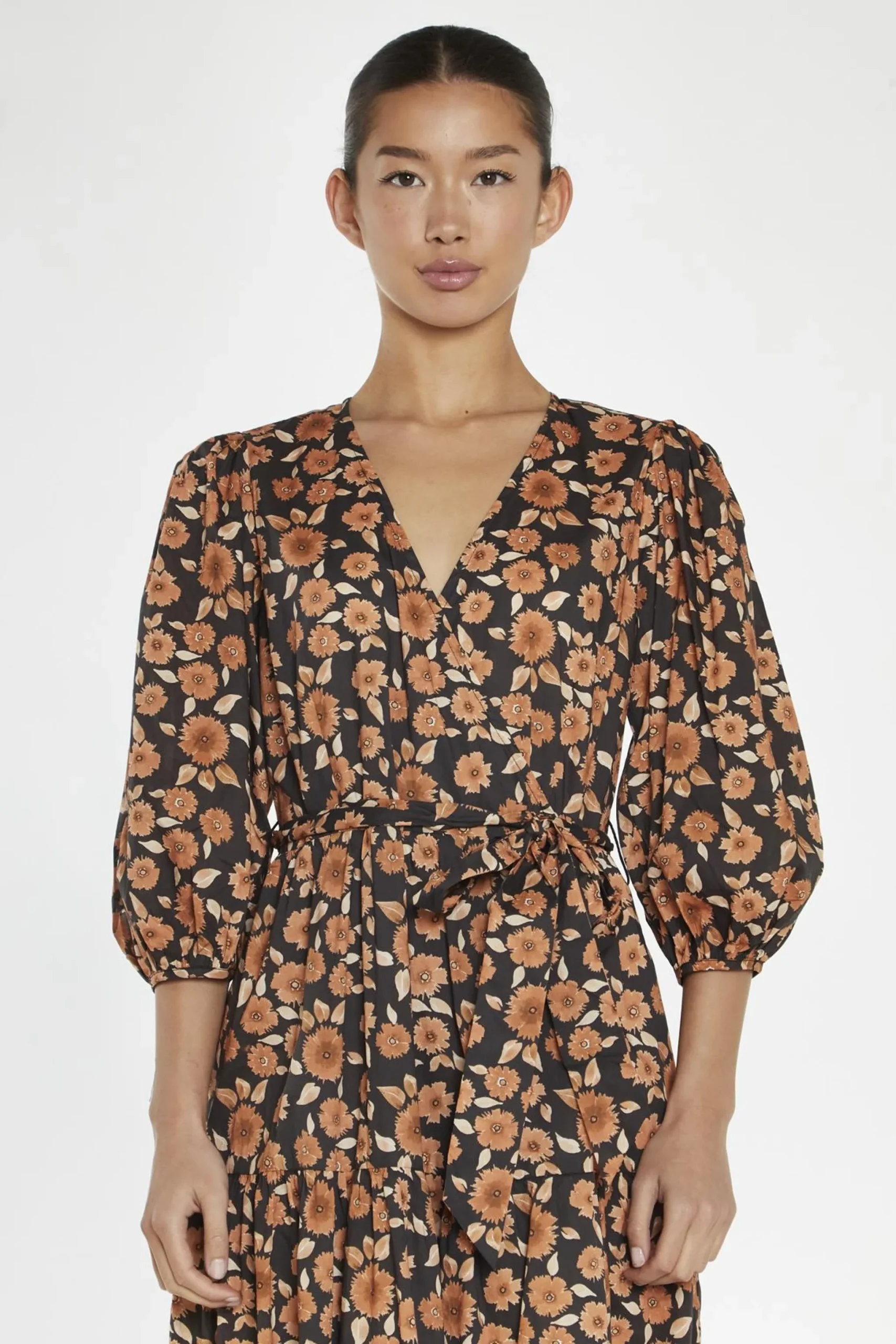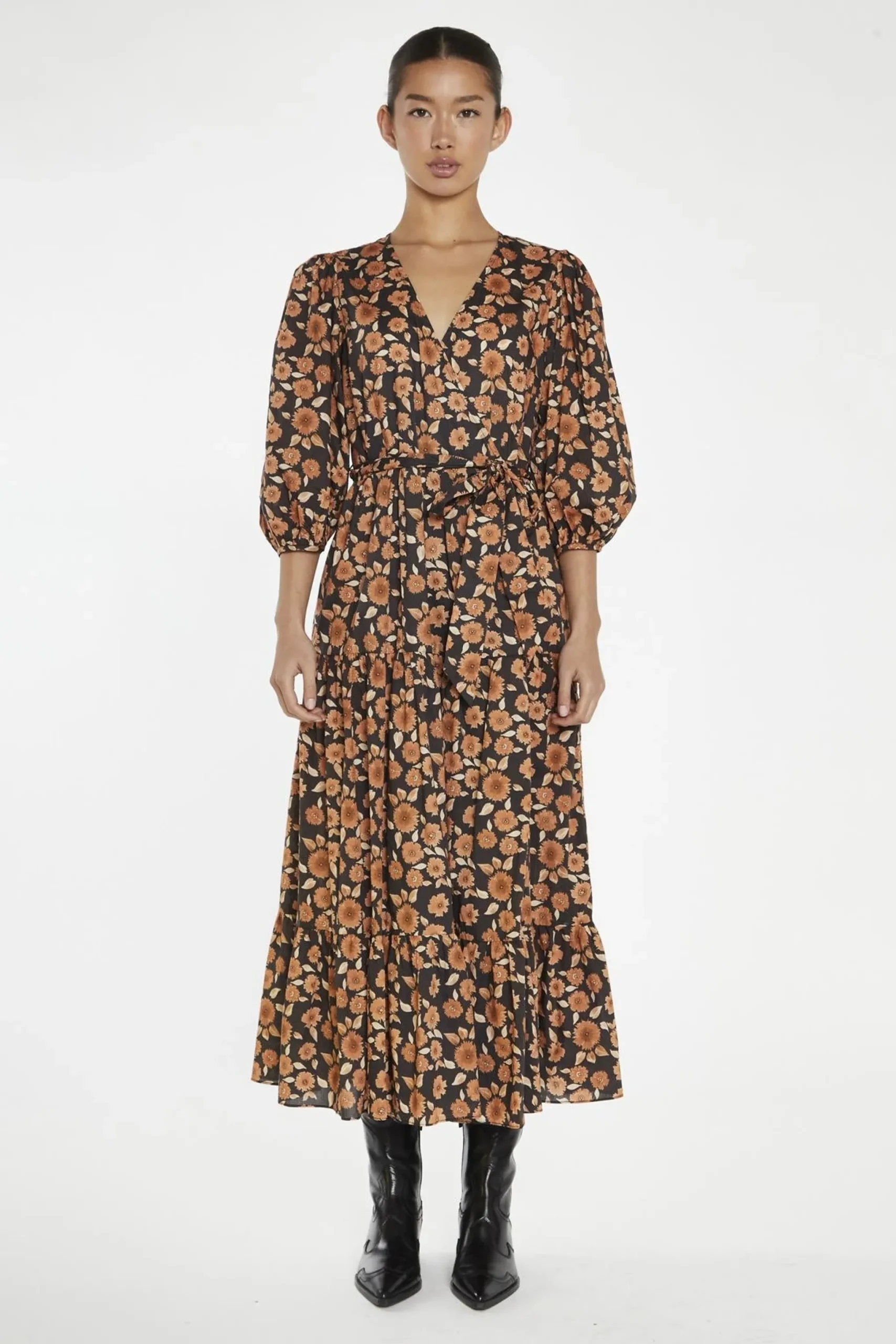 Glamorous Women’s Burnt-Orange Daisy Wrap Midi-Dress. Step out in style with our Burnt-Orange Daisy Wrap Midi-Dress This eye-catching piece combines a vibrant, earthy hue with a flattering wrap silhouette for a look that’s both chic and comfortable. The peplum hem adds a playful, feminine touch, while the puff sleeves lend a touch of drama. Pair it with ankle boots and a cozy cardigan for a casual, yet stylish look, or dress it up with heeled booties and a statement necklace for a night out. Made from soft, breathable fabric, this midi-dress is perfect for transitioning between seasons..