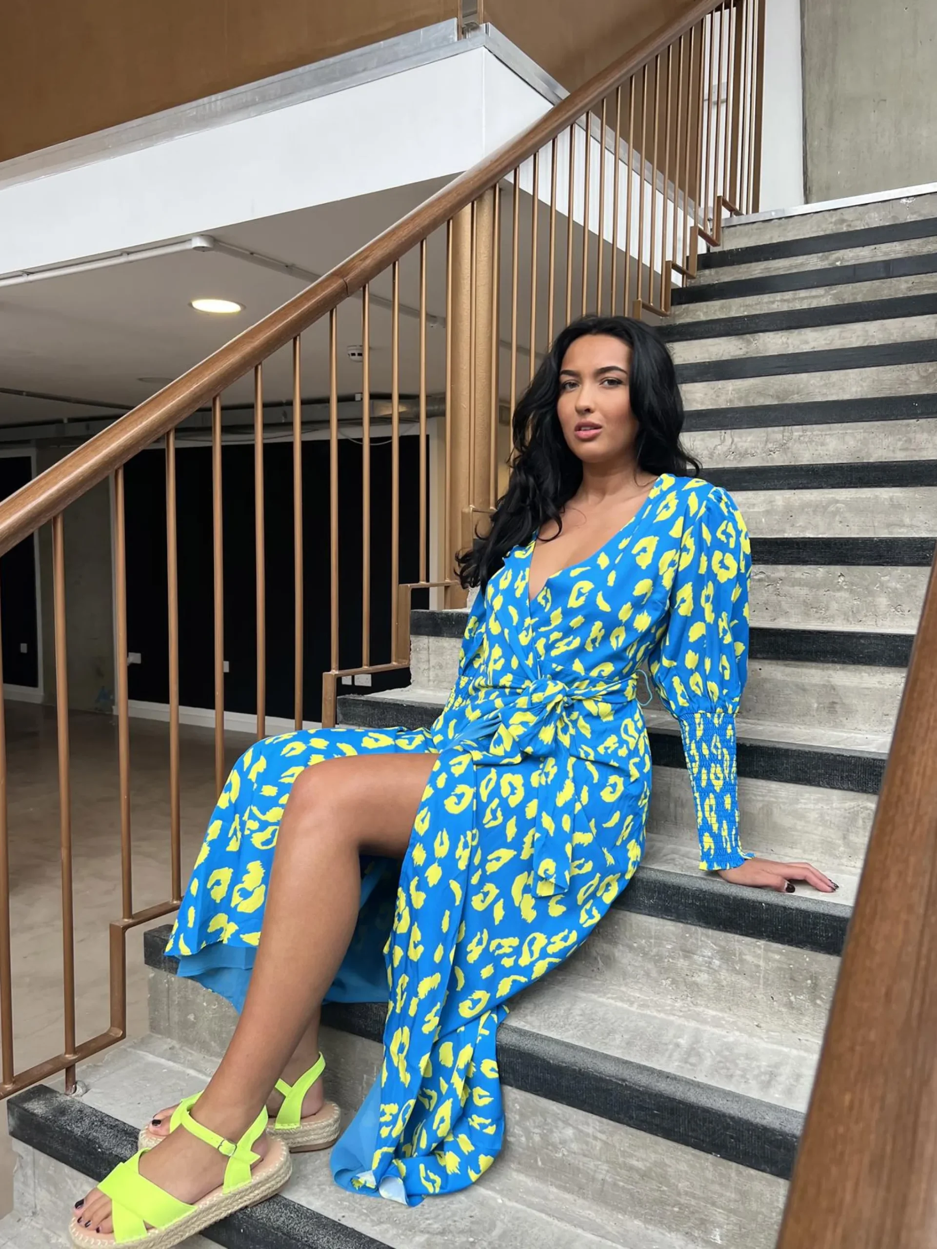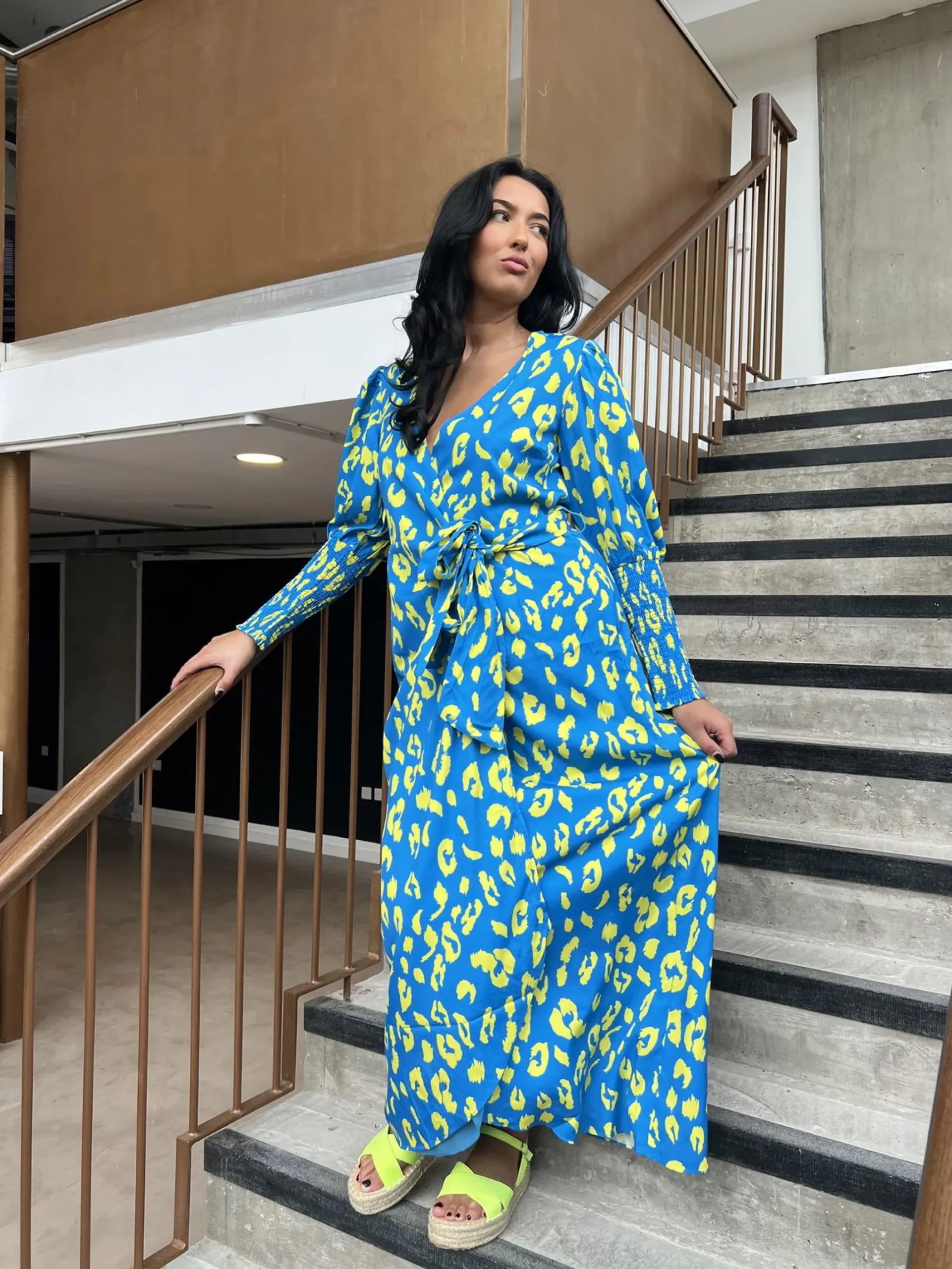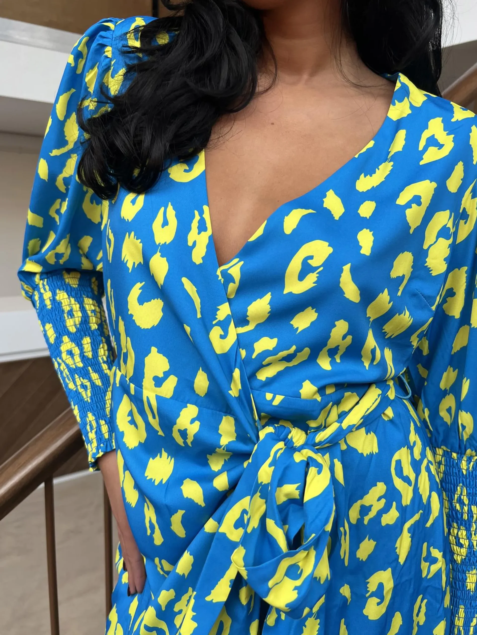 Glamorous Women’s Cobalt-Yellow Leopard Wrap Midi-Dress. Looking for a dress that’s both fun and flattering? This Cobalt-Yellow Leopard Wrap Midi-Dress might just be your new go-to. The eye-catching print combines bold cobalt and sunny yellow in a playful leopard pattern that’s sure to turn heads. The wrap design hugs your curves in all the right places, while the midi length keeps things classy and versatile. We’ve added shirred cuffed sleeves for a touch of texture and interest. Plus, it comes in other colour combinations too, so you can find the perfect match for your style. This dress is a breeze to wear – just throw it on and you’re ready for anything from a casual brunch to a night out with friends. Pair it with some strappy sandals and statement earrings for a look that’s effortlessly chic.