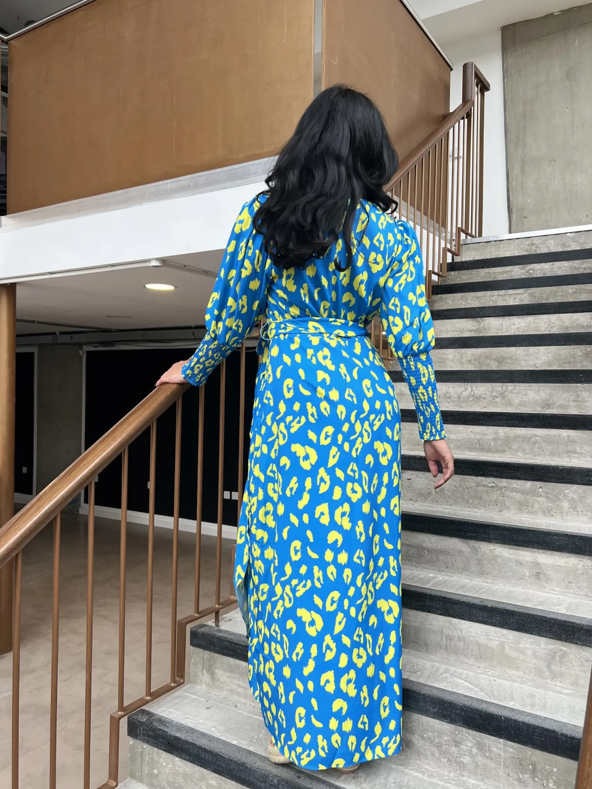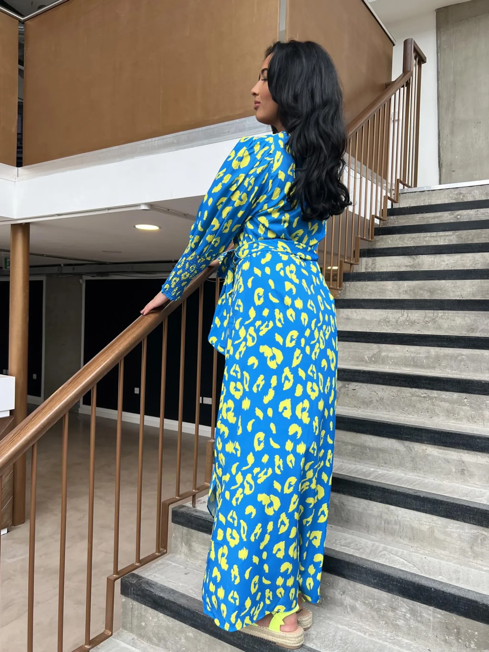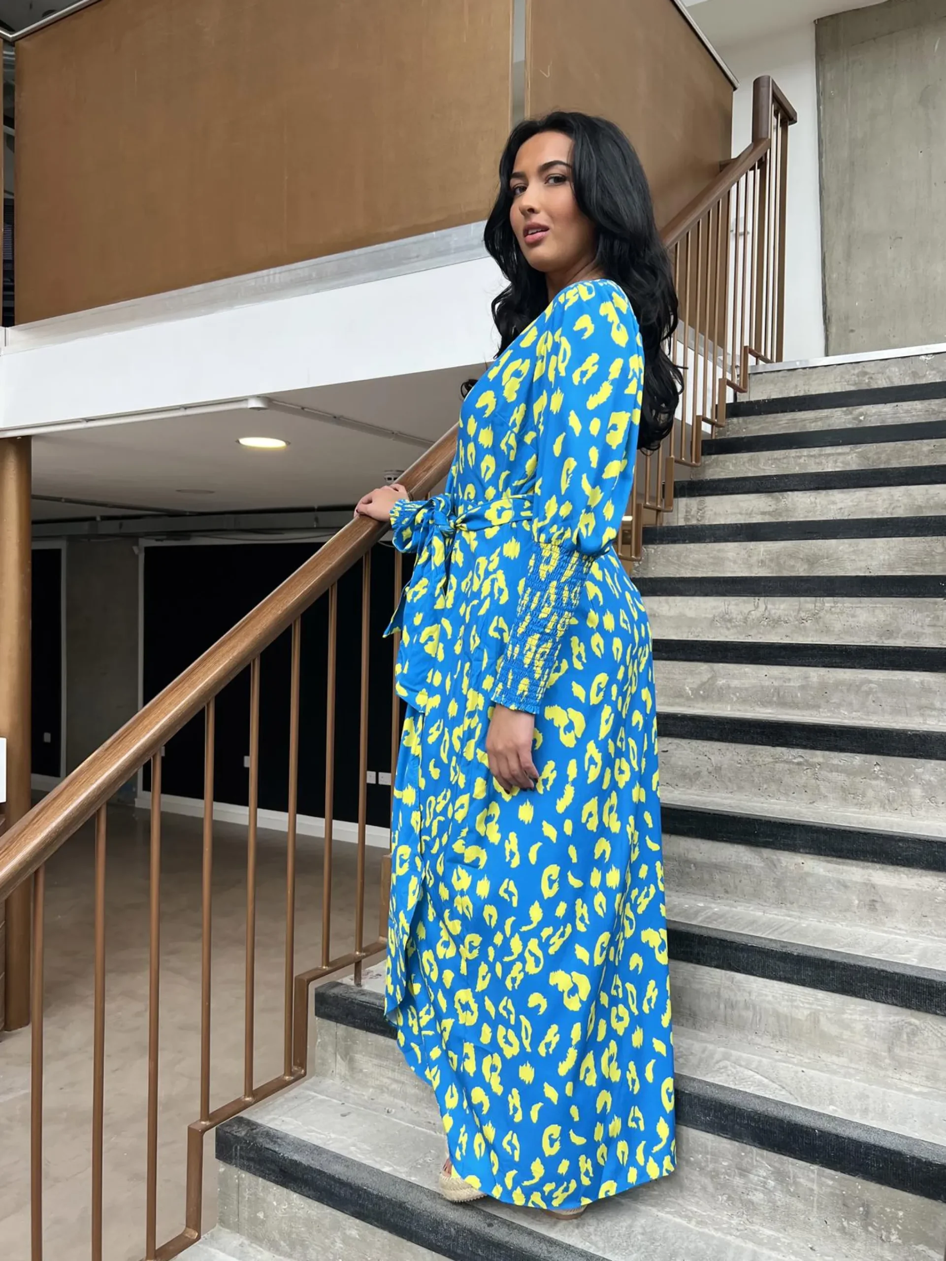 Glamorous Women’s Cobalt-Yellow Leopard Wrap Midi-Dress. Looking for a dress that’s both fun and flattering? This Cobalt-Yellow Leopard Wrap Midi-Dress might just be your new go-to. The eye-catching print combines bold cobalt and sunny yellow in a playful leopard pattern that’s sure to turn heads. The wrap design hugs your curves in all the right places, while the midi length keeps things classy and versatile. We’ve added shirred cuffed sleeves for a touch of texture and interest. Plus, it comes in other colour combinations too, so you can find the perfect match for your style. This dress is a breeze to wear – just throw it on and you’re ready for anything from a casual brunch to a night out with friends. Pair it with some strappy sandals and statement earrings for a look that’s effortlessly chic.