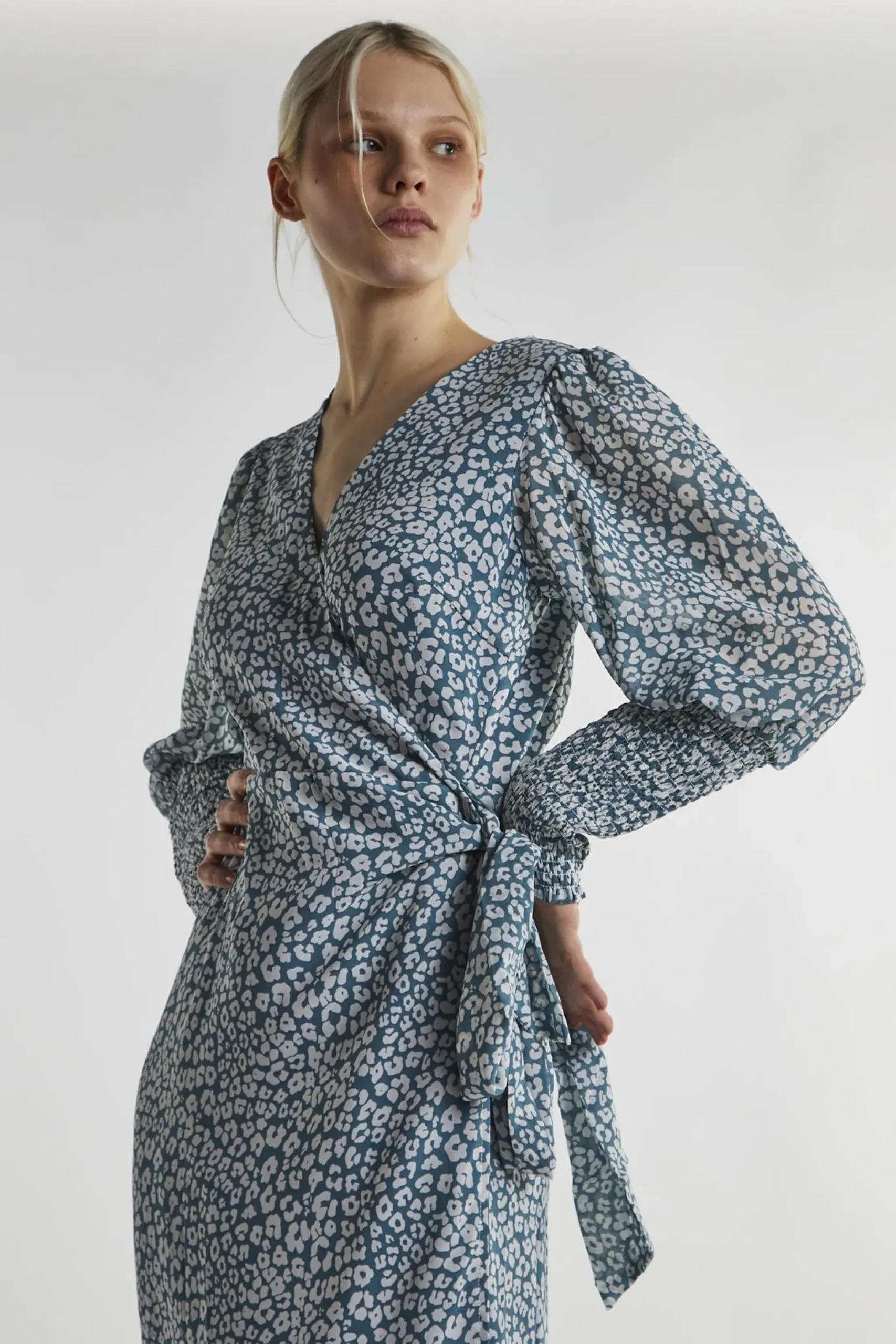 Glamorous Women’s Green Leopard Wrap Midi-Dress. Looking for a dress that’s both fun and flattering? This Green Leopard Print Wrap Midi-Dress might just become your new favorite. The green hue combined with a playful leopard pattern creates an eye-catching look that’s sure to make a statement. The wrap design beautifully hugs your curves, while the midi length adds a touch of elegance and versatility. With shirred cuffed sleeves, this dress offers a bit of texture and charm to your outfit. It’s easy to wear—just slip it on, and you’re set for anything from a casual brunch to a night out with friends. Pair it with strappy sandals and bold earrings for an effortlessly chic ensemble that showcases your unique style!