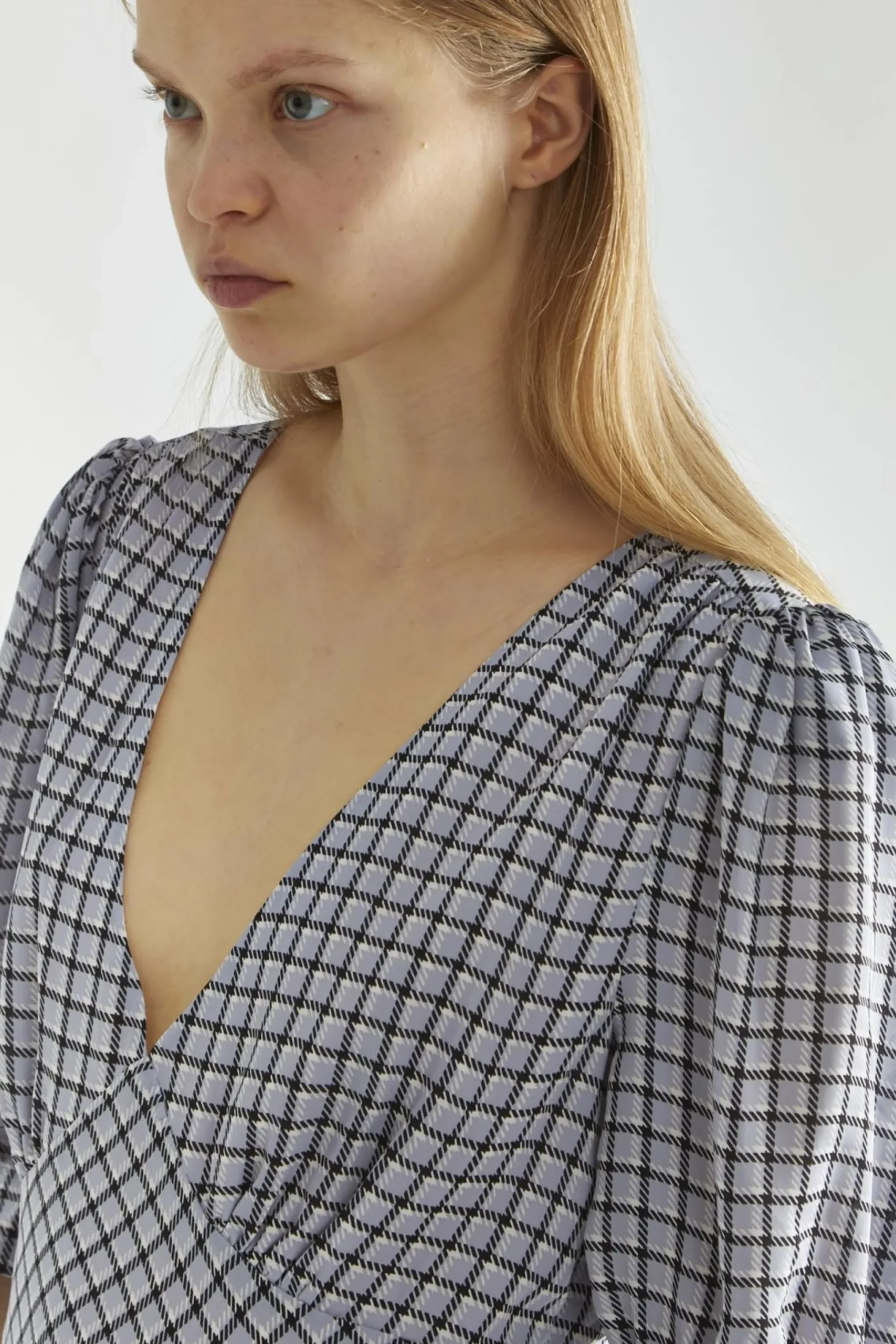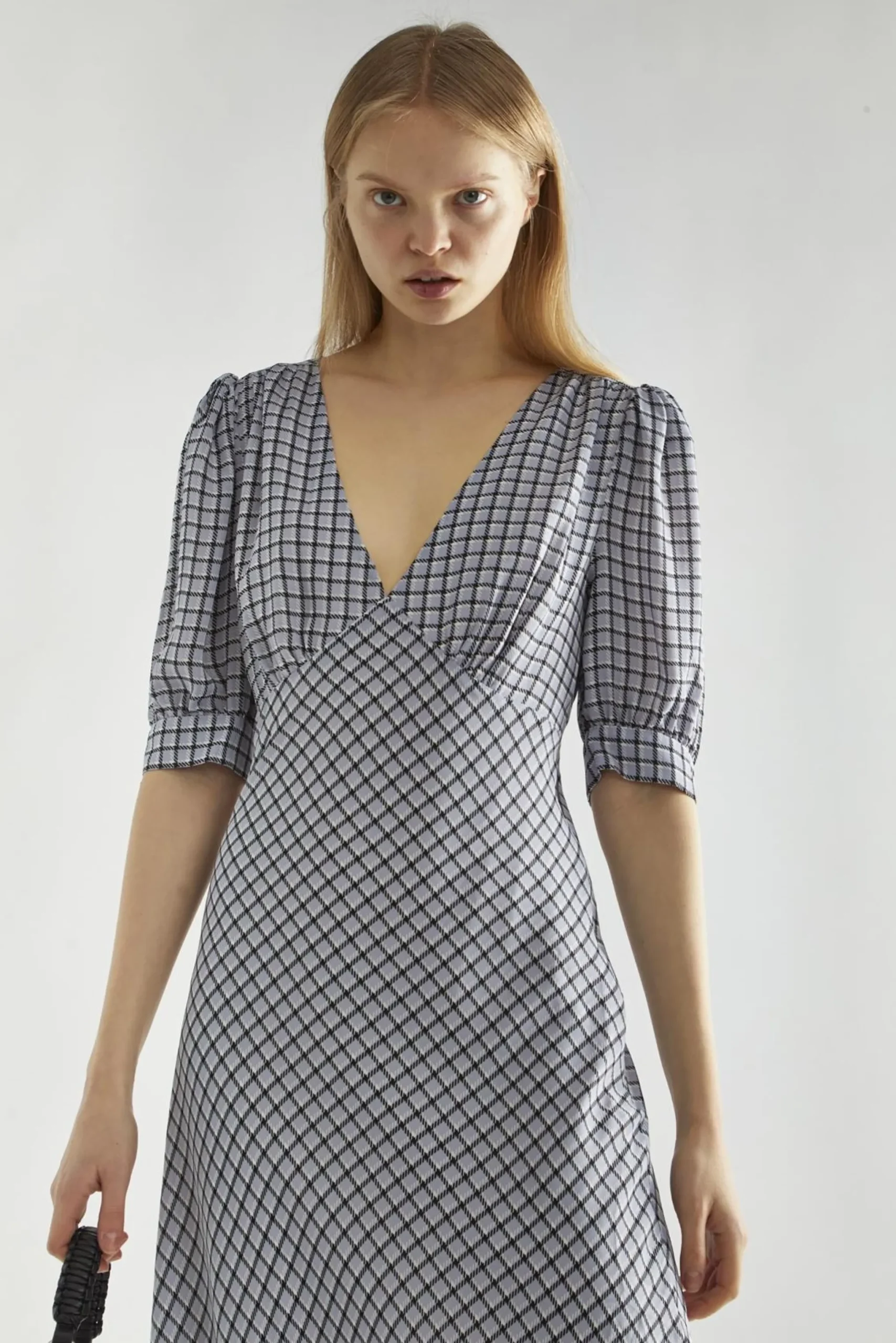 Glamorous Women’s Light-Blue Check V-neck Midi Tea-Dress. Update your winter wardrobe with this lovely light-blue check V-neck midi tea dress, designed to keep you stylish and cozy during the colder months. The charming check pattern adds a touch of warmth, while the V-neckline beautifully frames your face. Short puff sleeves lend a hint of elegance and playfulness, making this dress perfect for festive gatherings or casual outings. The classic tea dress shape flows gracefully, providing comfort and ease of movement, while the midi length offers extra coverage for those chilly days. Pair it with knee-high boots and a tailored blazer for a polished look or layer under a cozy cable knit jumper. This versatile piece is perfect for layering, allowing you to stay warm without sacrificing style. With this dress in your collection, you’ll be ready to embrace winter with confidence and flair!