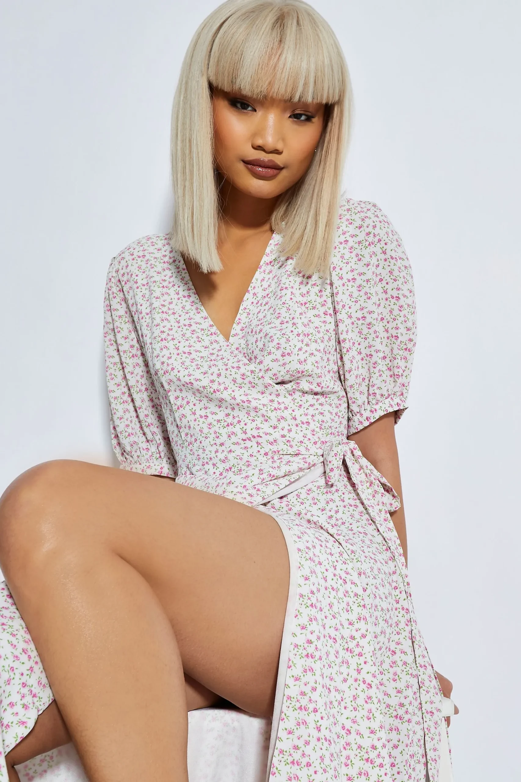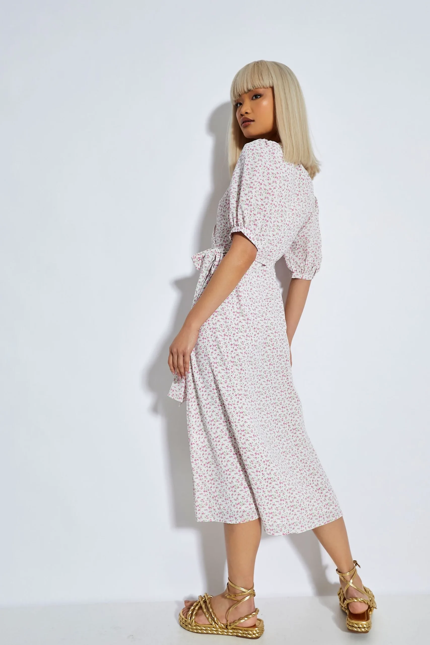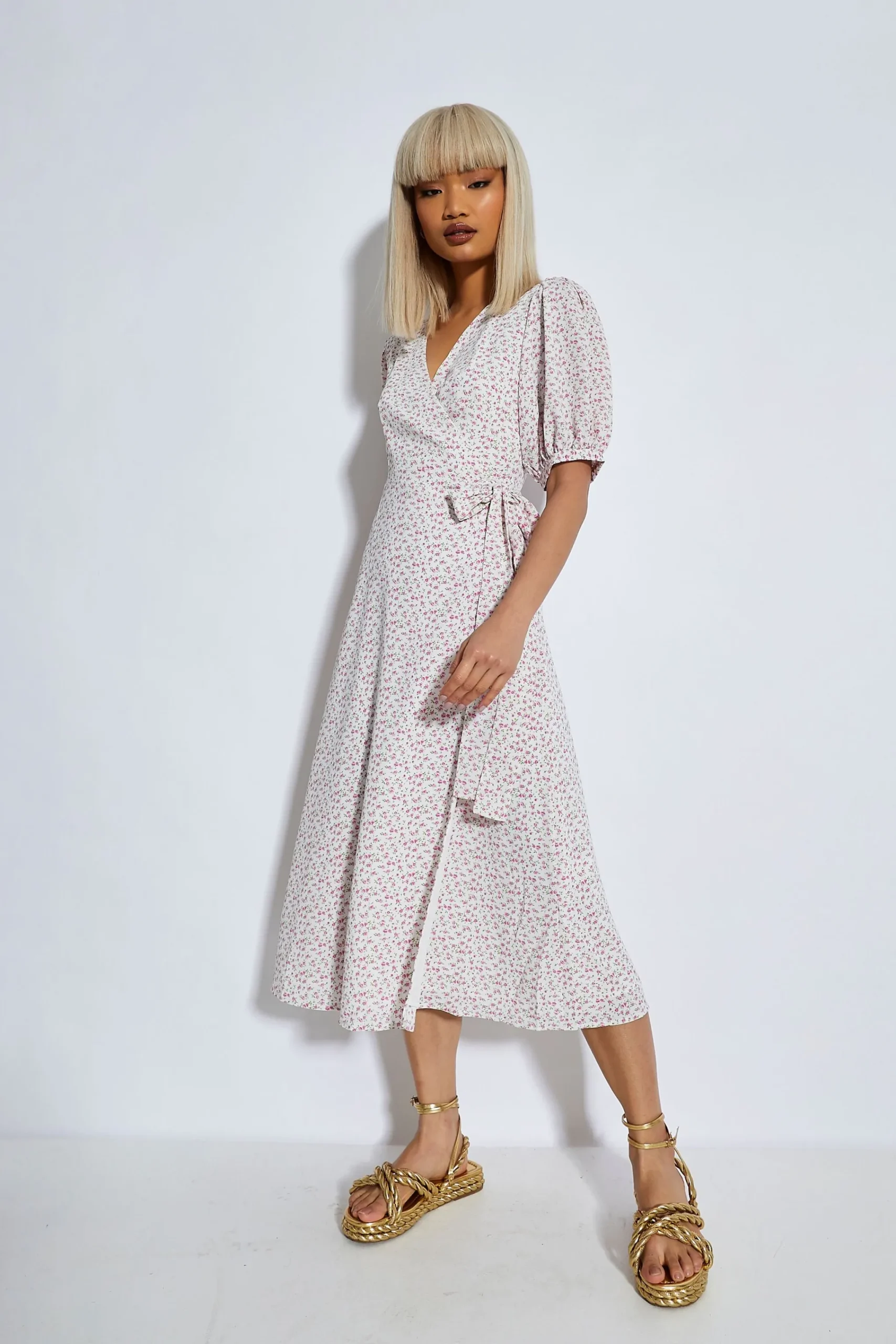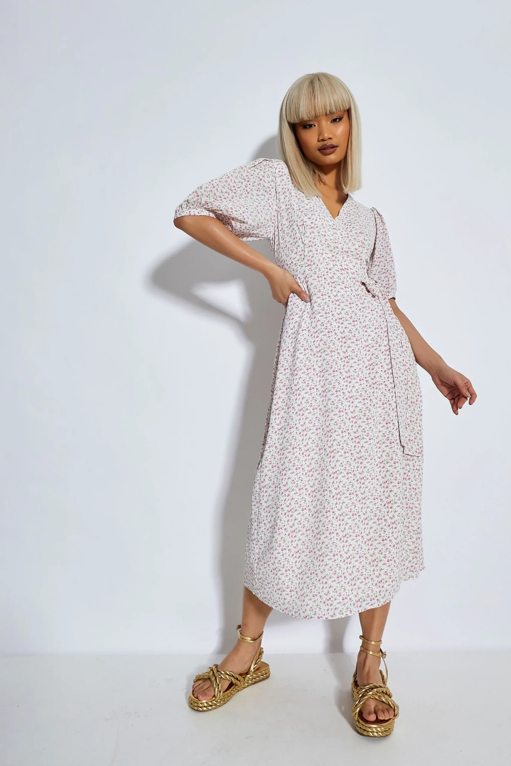 Glamorous Womens Orchid Multi Ditsy Tie Waist Midi Dress. This super on trend midi dress is the must have staple piece this season. Featuring a simplistic midi style and tie waist front, this dress is super flattering addition to your closet! Style with your favourite boots for the daytime and switch to heels for the evening.