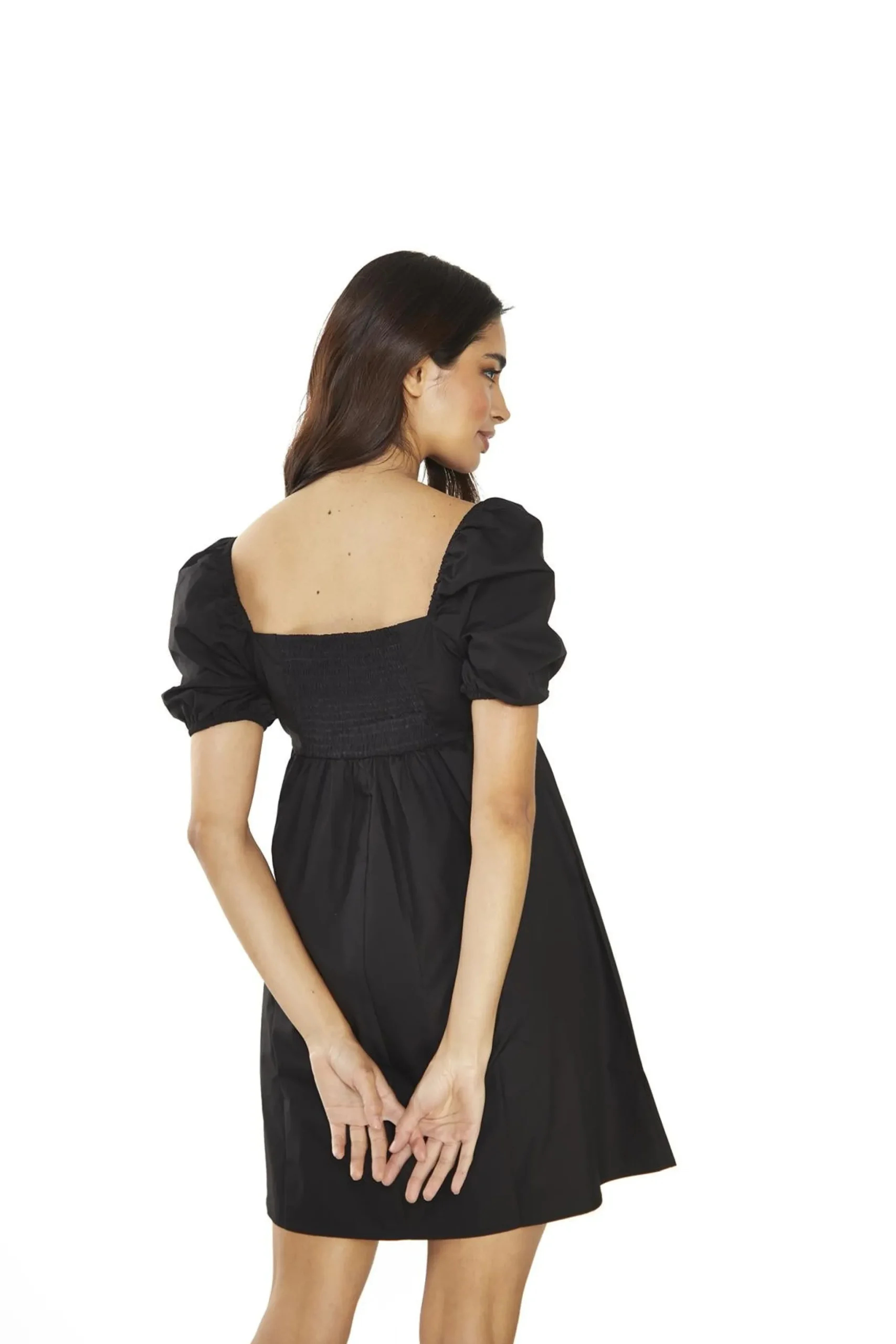 Glamorous Women’s Black Square-Neck Mini-Dress. Meet your new go-to piece: the Black Square-Neck Mini Dress, perfect for those days when you want to feel effortlessly chic. This dress features short statement sleeves that add a touch of flair, making it a standout choice for any outing. The square neckline gives it a modern twist, while the pleated detailing adds a hint of texture and movement, ensuring you look fabulous from every angle. It’s versatile enough to dress up with some bold accessories or keep it casual with a pair of sneakers. This mini dress is all about comfort and style, making it easy to wear for brunch with friends or a night out on the town.