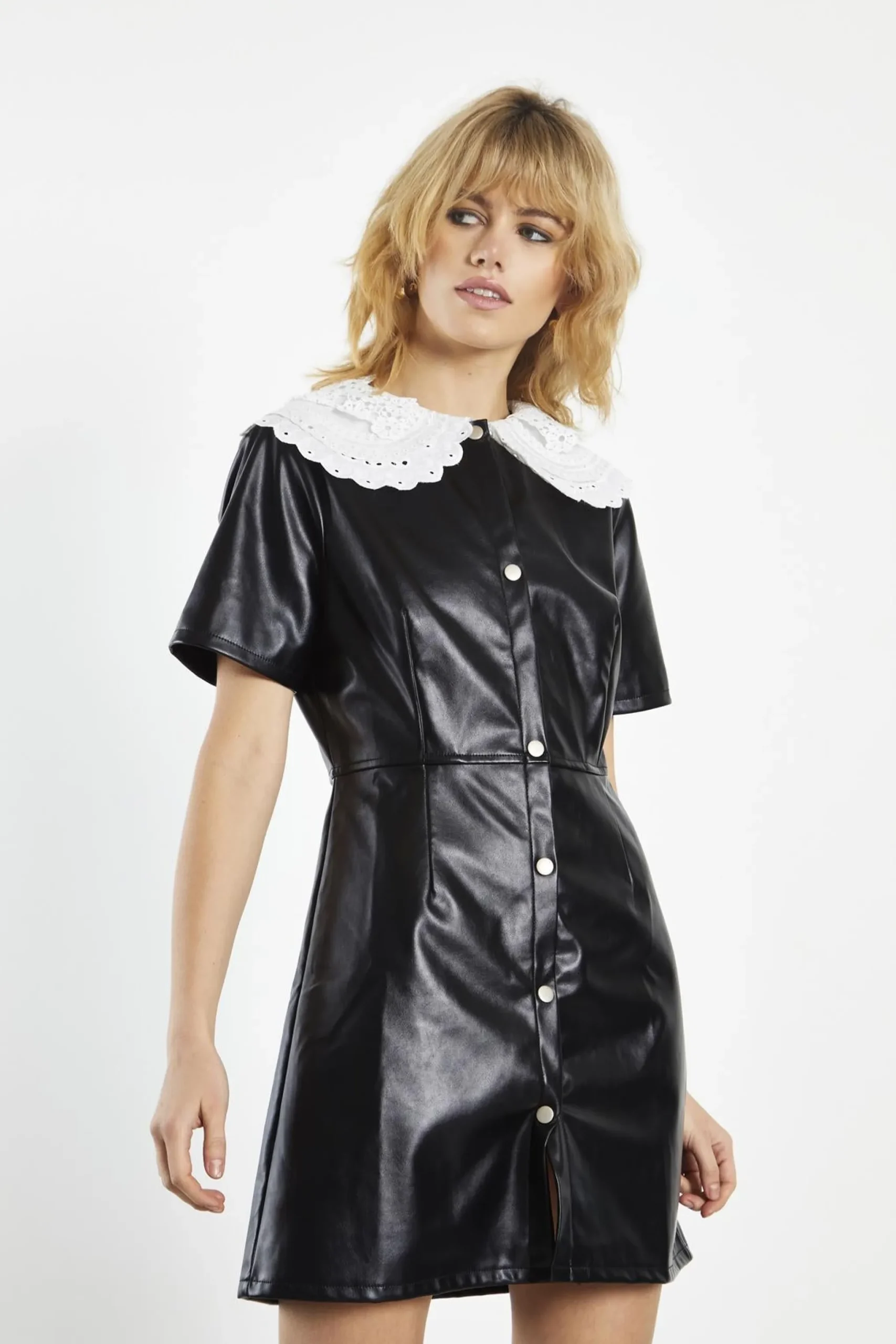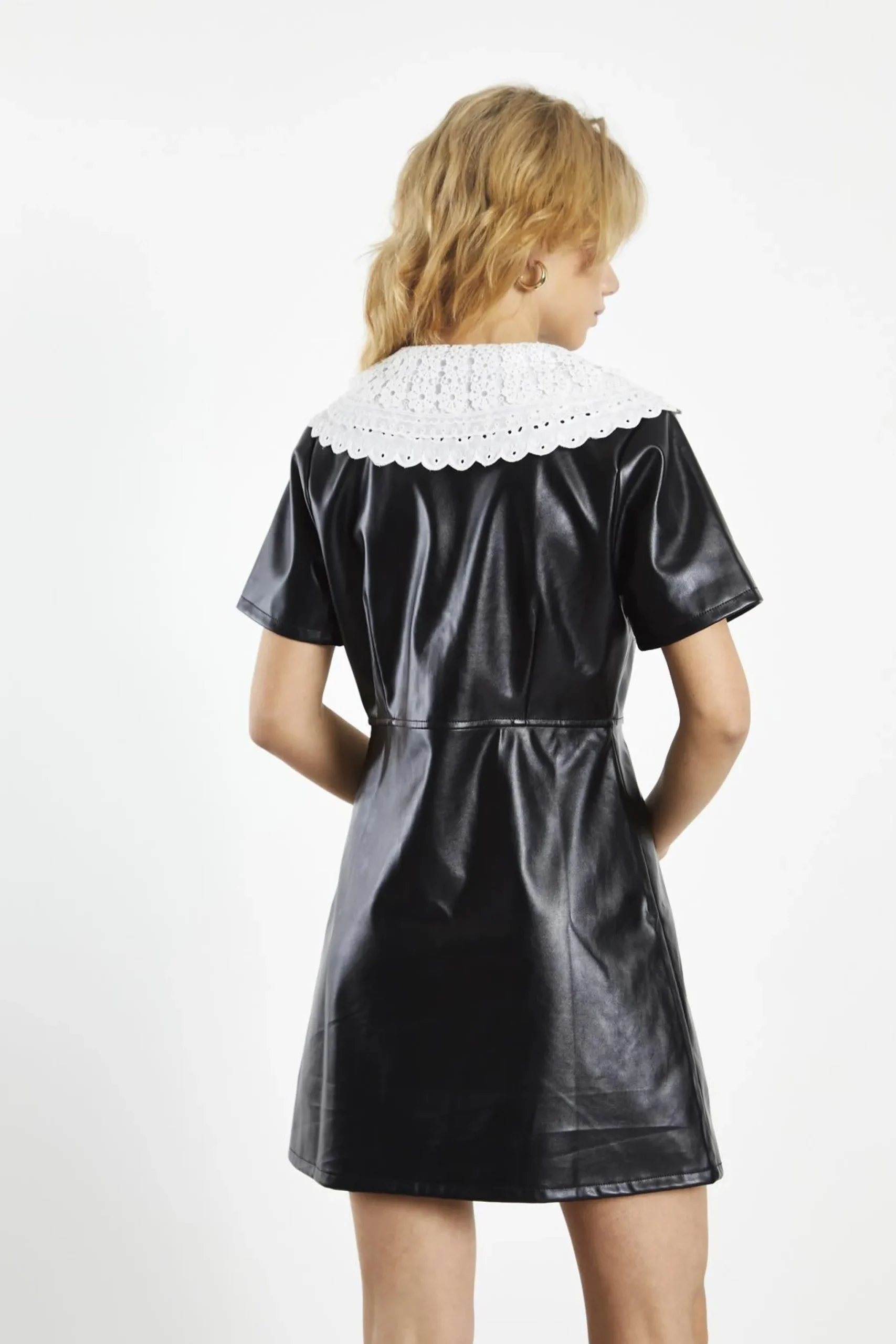 Glamorous Women’s Black-White Collared A-Line Mini-Dress. Say hello to your new favourite dress – the Black White Collared Short Sleeve A-Line Dress. This charming number is the perfect blend of classic style and modern flair. The crisp collar adds a touch of sophistication, while the A-line silhouette flatters every figure. But what really makes this dress special are the little details. The button front gives you the option to create a playful peek-a-boo effect, or keep things demure – it’s up to you! And let’s not forget about the delicate lace detailing that adds a romantic touch to this already lovely piece. This dress is a true chameleon – pair it with sneakers for a casual day out, or dress it up with heels for a dinner date. The black and white colour scheme means it’s always in style, no matter the season. So why not add a little charm to your wardrobe? This dress is ready to become your go-to for any occasion that calls for a dash of elegance and a whole lot of personality.