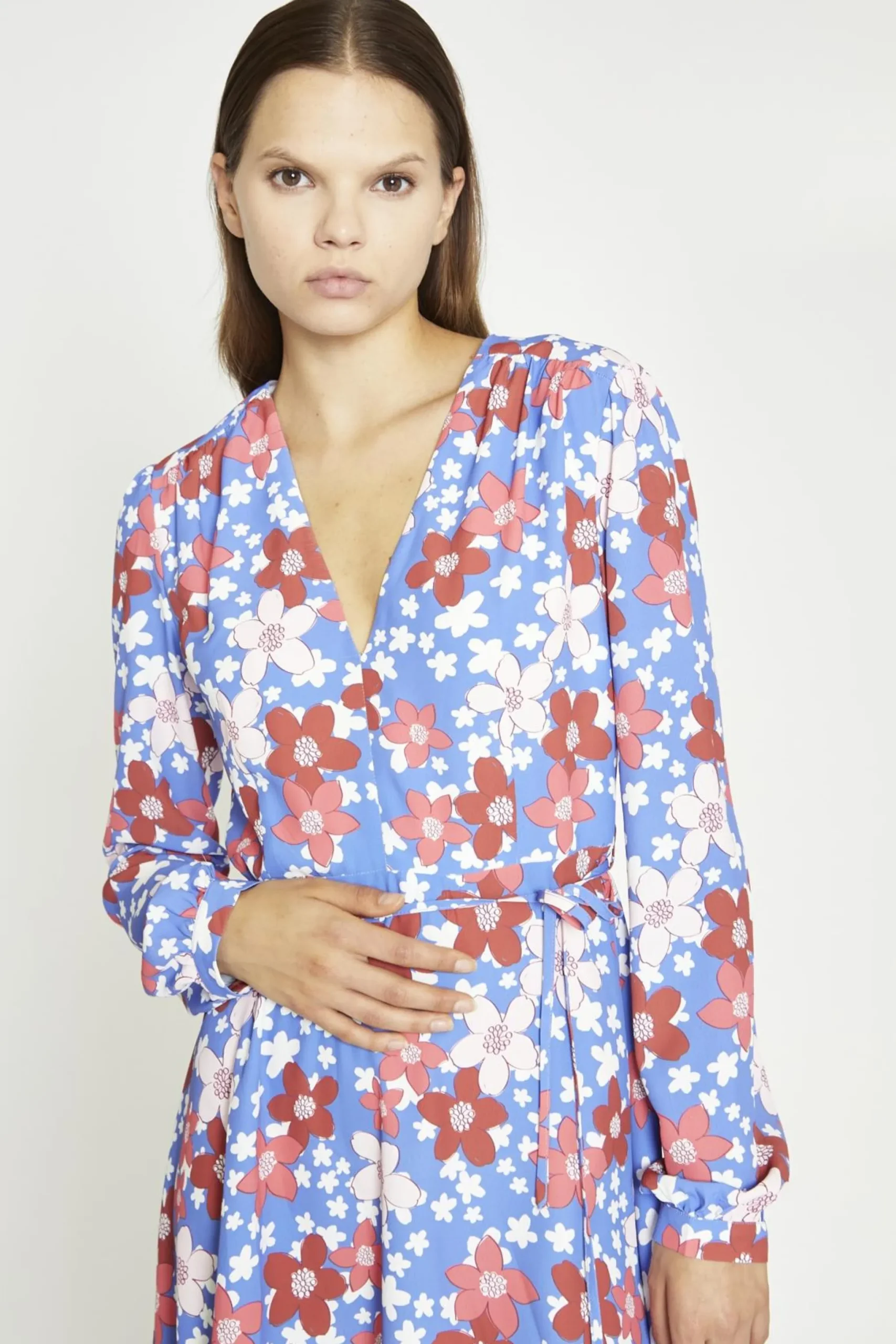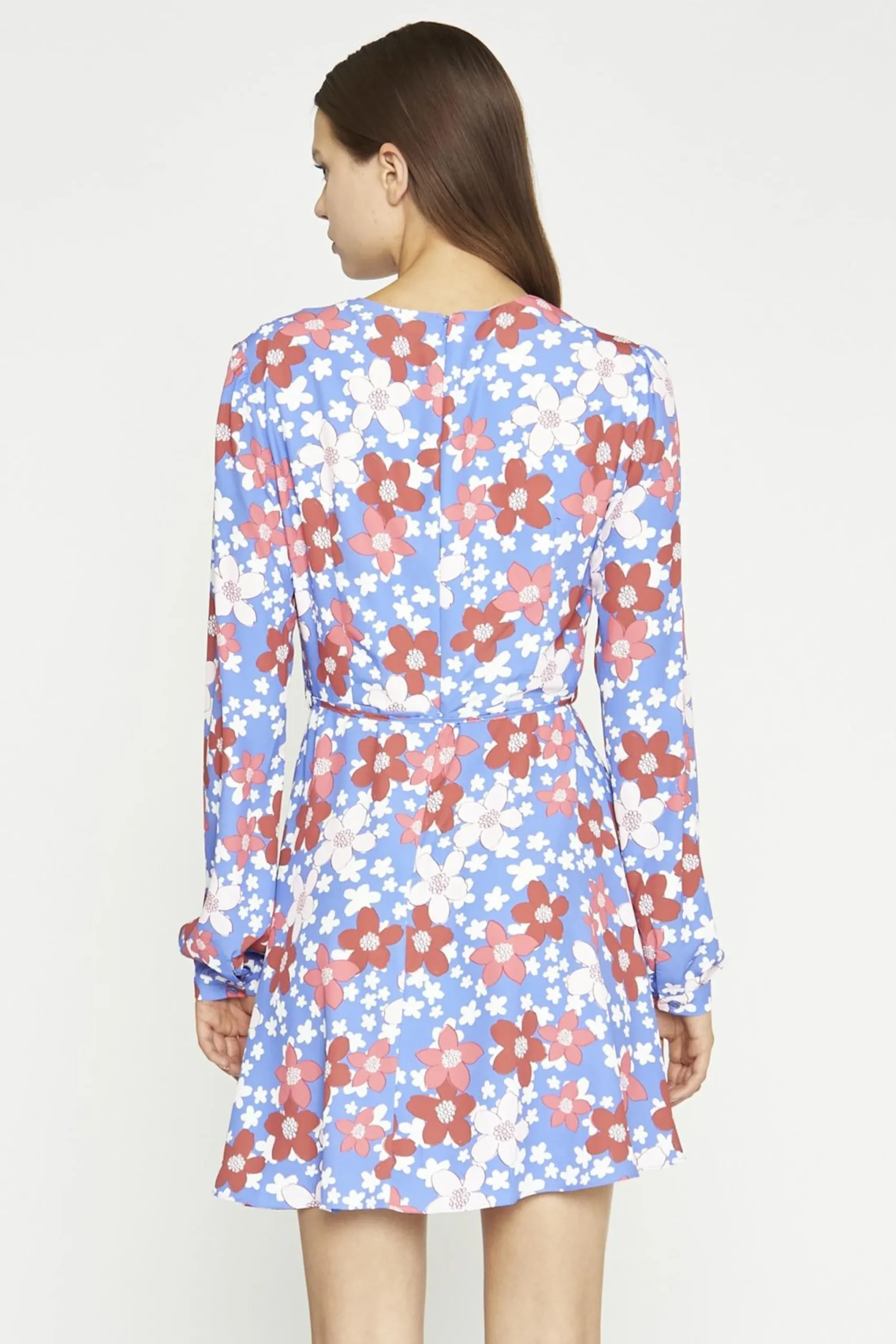 Glamorous Women’s Blue-Red Flower V-Neck Mini-Dress. This vibrant mini-dress is perfect for adding a pop of colour to your wardrobe. The v-neck and long sleeves create a flattering, feminine silhouette, while the tie waist cinches in at the smallest part of your frame. The midi length is both stylish and comfortable, and the fully lined fabric ensures a smooth, flattering fit. Whether you’re dressing it up for a night out or keeping it casual for a day of errands, this versatile dress is sure to become a new favourite. Embrace the bold blue and red floral print and let your personality shine!