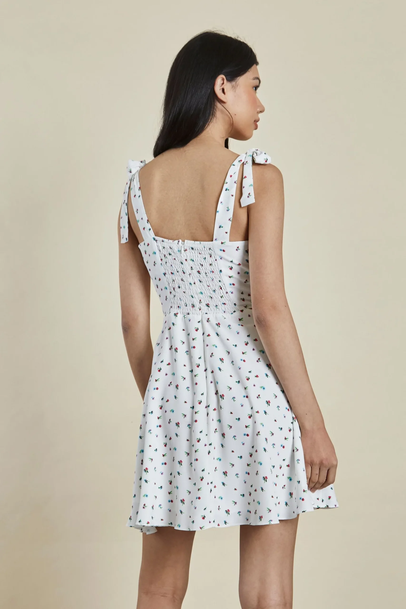 Glamorous Womens Bright Ditsy Tie Shoulder Mini Dress. This super on trend mini dress is the must have staple piece this season. Featuring tie shoulders and ditsy print, this dress is super flattering addition to your closet! Style with your favourite boots for the daytime and switch to heels for the evening.