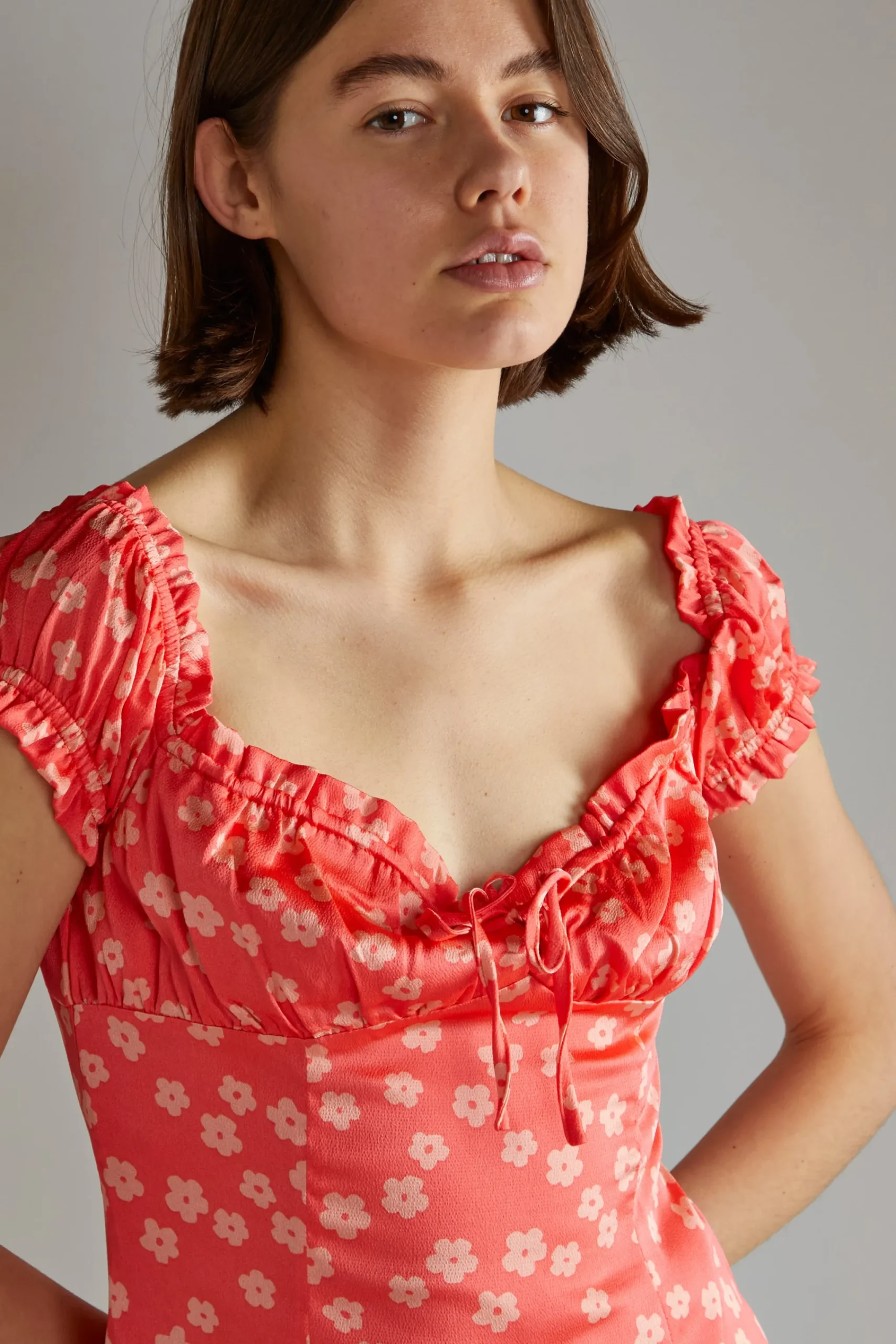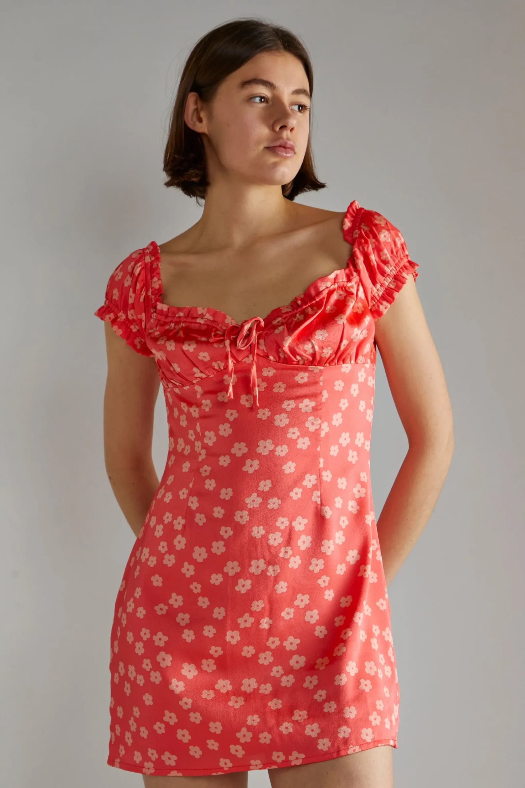 Glamorous Women’s Coral-Pink Daisy Milkmaid Mini-Dress. Experience timeless elegance with our Coral-Pink Daisy Milkmaid Mini-Dress. This stunning dress features a classic milkmaid style silhouette that exudes sophistication. The mini length adds a youthful touch, making it perfect for any occasion. Elevate your wardrobe with this must-have piece.