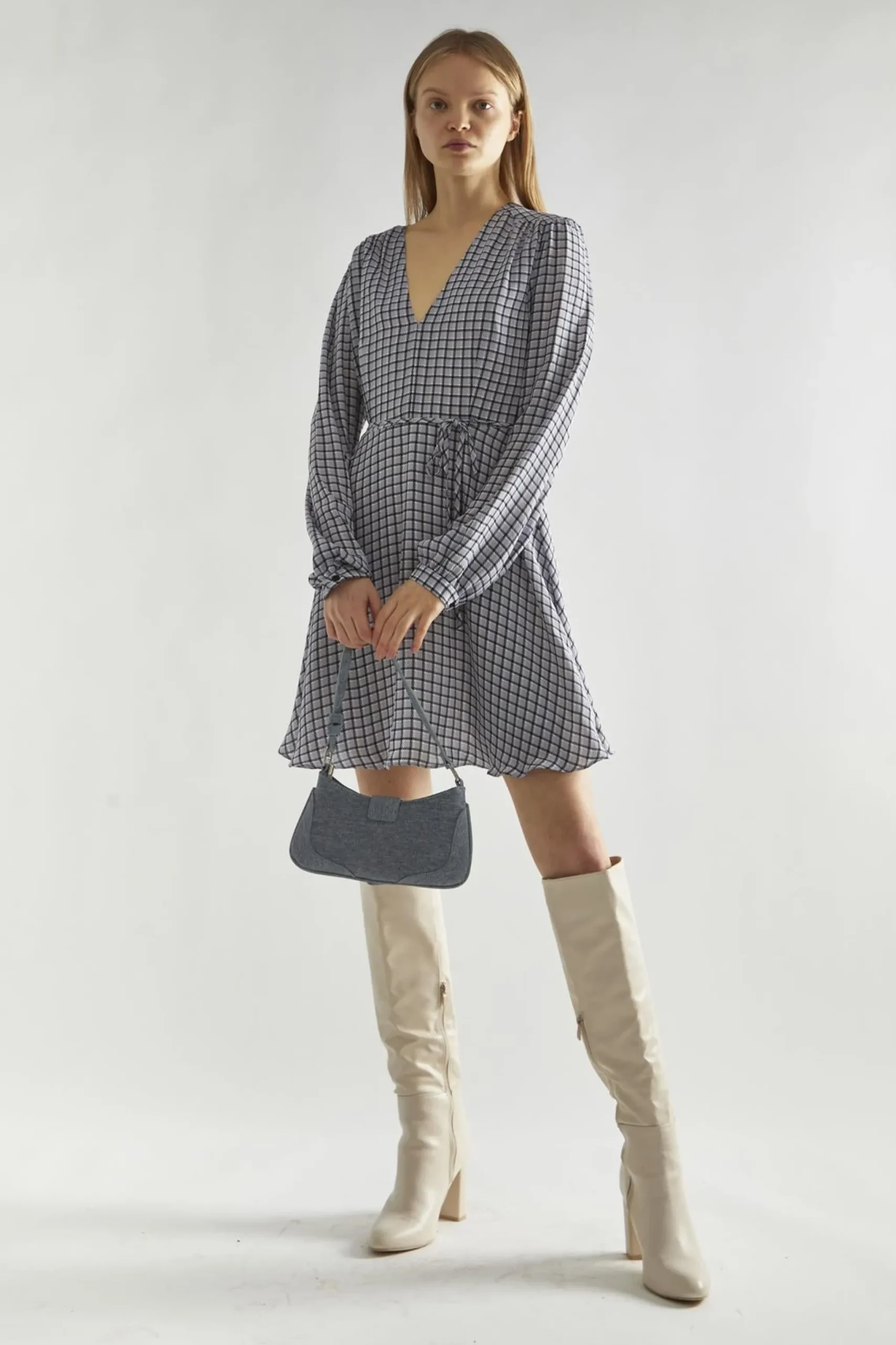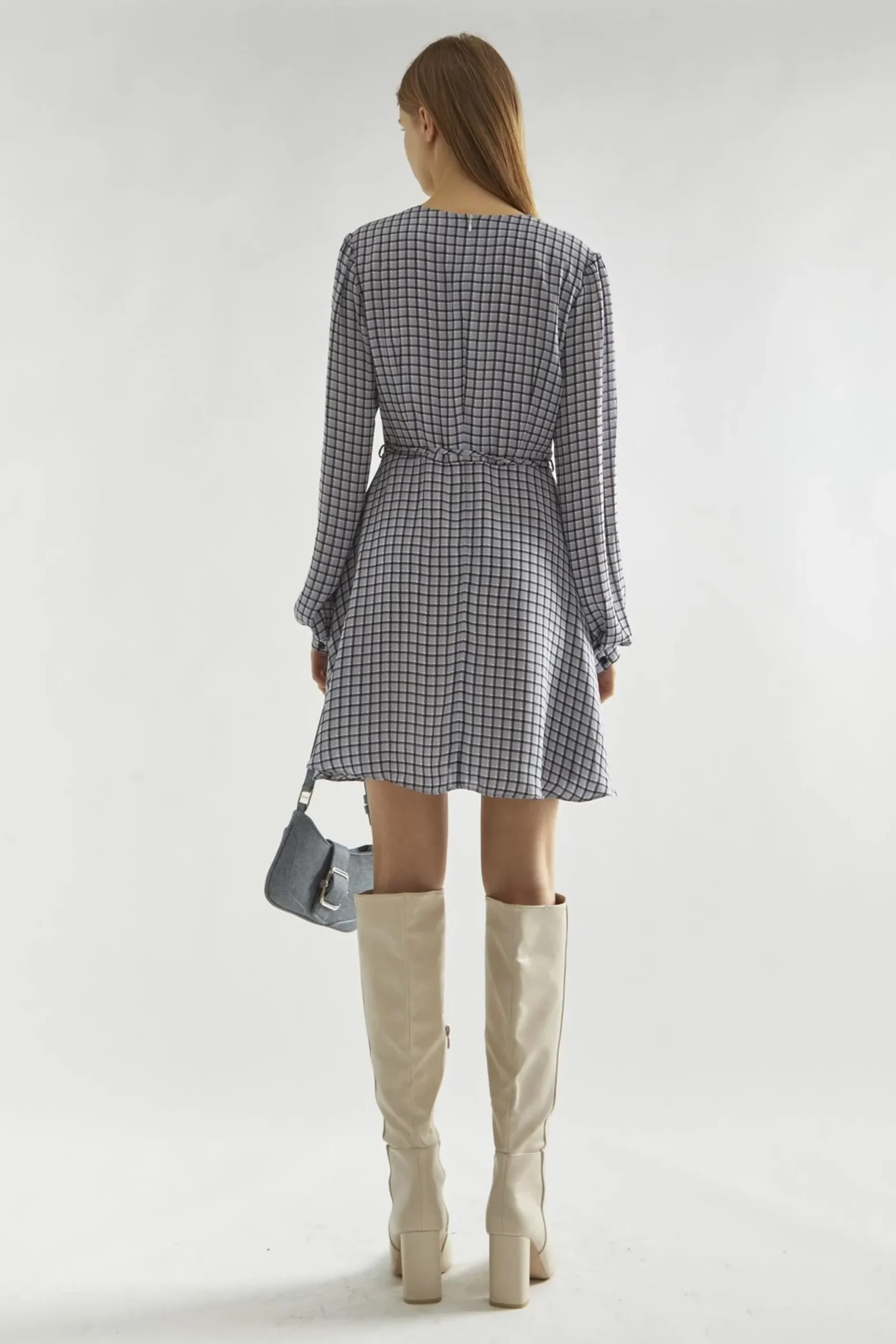 Glamorous Women’s Light-Blue Check V-Neck Mini-Dress. Welcome the cooler days with this charming light-blue check mini-dress. It’s the perfect transitional piece to ease you into autumn while holding onto that last bit of summer spirit. The V-neck adds a touch of elegance, complemented by long sleeves that’ll keep you cozy as the leaves start to turn. Cinch the waist tie to create a flattering silhouette that works for various body types. The mini length is ideal for showing off your favourite boots or pairing with tights as the temperature drops. Fully lined for comfort and warmth, this dress also features a concealed back zip for a smooth, polished look. It’s a versatile number that’ll take you from crisp morning walks to pumpkin spice latte dates with ease. Layer it under a chunky cardigan or a leather jacket for those chillier days, or pair it with ankle boots and a scarf for a quintessential fall outfit. This dress is your go-to for looking effortlessly put-together as the seasons change.