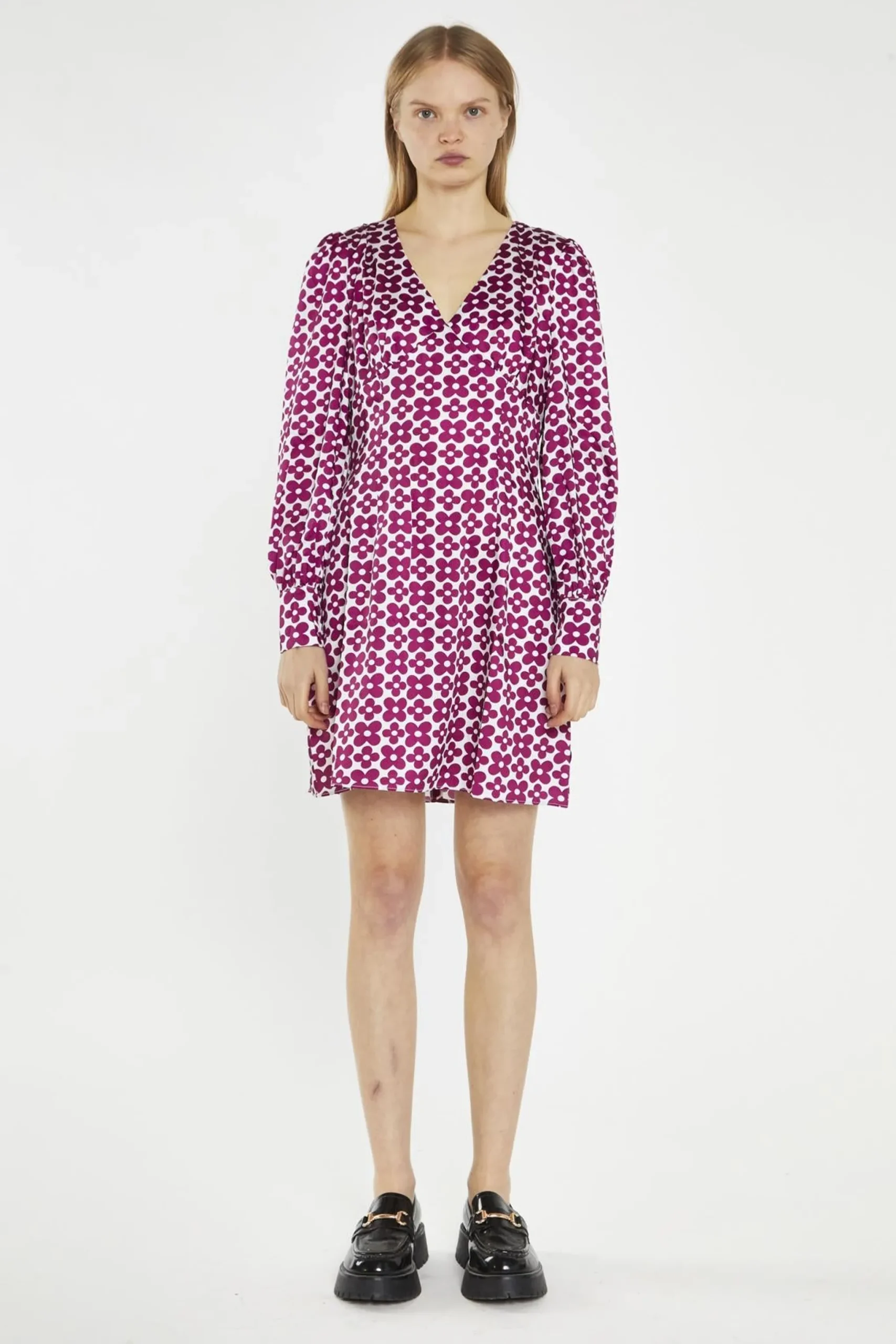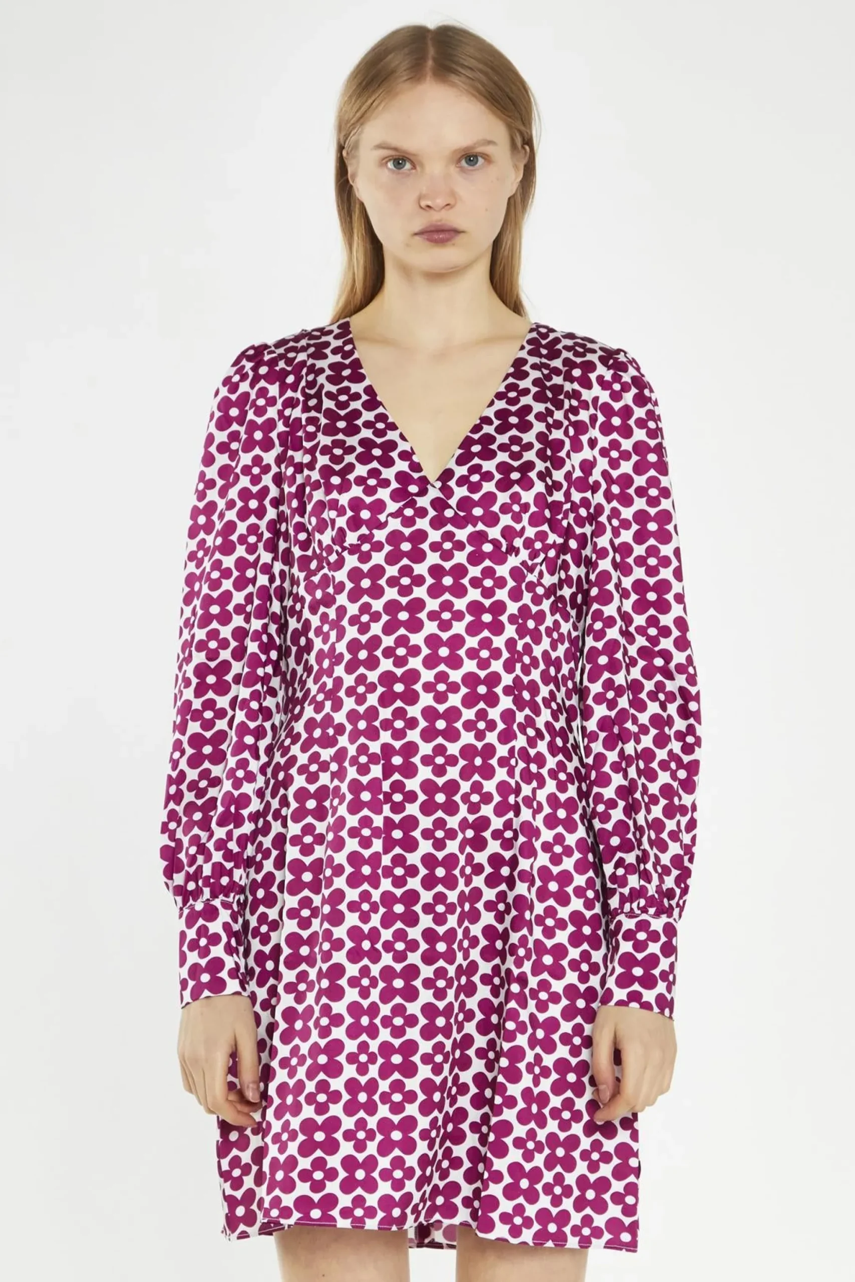 Glamorous Women’s Magenta-Flower V-Neck Mini-Dress. Add a pop of colour to your wardrobe with this vibrant magenta flower print mini dress. The V-neck creates a flattering silhouette, while the long sleeves provide a touch of coverage. The mini length is perfect for showing off your legs and favourite pair of heels. This dress is ideal for a night out with friends or a special occasion. Pair it with some strappy sandals and a bold lip for a glamorous look, or dress it down with sneakers and a denim jacket for a more casual vibe. The magenta hue is both bold and playful, making this dress a true showstopper. This dress is sure to turn heads and make you feel confident and fabulous..