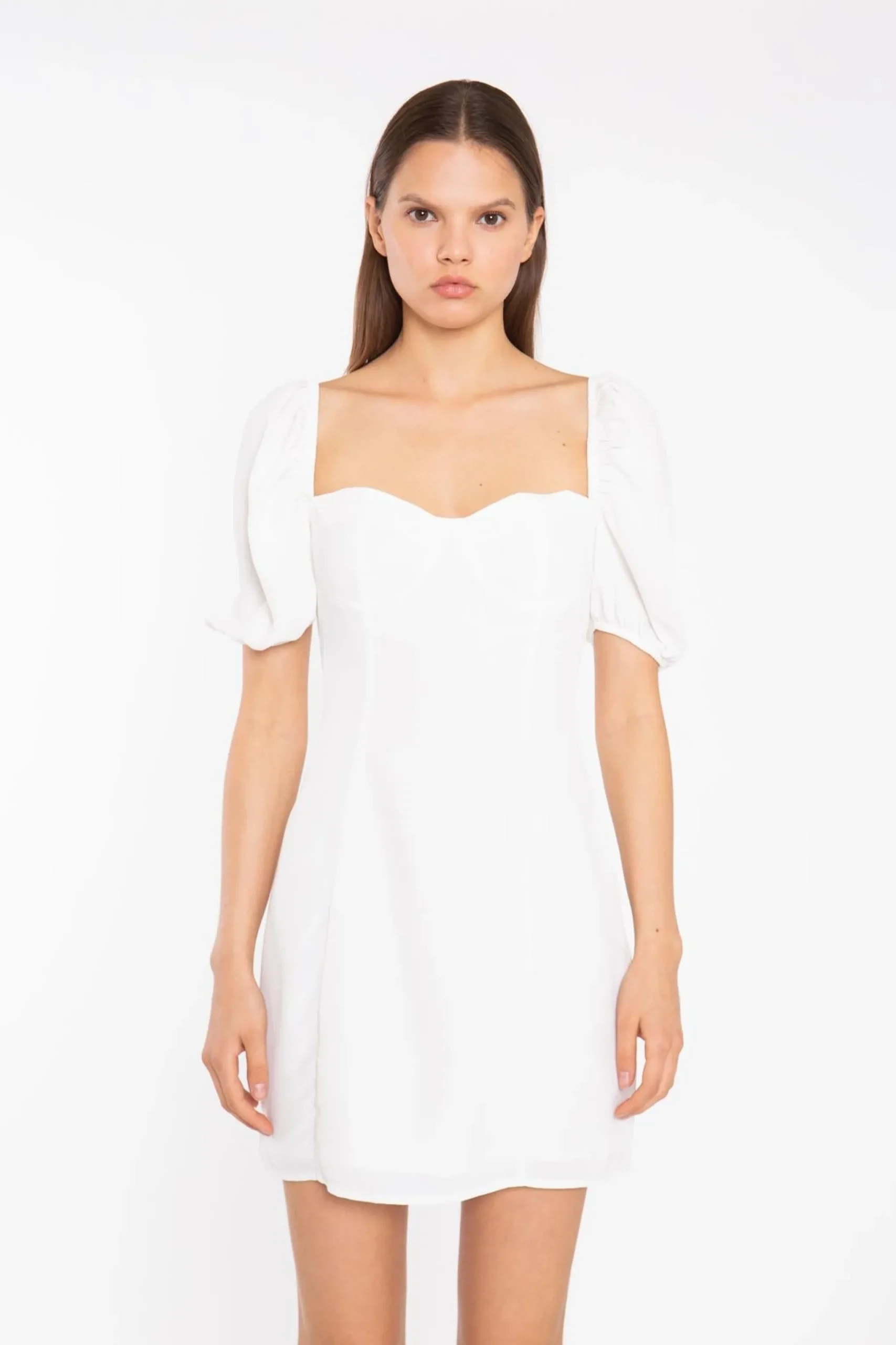 Glamorous Women’s Off-White Bust Cup Mini-Dress. The perfect mini-dress for day to night, this Off-White Bust Cup Mini-Dress features a tailored fit and stylish puff sleeves. The bust cup detail adds a touch of elegance to the modern design. Look and feel fabulous in this must-have dress. Dress this up or down with a quick change of shoes, it will not let you down!