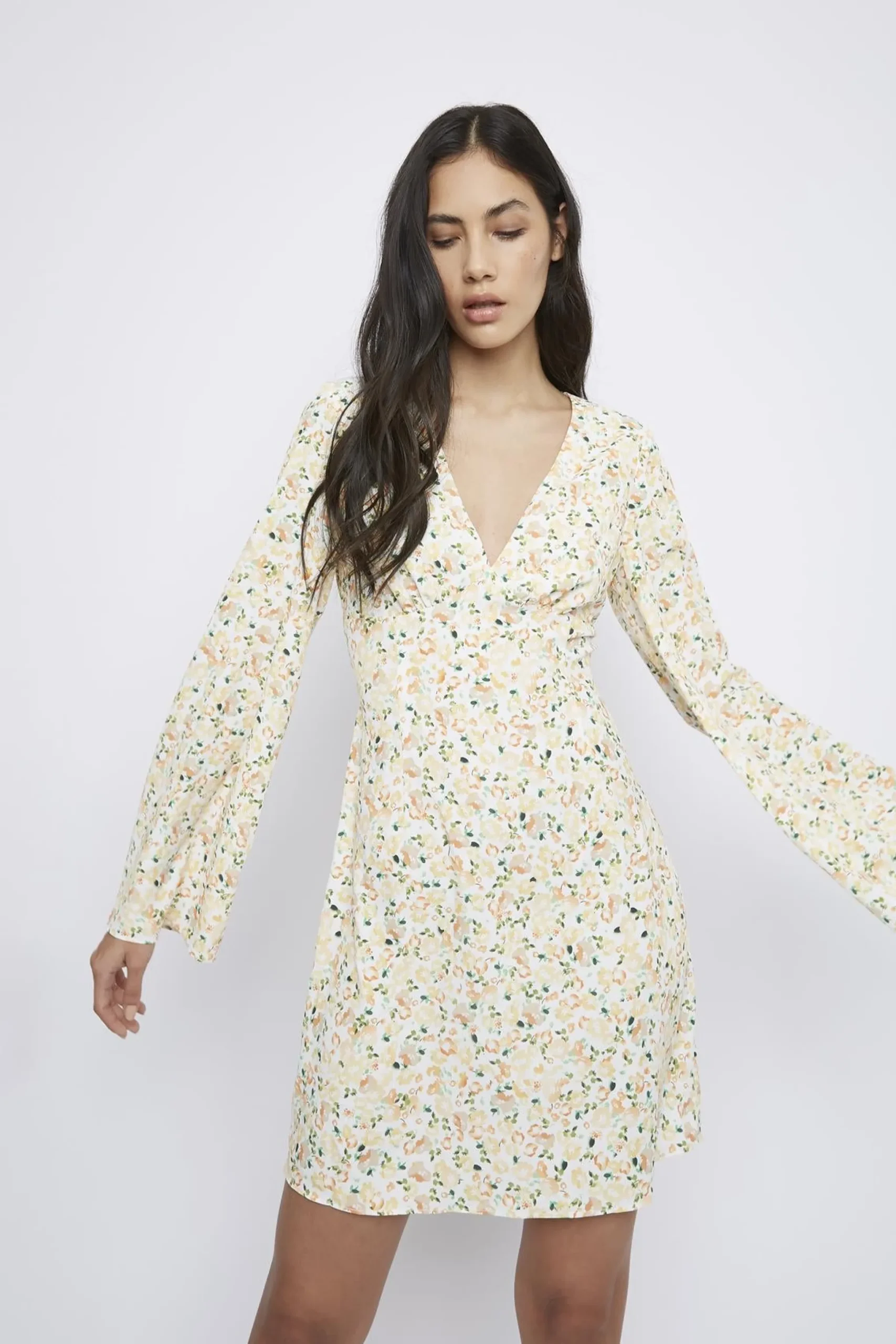 Glamorous Women’s Orange Ditsy-Floral Mini-Dress. Bring a burst of sunshine to your wardrobe with our Orange Ditsy Floral Mini-Dress. This little number is like wearing a field of wildflowers – it’s cheerful, carefree, and oh-so-pretty. The vibrant orange background sets off the delicate floral print, creating a look that’s both bold and sweet. The V-neck adds a touch of flirty charm, while the long sleeves make it perfect for those in-between weather days. But here’s the real showstopper: the open tie back. It adds a playful, unexpected twist that’s sure to turn heads. This dress is all about easy, breezy style – just throw it on and you’re ready for whatever the day brings. Pair it with some ankle boots for a casual brunch, or dress it up with heels for a date night. It’s the kind of dress that makes you feel like dancing, even if you’re just doing the grocery run. With its mix of comfort and cuteness, this mini-dress is bound to become your go-to for days when you need a little extra pep in your step.