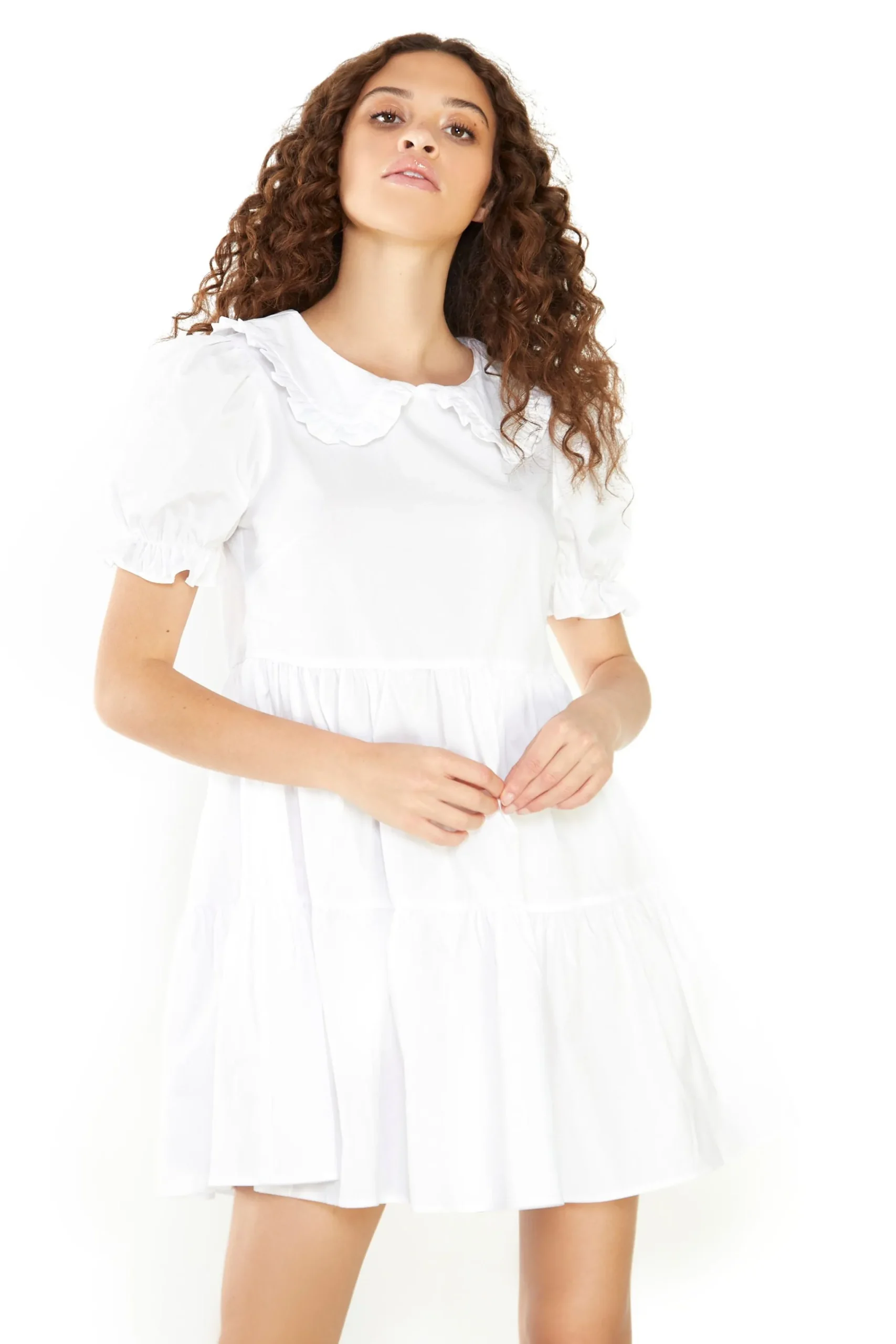 Glamorous Womens White Collar Puff Shoulder Mini Dress. Opt for a the perfect piece with this flattering mini dress. This super flattering dress features puff shoulders and a collar detail. Style with trainers for the daytimes and heels for the evening!