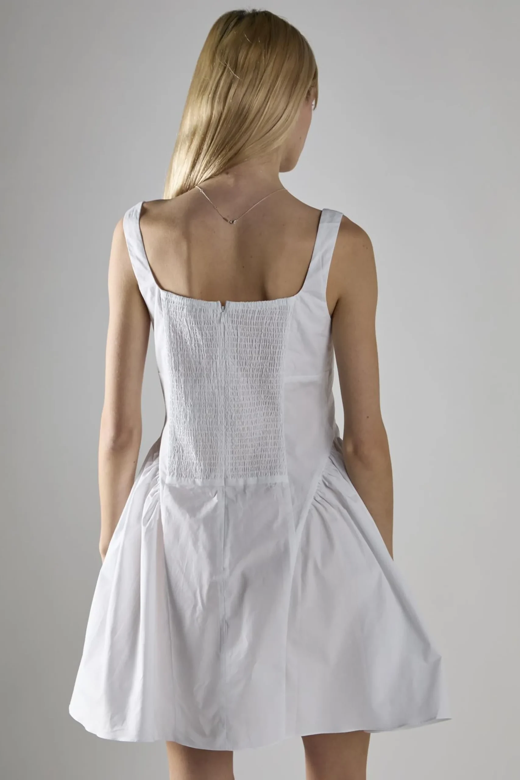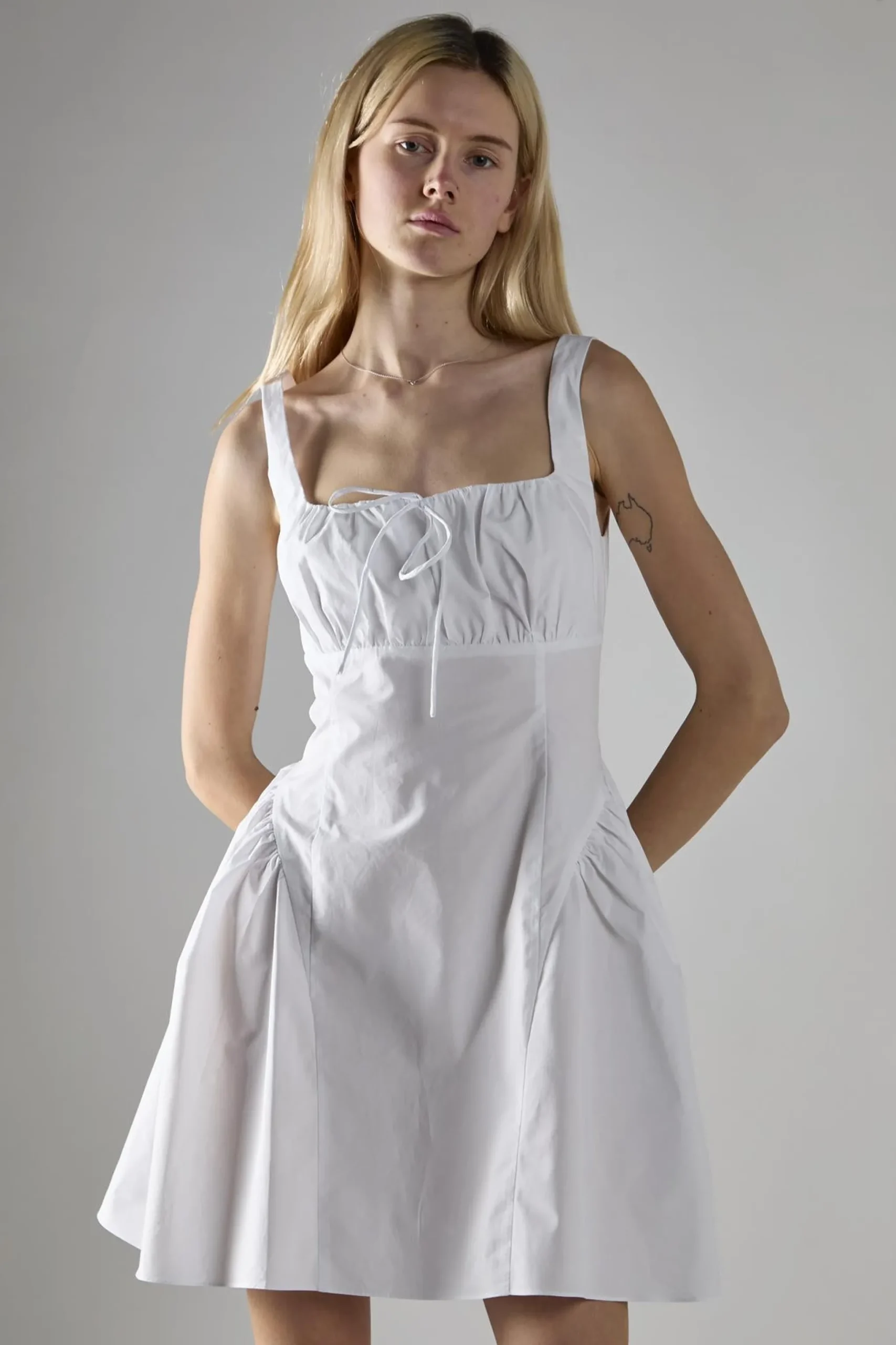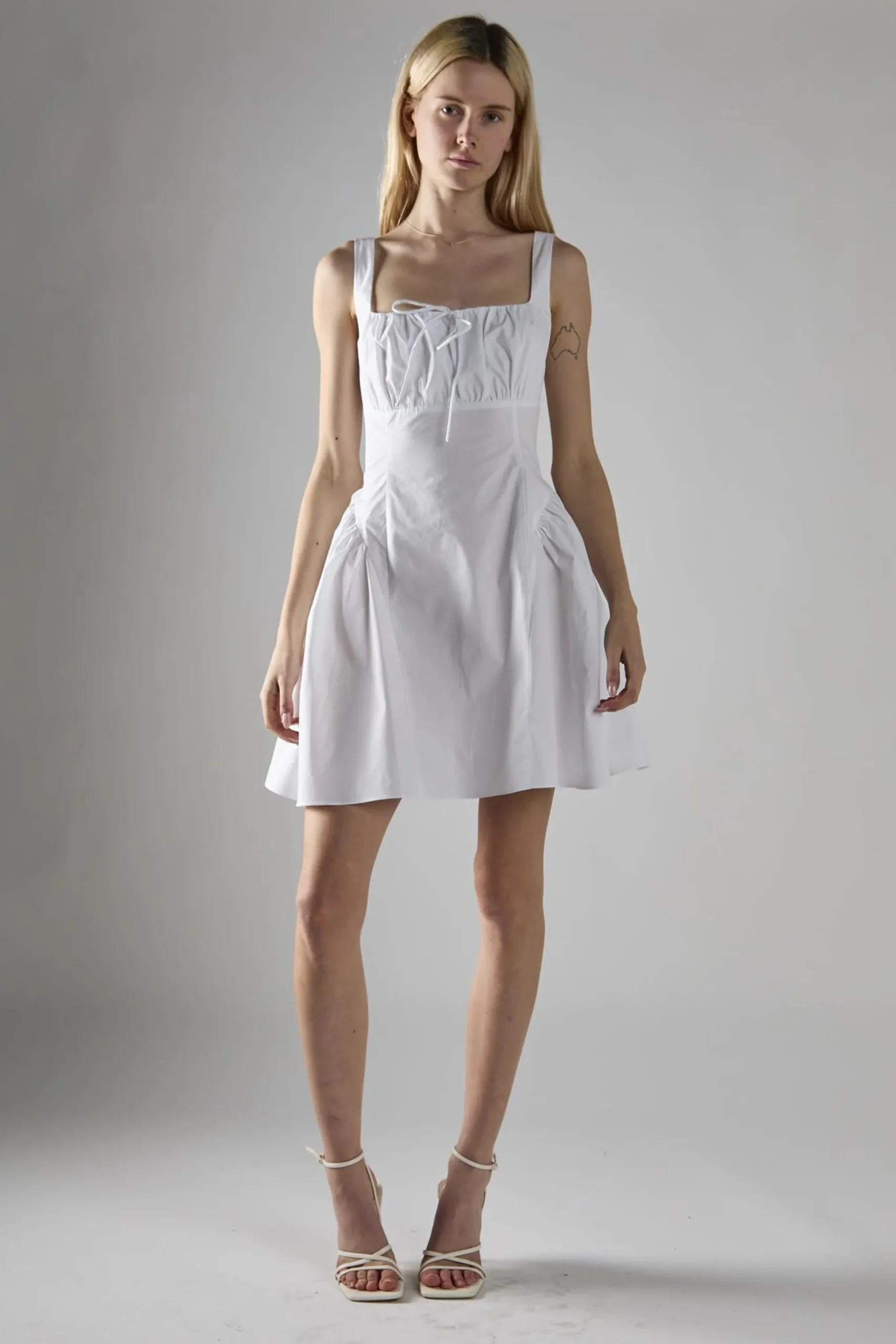 Glamorous Women’s White Square Neckline Mini-Dress. This charming white mini-dress brings a fresh and breezy vibe to your wardrobe. Its square neckline frames your décolletage beautifully, while the sleeveless design keeps you cool on warm days. The dress features a playful tie front, adding a touch of whimsy and allowing for a customizable fit. Delicate pleated detailing adds texture and movement, creating visual interest as you move. For ease of wear, a concealed zip fastening at the back ensures a smooth silhouette. This versatile piece is perfect for casual outings or dressed up for special occasions. Pair it with strappy sandals and a denim jacket for a laid-back look, or add some sparkly jewellery and heels to take it from day to night. The crisp white hue makes it an ideal canvas for accessorizing with your favourite pops of colour.