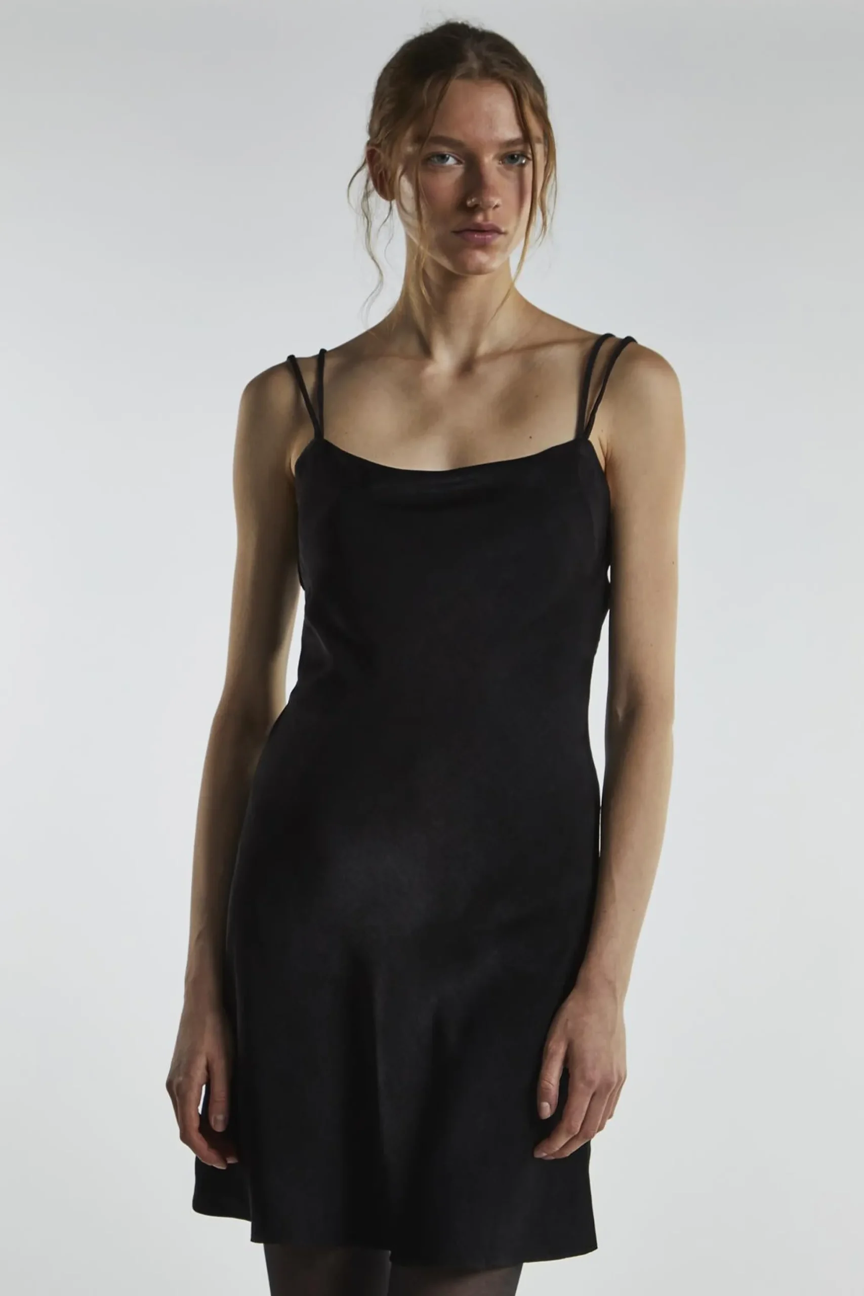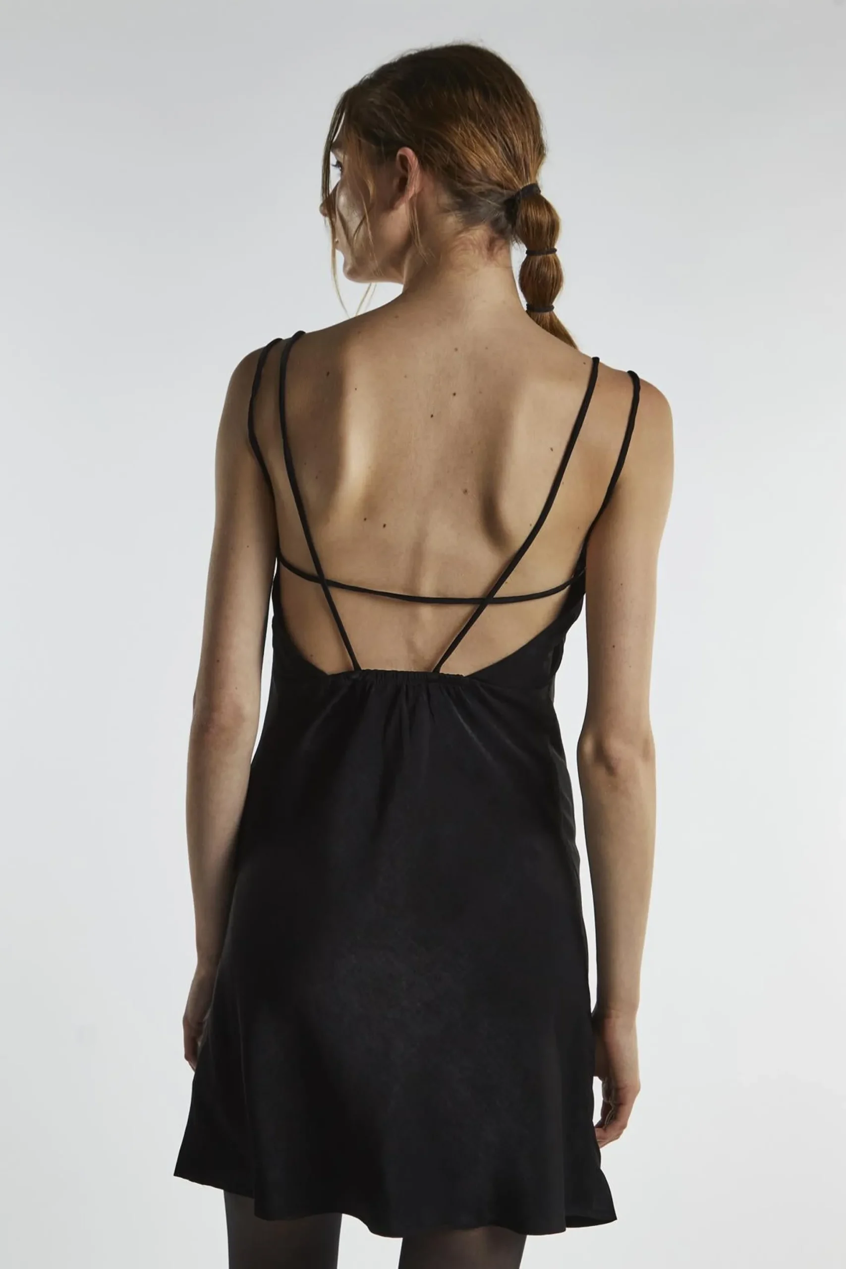 Glamorous Women’s Black Satin Strappy Mini Mini-Dress. Our Black Satin Strappy Mini Dress is a stunning piece that combines simplicity with allure. This sleek little number features a mini length that’s perfect for showing off your legs and creating a flattering silhouette. The delicate spaghetti straps add a touch of femininity while providing a secure and comfortable fit. Crafted from luxurious satin fabric, this dress drapes beautifully over your curves, offering a smooth and lustrous appearance that catches the light with every movement. The sleeveless design keeps you cool and comfortable, making it ideal for warm evenings or dance-filled nights out. This versatile dress can be dressed up with heels and statement jewellery for a glamorous look, or paired with flats and a denim jacket for a more casual vibe. The timeless black colour ensures this piece will remain a staple in your wardrobe for years to come, ready to make you feel confident and stylish for any occasion. Let this Black Satin Strappy Mini Dress be your go-to choice for those moments when you want to feel effortlessly chic and undeniably beautiful.