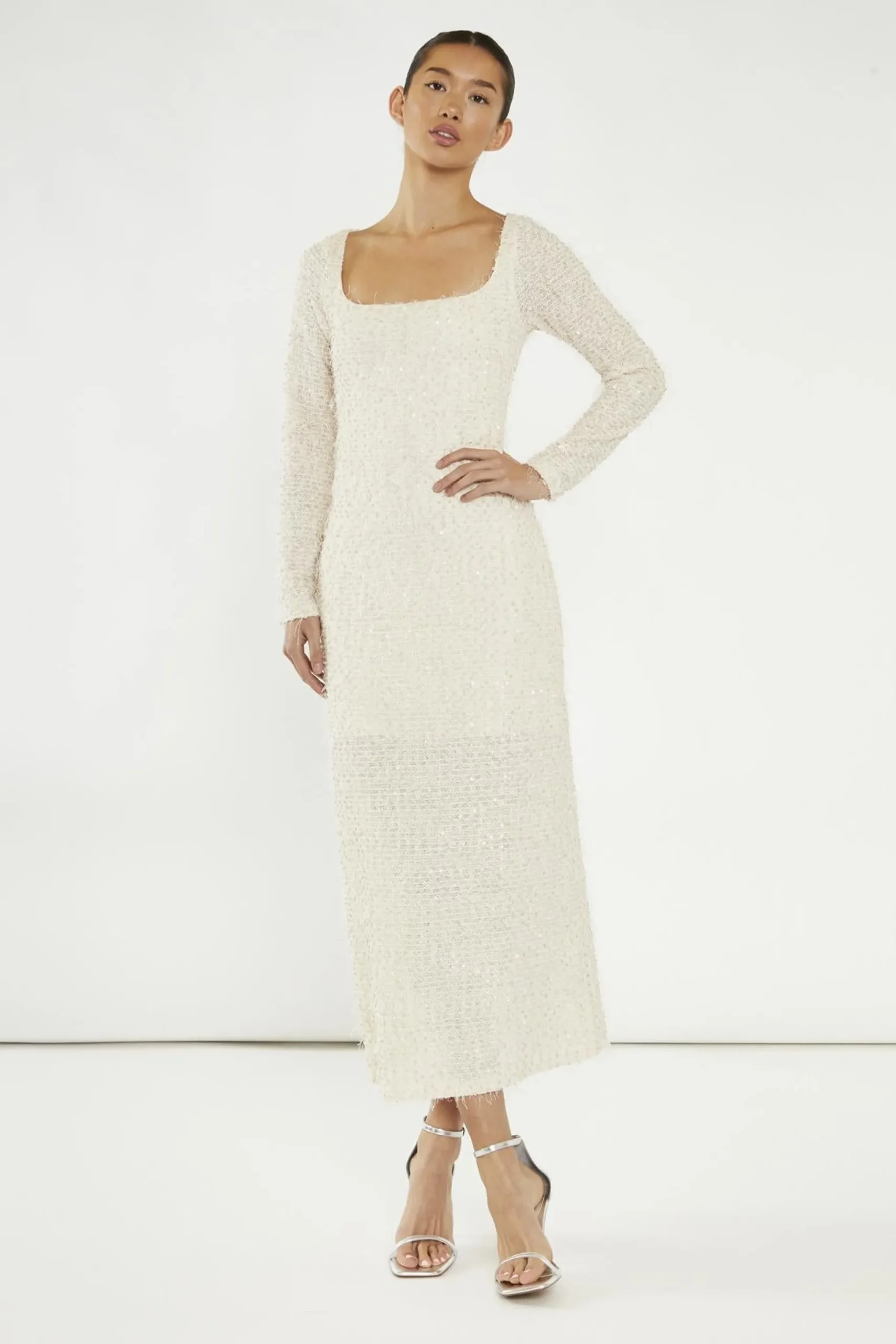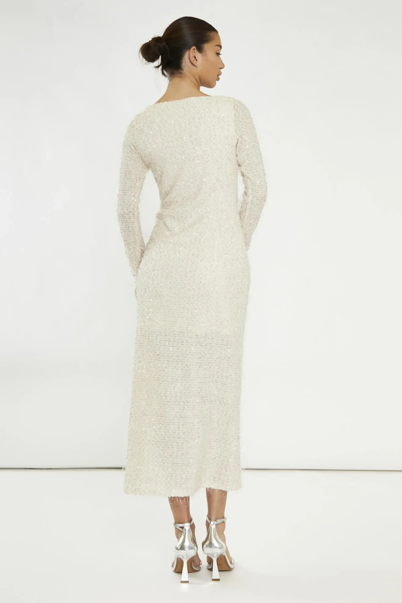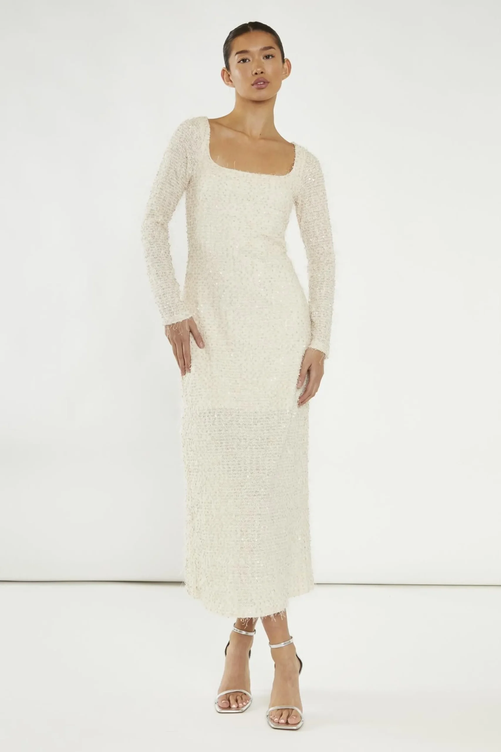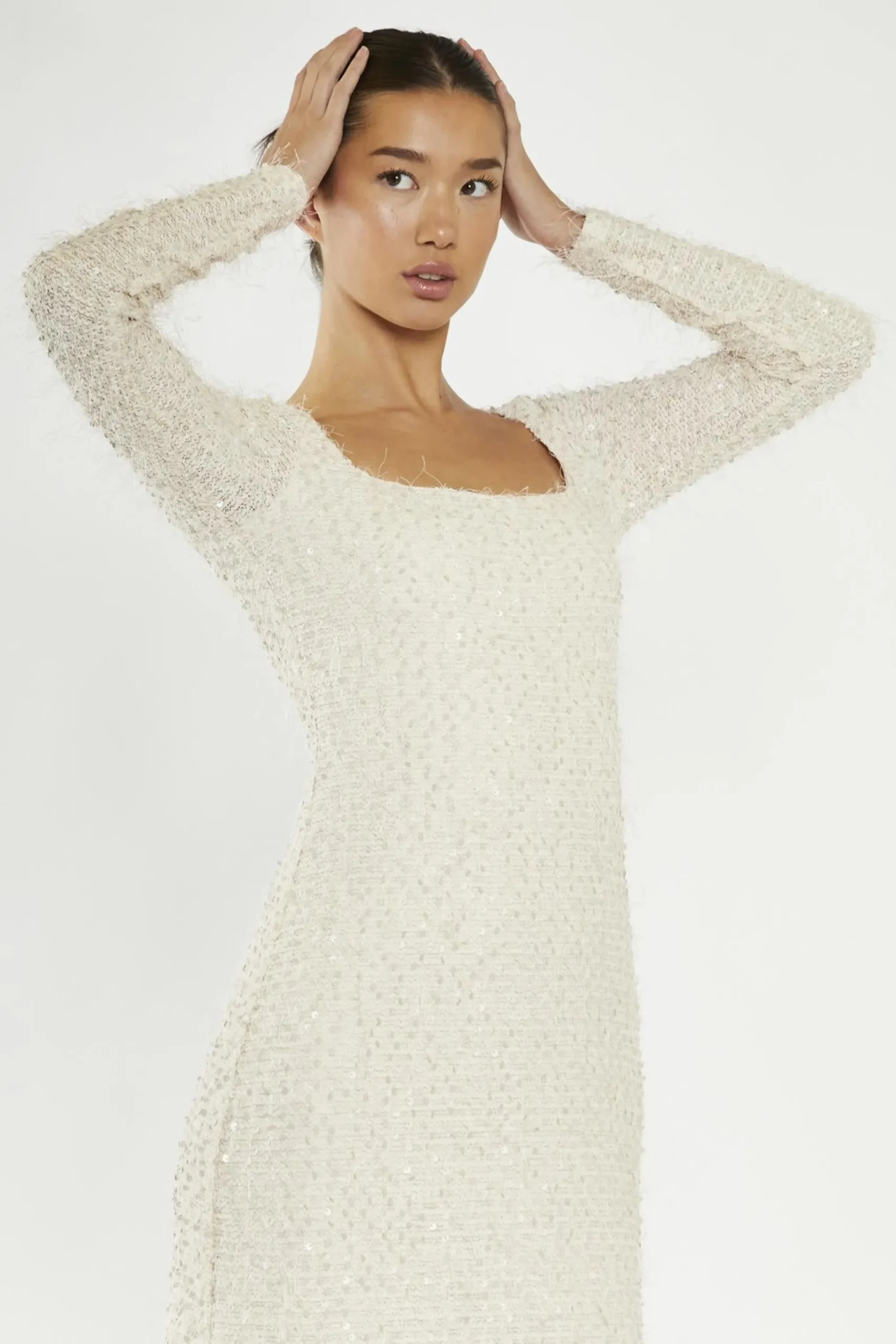 Glamorous Women’s Nude Textured-Sequin Square-Neck Midaxi-Dress. The nude texture sequin square neck midaxi dress is a lovely choice for those special occasions when you want to feel both comfortable and stylish. Its bodycon fit hugs your curves in all the right places, while the midaxi length adds a touch of elegance. The rounded square neckline offers a flattering silhouette, making it perfect for showcasing your favourite accessories. With a mini dress lining, this piece feels soft against your skin, ensuring you stay comfortable throughout the day or night. Pair it with strappy heels and a clutch for a night out, or dress it down with a denim jacket for a more casual vibe. This dress is versatile enough to fit any mood.