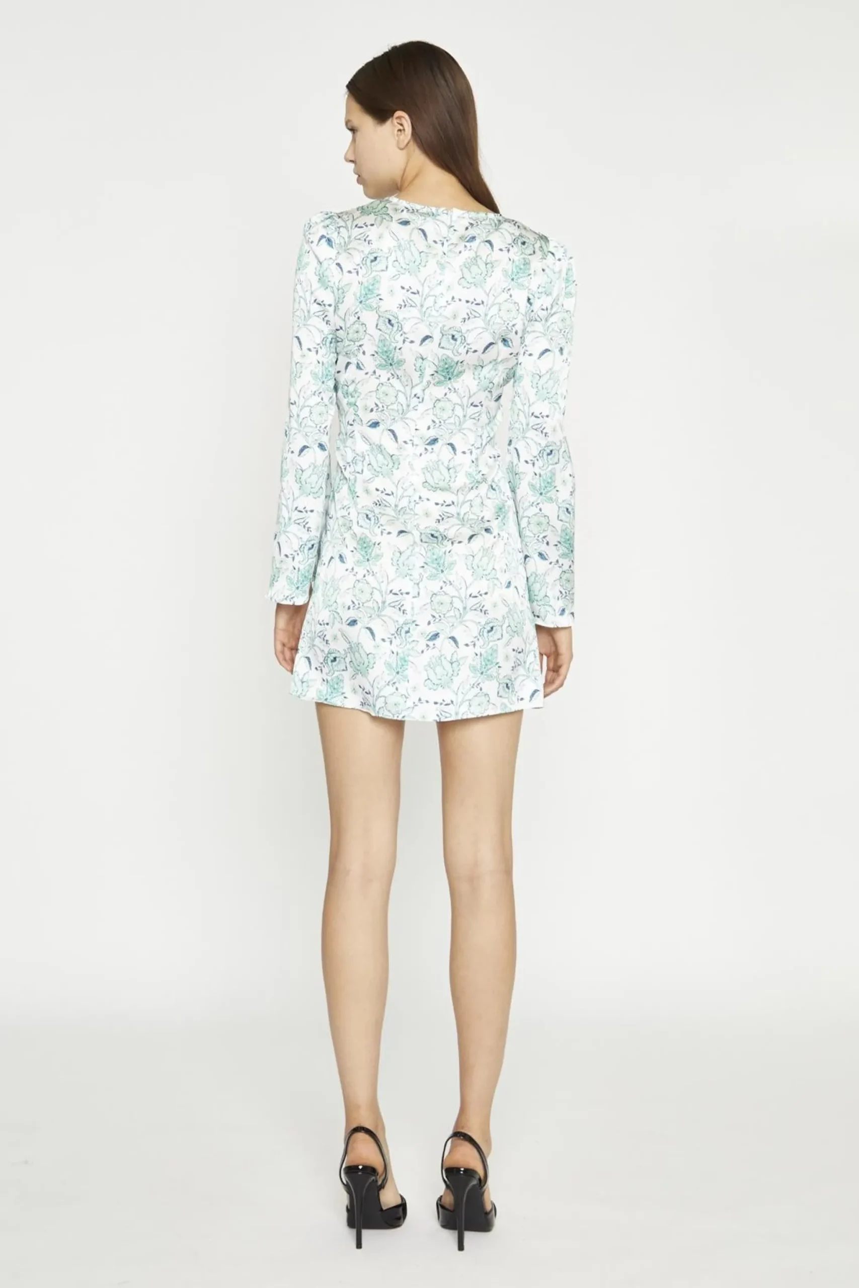 Glamorous Women’s White-Mint Paisley Satin Gathered Keyhole Mini-Dress. This dreamy mini-dress is perfect for a night out with friends or a special date. The plunging neckline with a gathered keyhole detail adds a flirty touch, while the long fluted sleeves provide a touch of elegance. The mini length shows off your legs, and the fully lined interior ensures a smooth, comfortable fit. The concealed zip fastening at the back makes it easy to slip on and off. Crafted from luxurious satin in a beautiful white-mint paisley print, this dress is sure to turn heads wherever you go. Pair it with your favourite heels and accessories for a look that’s effortlessly chic.