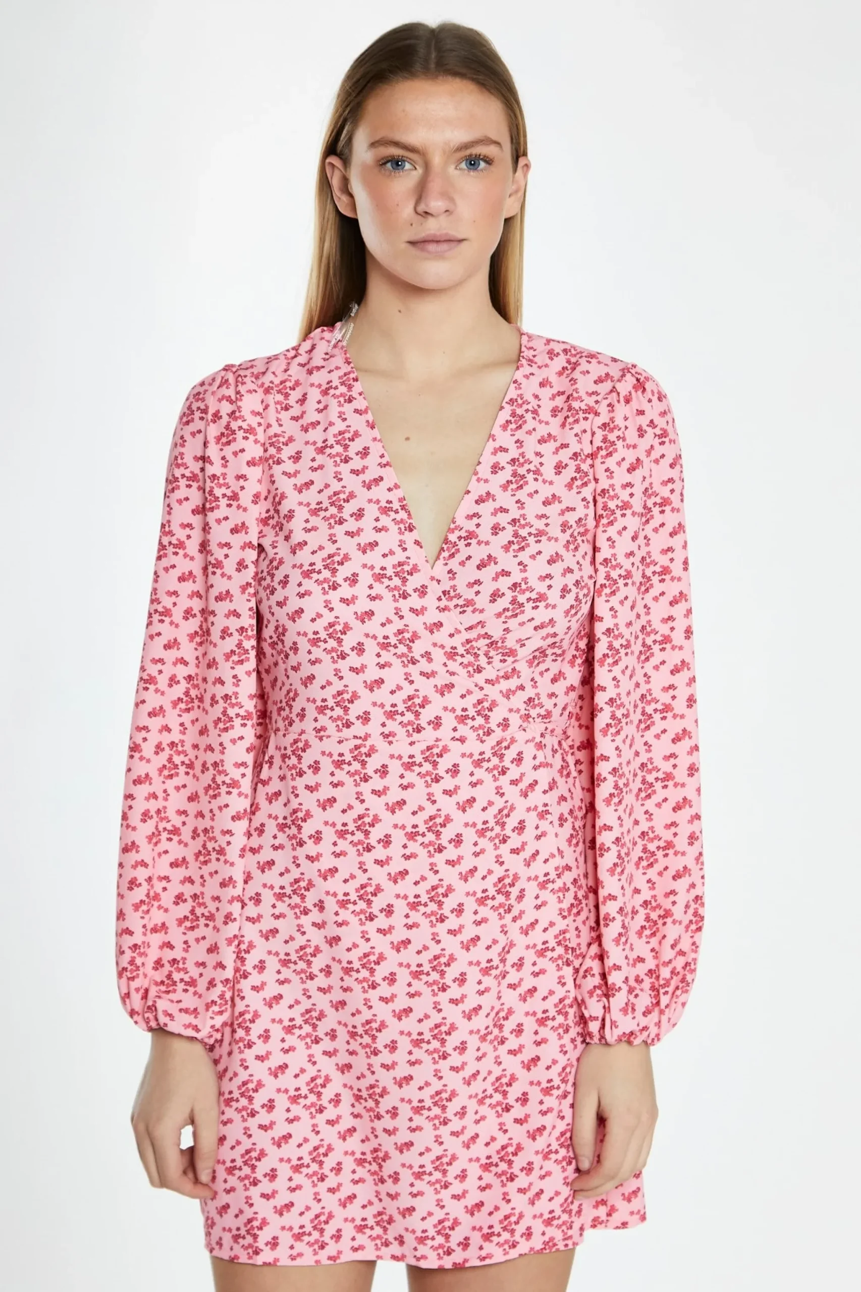 Raspberry Ditsy V-Neck Wrap Mini Dress. We are loving this super cute raspberry ditsy print! Featuring a V-Neck fit and a wrap front, you wont regret adding this super fun flattering piece to your wardrobe. This style is a Glamorous favourite as it is super versatile and easy to wear, whatever the occasion.