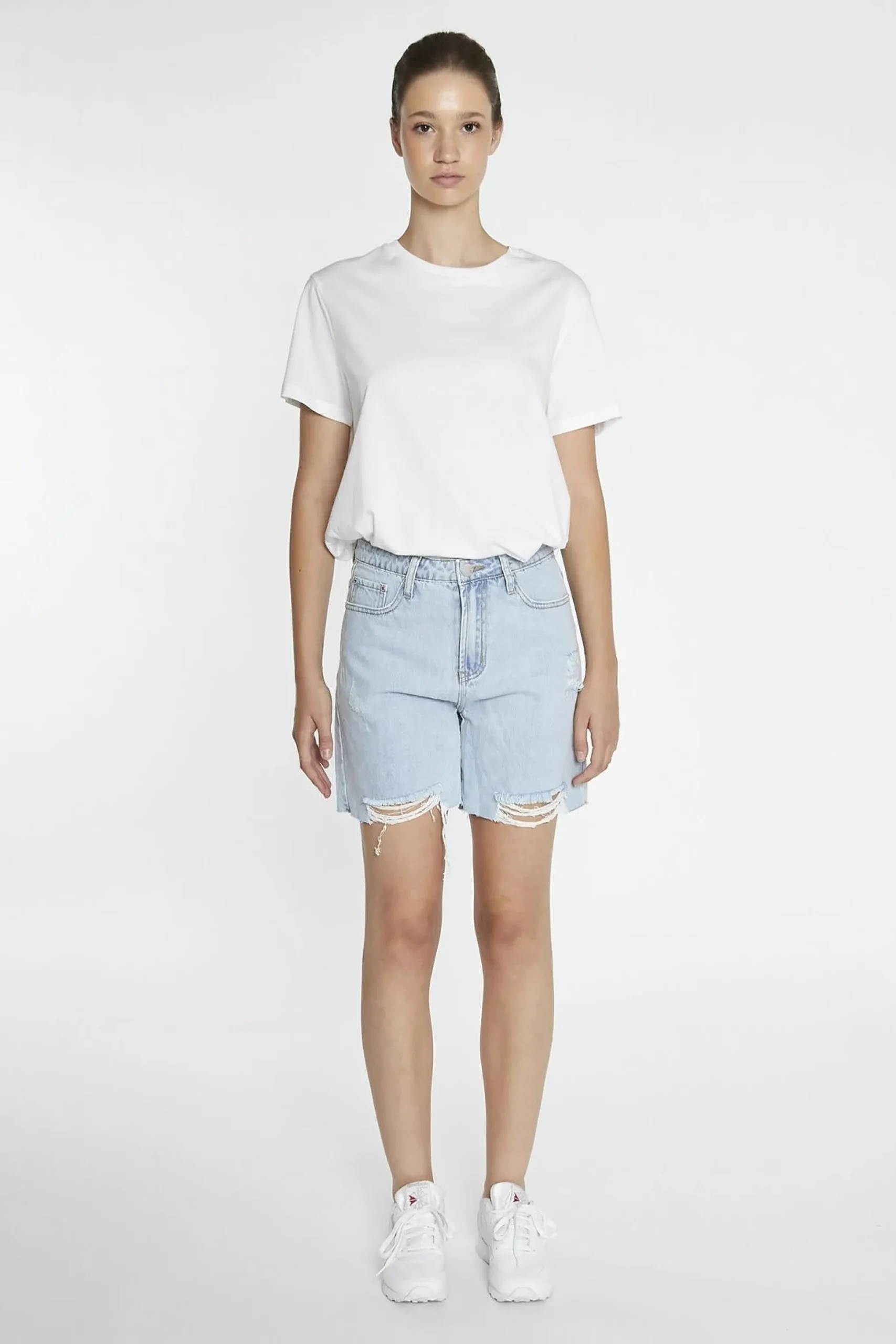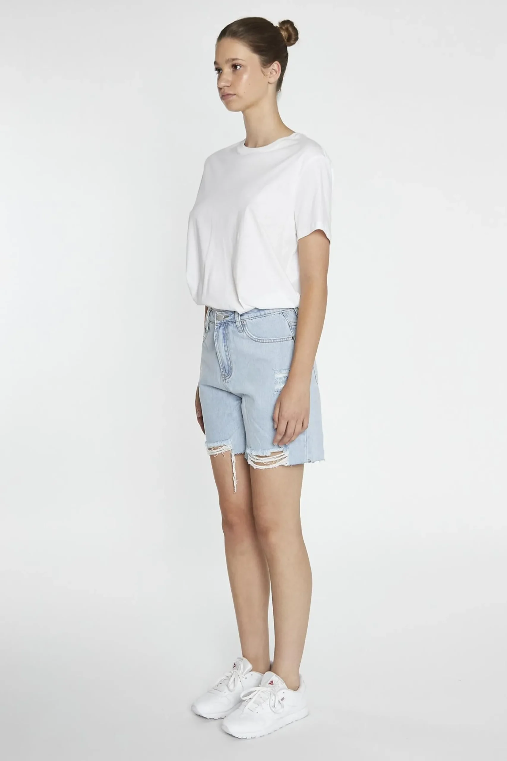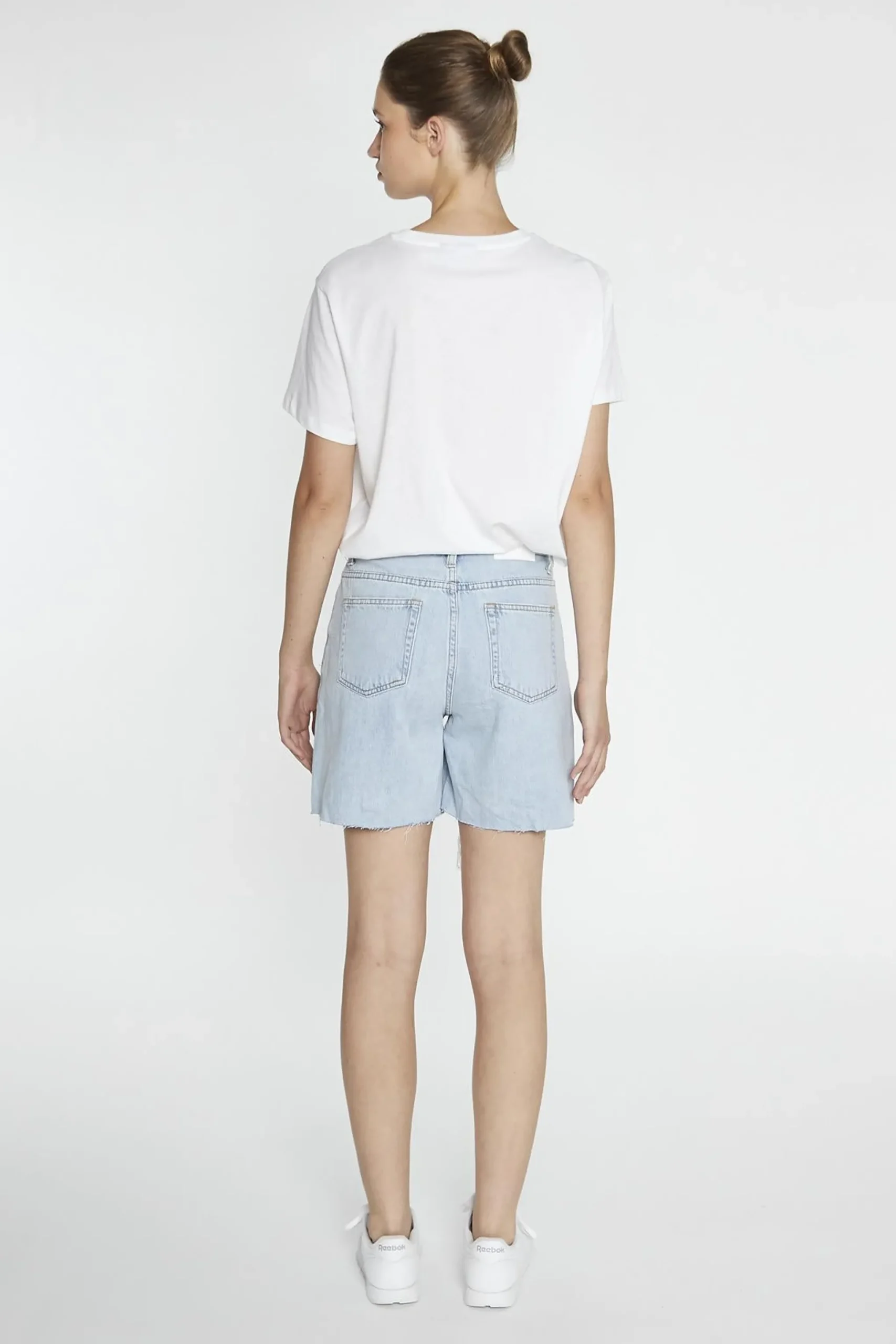 Glamorous Women’s Light Blue-Wash Loose Fit Denim-Shorts. Embrace a relaxed and effortless vibe with our Light Blue-Wash Loose Fit Denim Shorts. Crafted from a soft and breathable denim fabric, these shorts offer a comfortable and laid-back fit that’s perfect for casual days. The light blue wash adds a touch of vintage-inspired charm, while the cut hem lends a modern, edgy twist. Pair them with a simple tee for a casual, off-duty look, or dress them up with a flowy blouse for a bohemian-chic ensemble. The loose fit allows for easy movement, making these shorts ideal for running errands or lounging at home. Whether you’re heading to the beach or running errands, these denim shorts will keep you feeling cool and stylish all day long.
