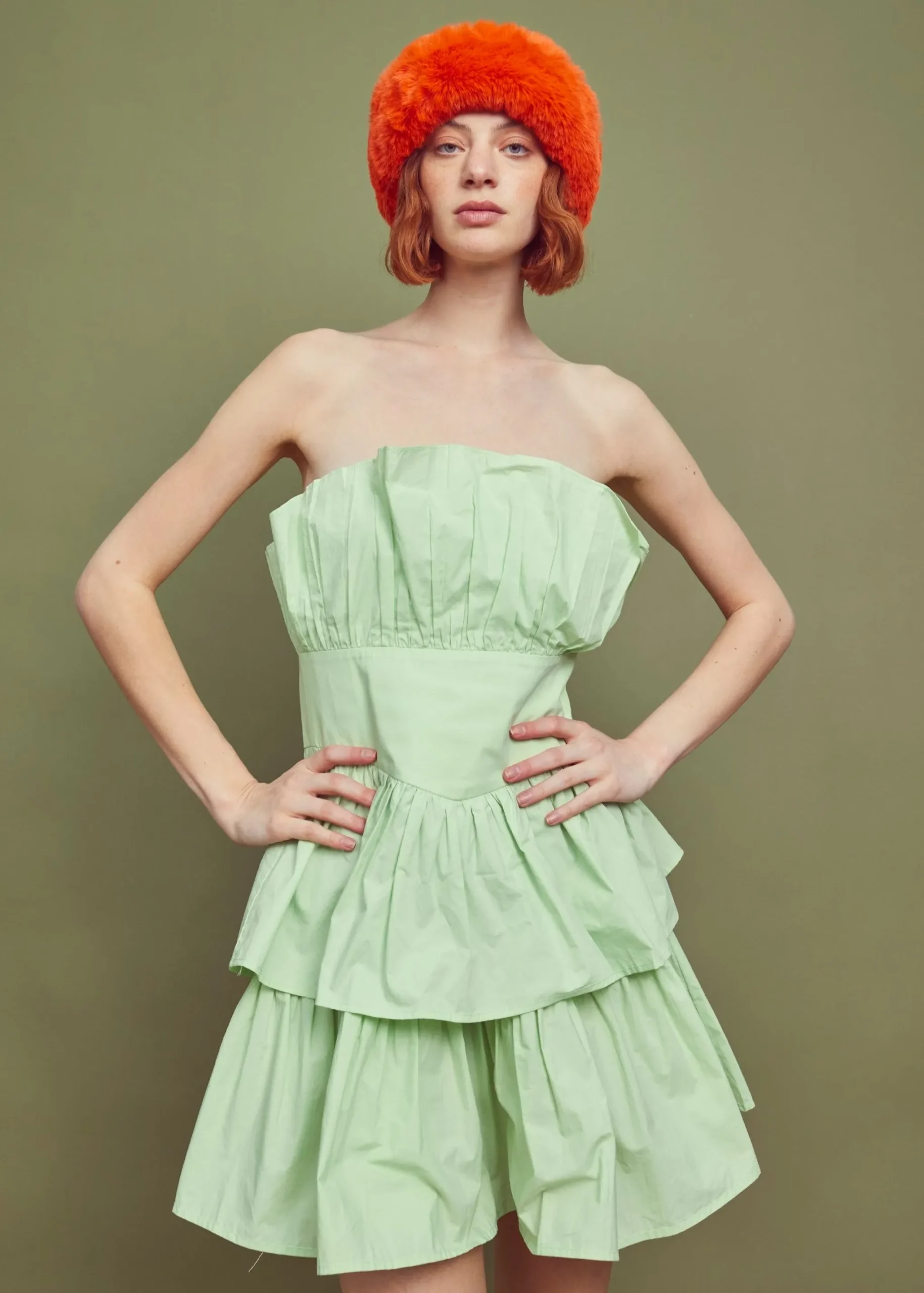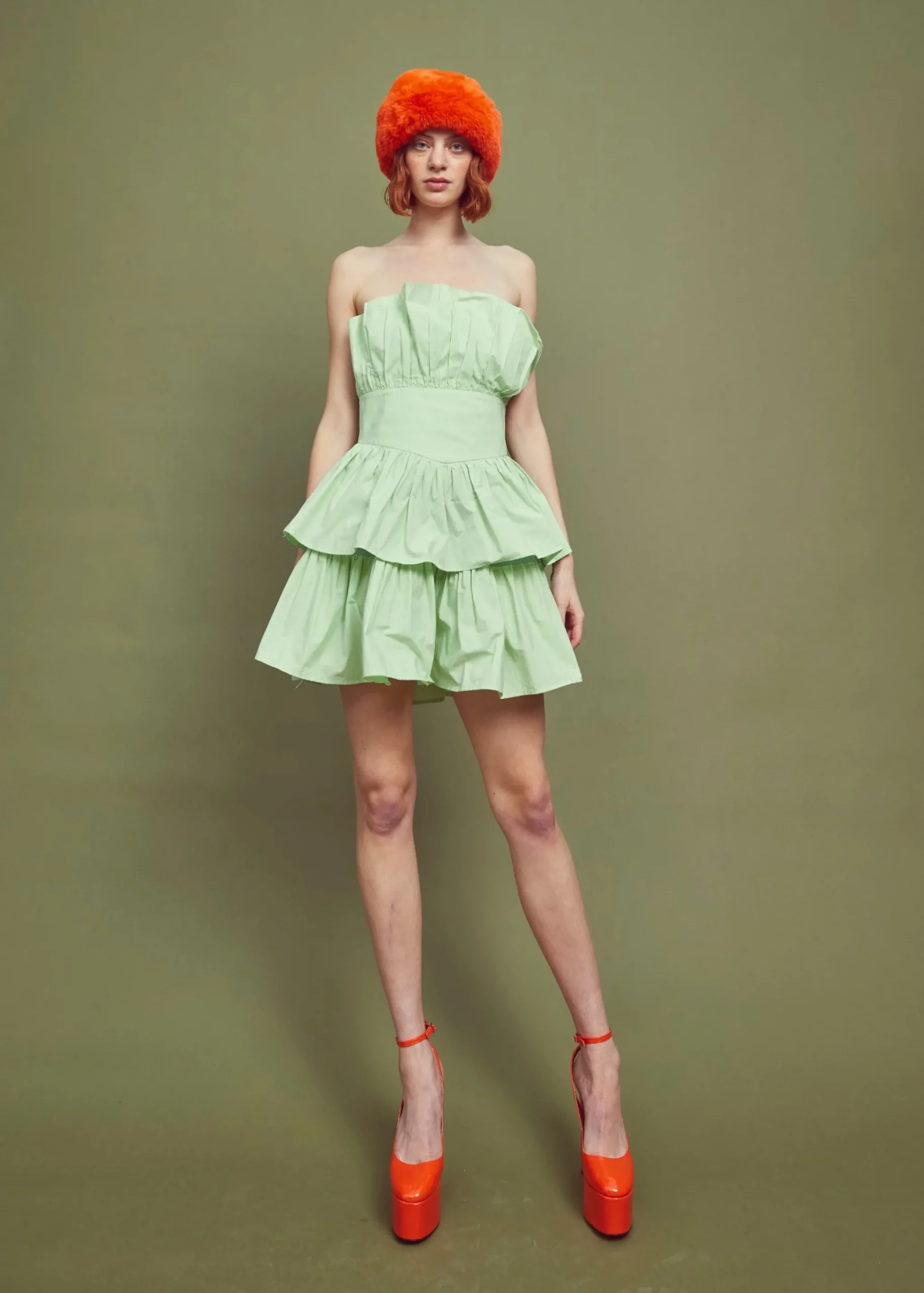 Glamorous Collection Womens Apple Green Bandeau Ruffle Mini-dress. Make a statement in our flirty apple green mini dress! With its shaped waistband, gathered ruffles, and mini length, you can step out with confidence and style.