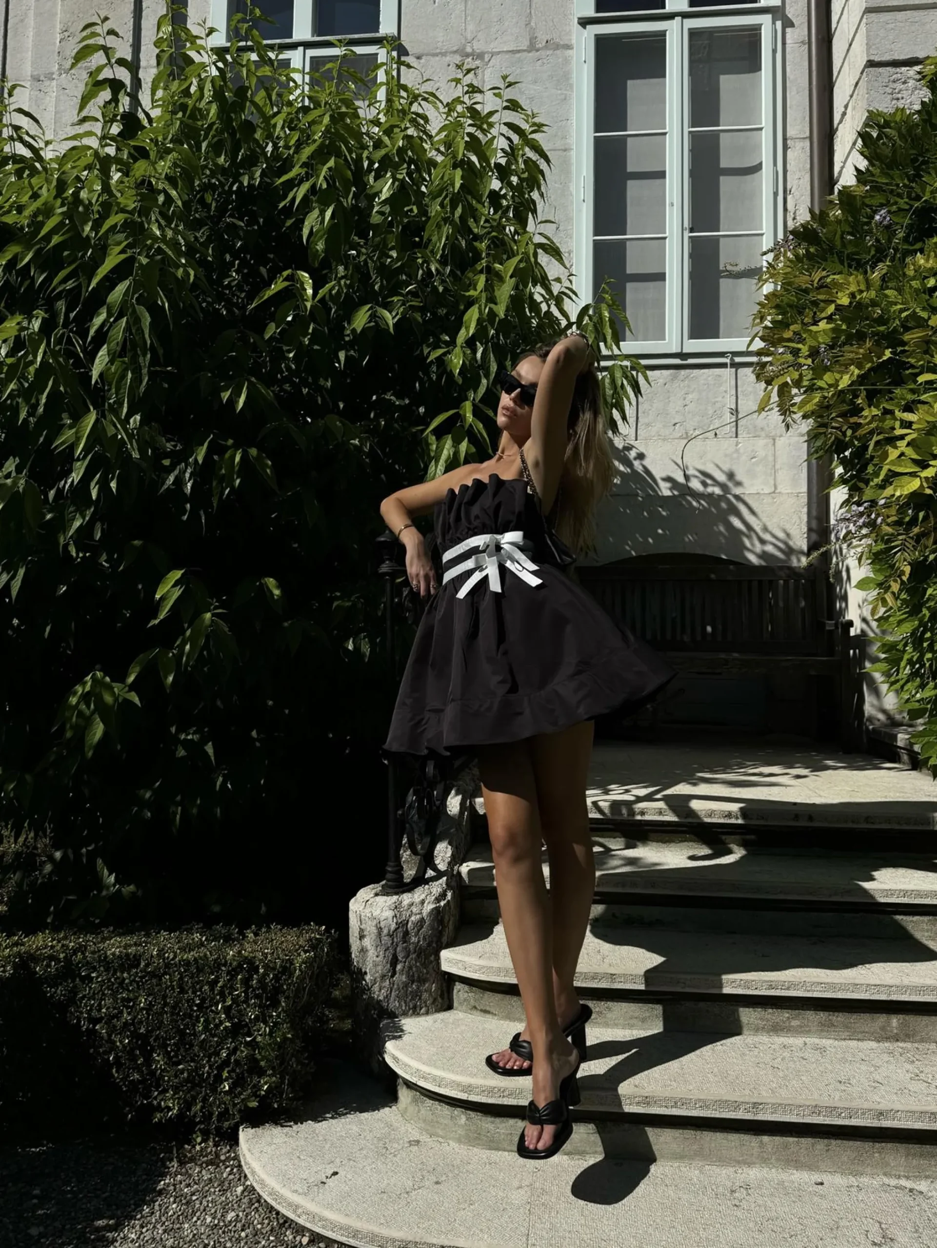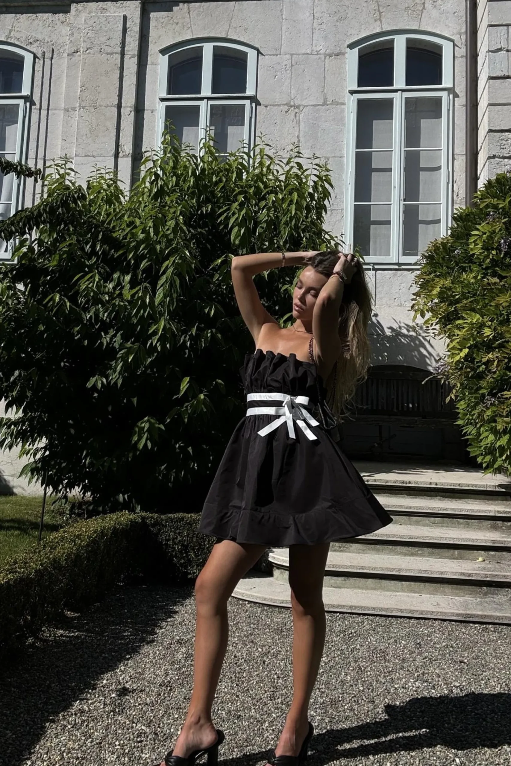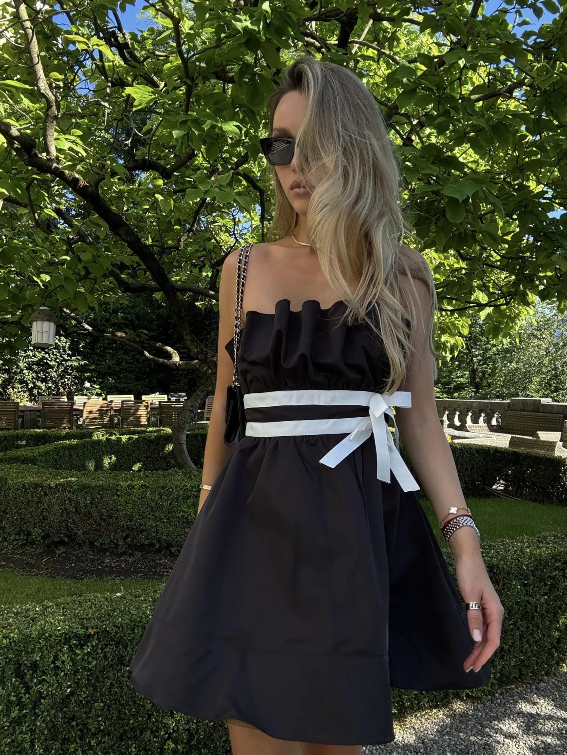 Collective the Label Women’s Black Sleeveless Bow Mini-Dress. The Black Sleeveless Bow Mini-Dress is a charming piece that brings a playful yet elegant touch to your wardrobe. Designed with a flattering sleeveless cut, this dress is perfect for those warm evenings out or casual gatherings with friends. The pleated fabric adds a lovely texture that moves beautifully as you walk, creating an eye-catching effect. With a concealed zip fastening at the back, it offers a seamless look while ensuring comfort and ease of wear. The oversized bow detail adds a fun twist, making this dress stand out in the best way. Pair it with some statement earrings and your favourite heels for a polished look, or keep it casual with ankle boots for a more relaxed vibe. This mini-dress is all about celebrating your unique style while keeping things effortlessly chic.