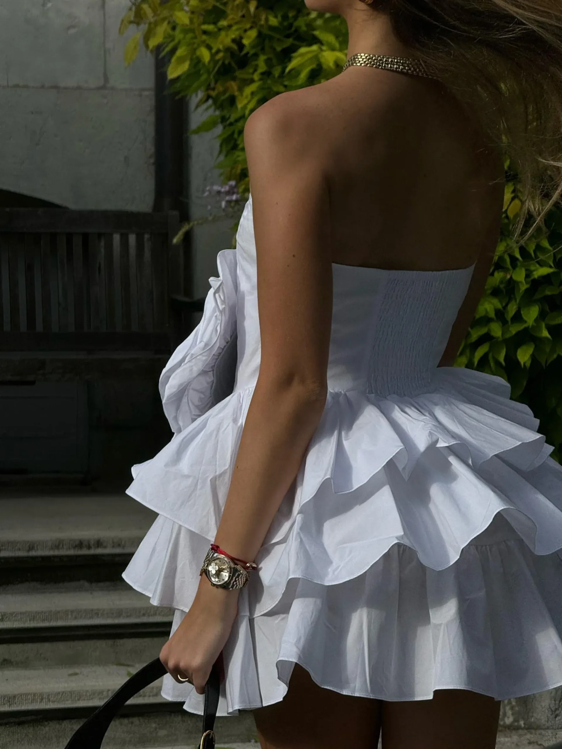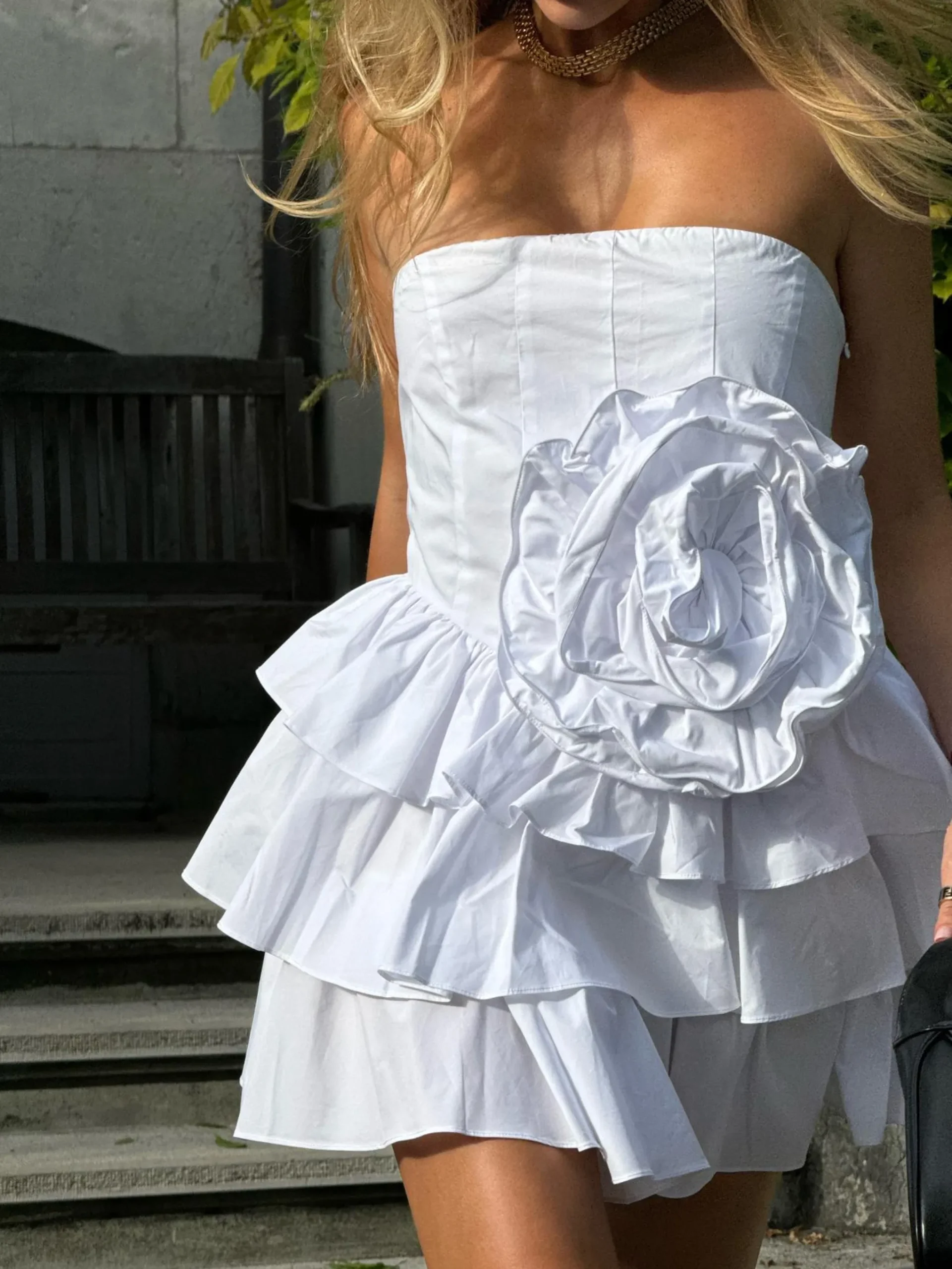 Collective the Label Women’s White Frill Layered Mini-Dress. This white frill layered mini-dress is a little slice of summer magic. It’s the kind of dress that makes you want to twirl and feel like the star of your own rom-com. The 3D flowers add a whimsical touch, like you’ve just stepped through a blooming garden. With its flirty Bardot neckline, your shoulders get to join the party too. The corset detailing cinches you in all the right places, giving you that perfect hourglass silhouette. And let’s talk about that skater skirt – it’s got just the right amount of swing to make every step feel like a dance move. This dress is perfect for those days when you want to feel extra pretty, be it a summer wedding, a fancy brunch, or just because it’s Tuesday. Pair it with some strappy sandals and a smile, and you’re good to go. It’s not just a dress, it’s a mood booster in fabric form.
