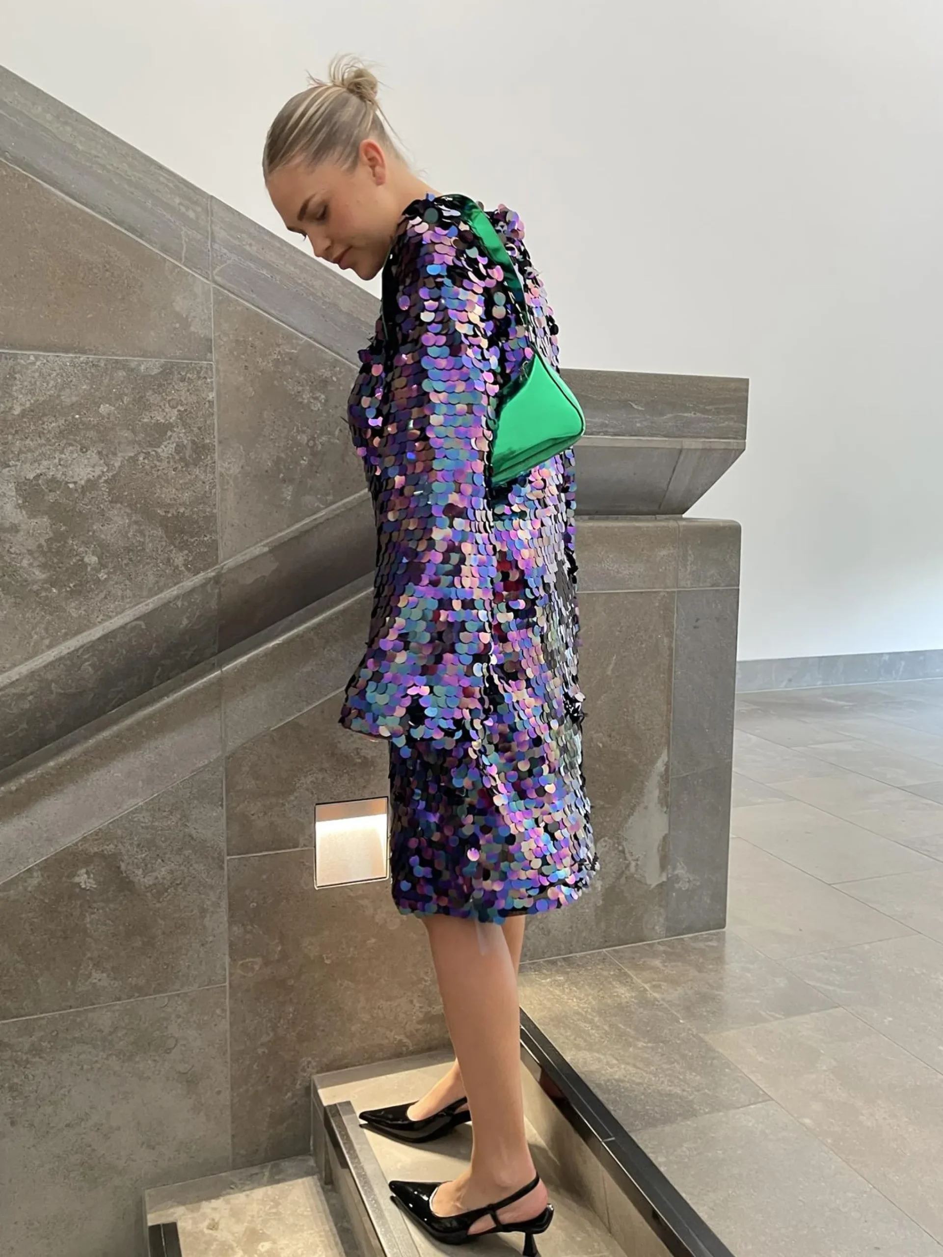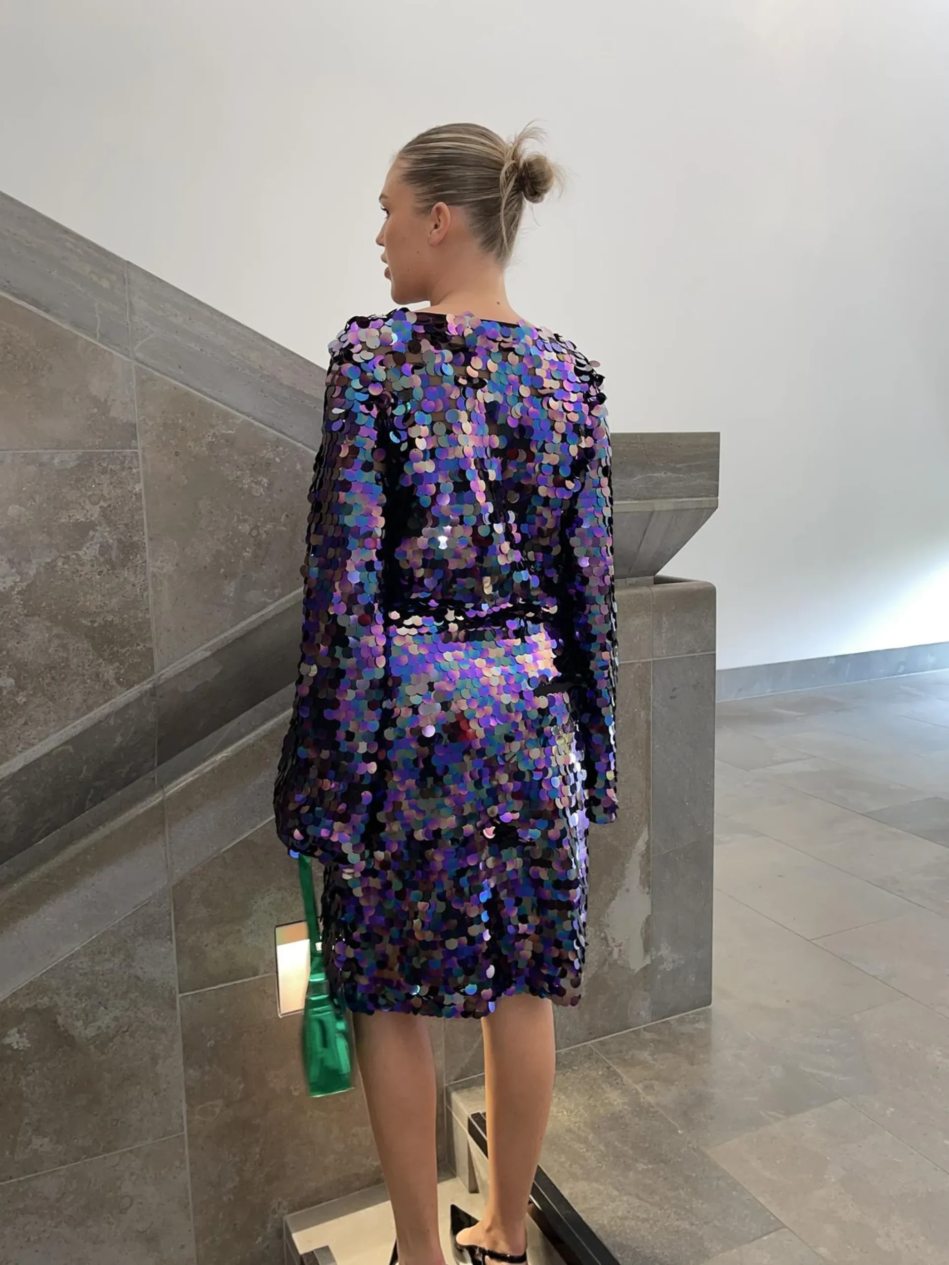 DESCRIPTION Collective the Label Women’s Mackenzie Flared Sleeve Sequin Mini-Dress – Petrol Mix. Take your social events…