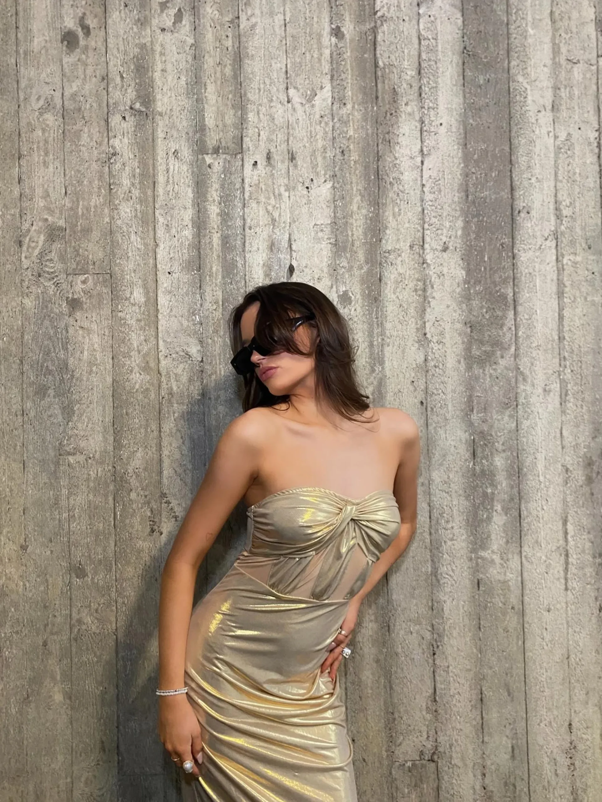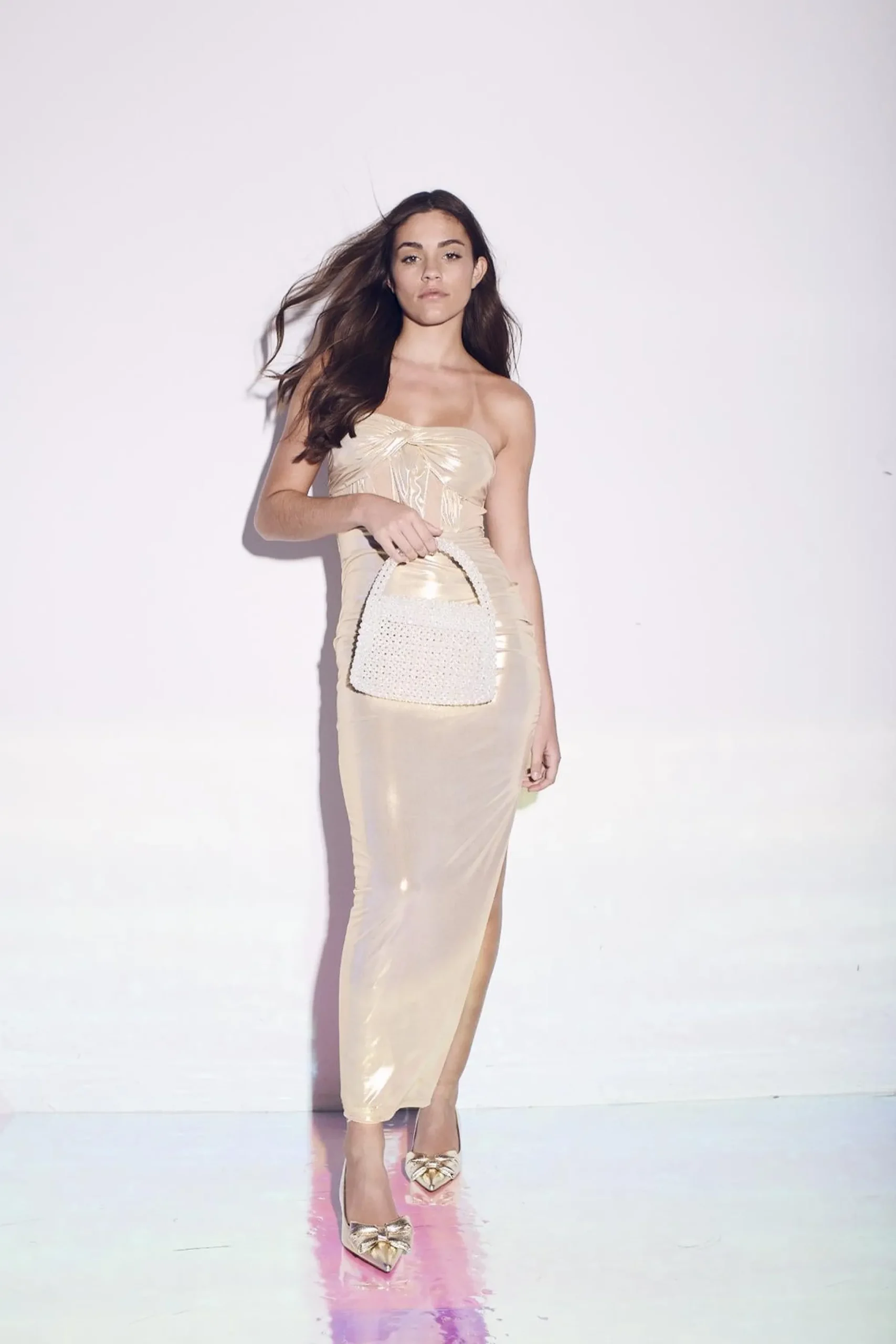 DESCRIPTION Collective the Label Women’s Mara Twist Bandeau Midaxi Dress – Gold. Dress like a superstar in this gorgeous…