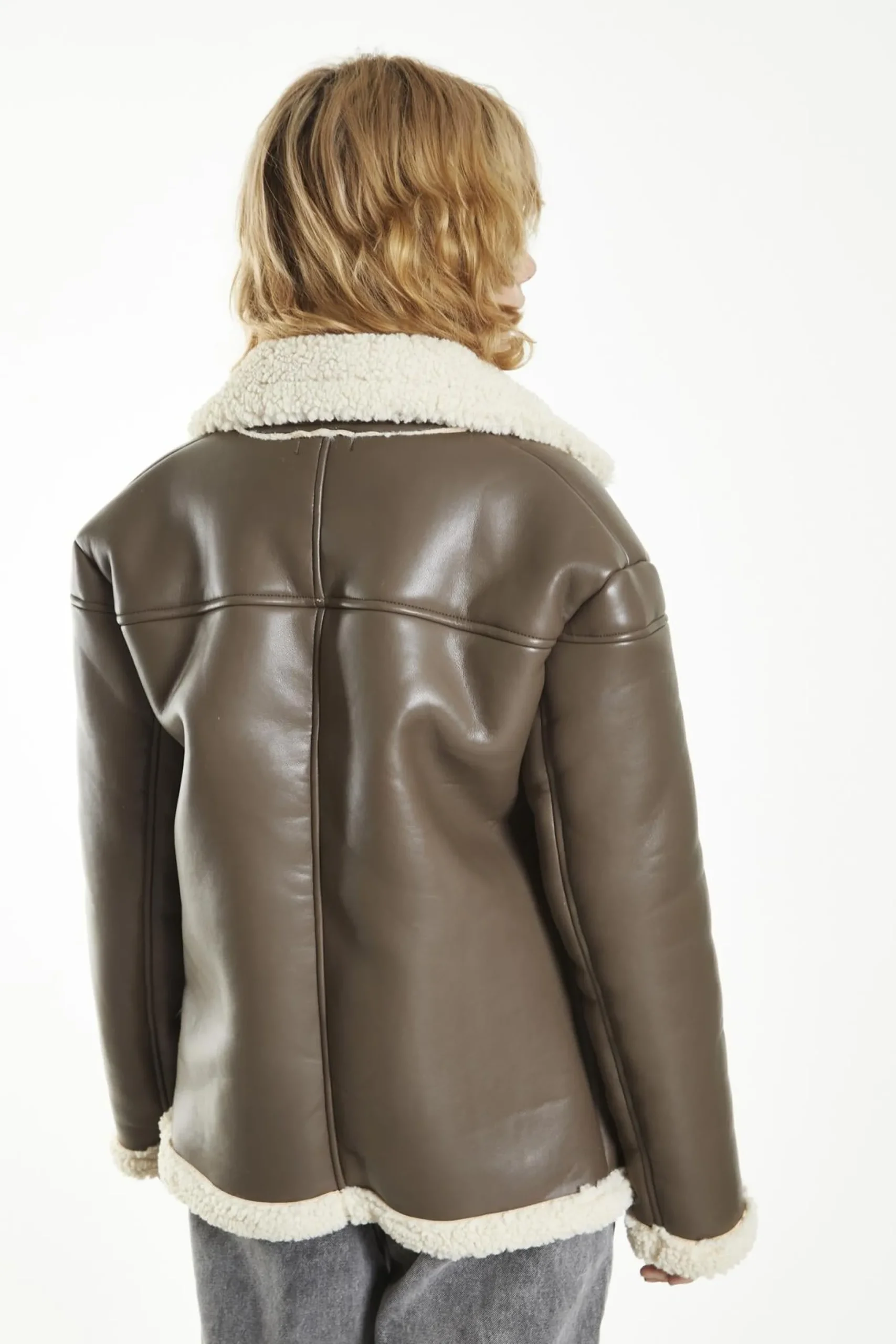 Glamorous Women’s Brown-Cream Double-Breasted Fur-Trim Coat. Cozy up in style with this brown and cream long-sleeved jacket that’s sure to turn heads. The classic collared design gives it a timeless appeal, while the button-front closure allows you to adjust your look to suit the weather. But the real star of the show is the luxurious fur lining that’ll keep you toasty warm on even the chilliest days. This jacket is like wrapping yourself in a warm hug every time you put it on. The two-tone colour scheme adds a touch of sophistication to any outfit, making it perfect for both casual outings and dressier occasions. Throw it on over your favourite jeans and sweater for a quick coffee run, or pair it with a skirt and boots for a night out. The versatile design means you’ll find yourself reaching for this jacket time and time again. It’s not just a piece of clothing; it’s a cozy companion that’ll see you through the cold months in style and comfort.