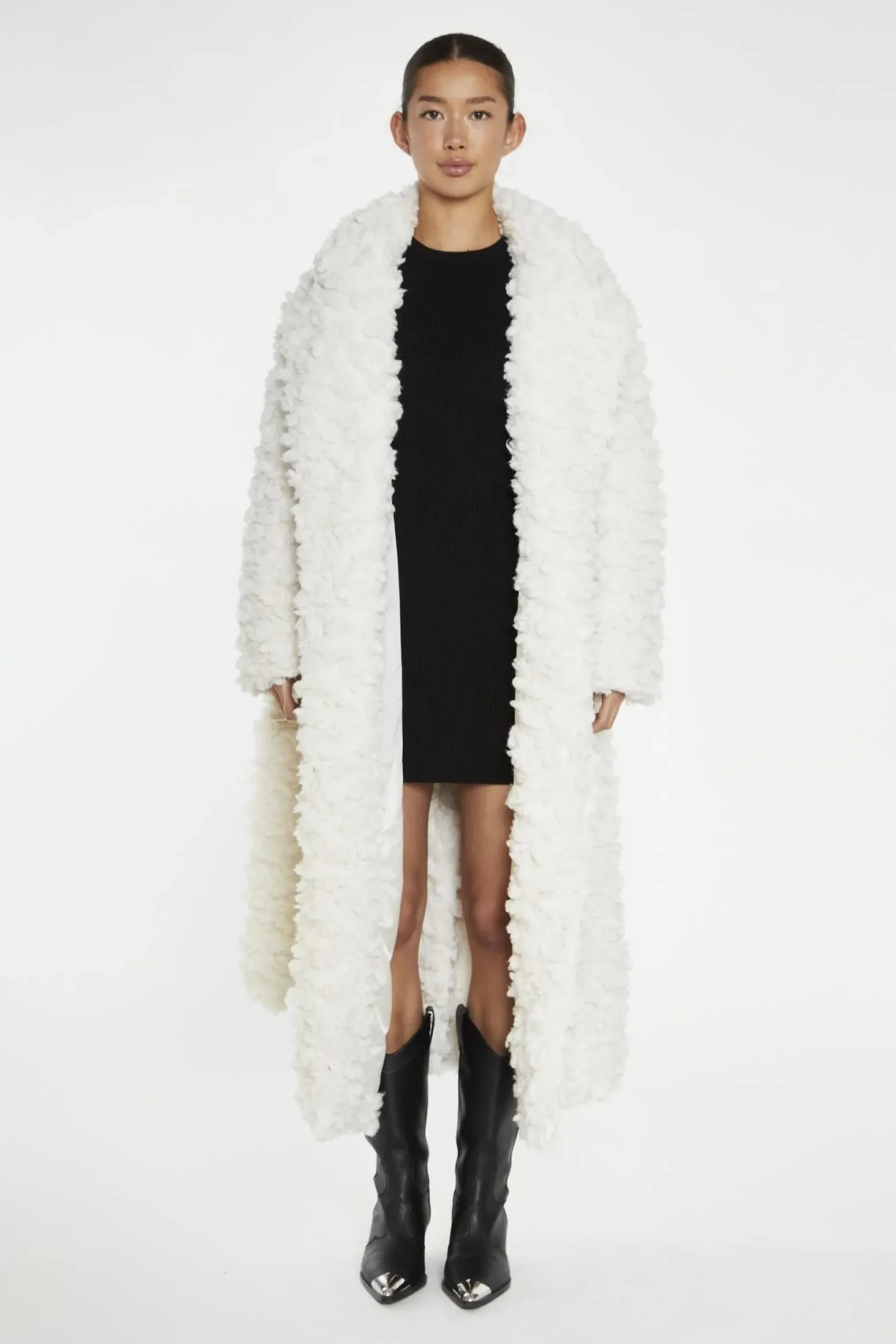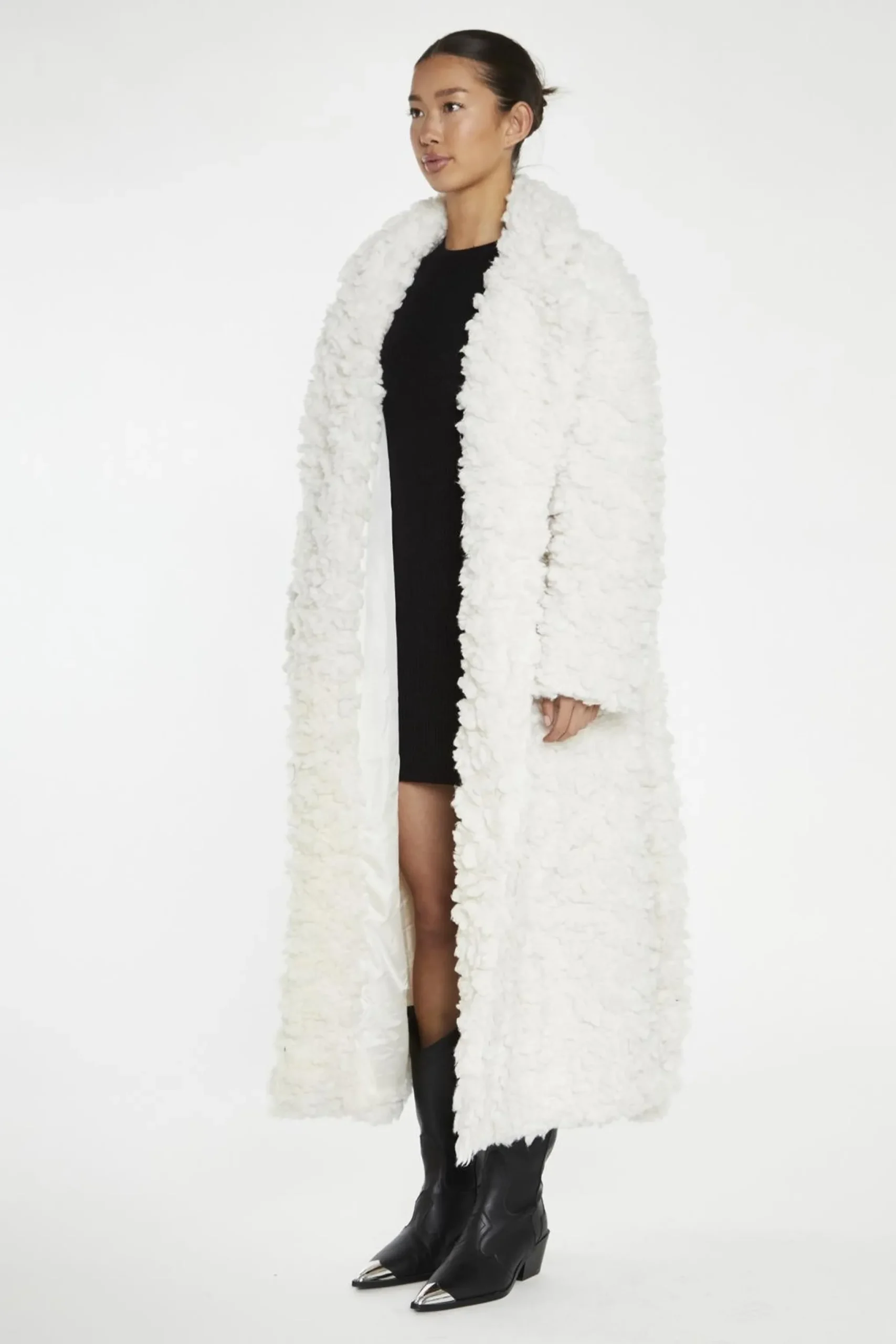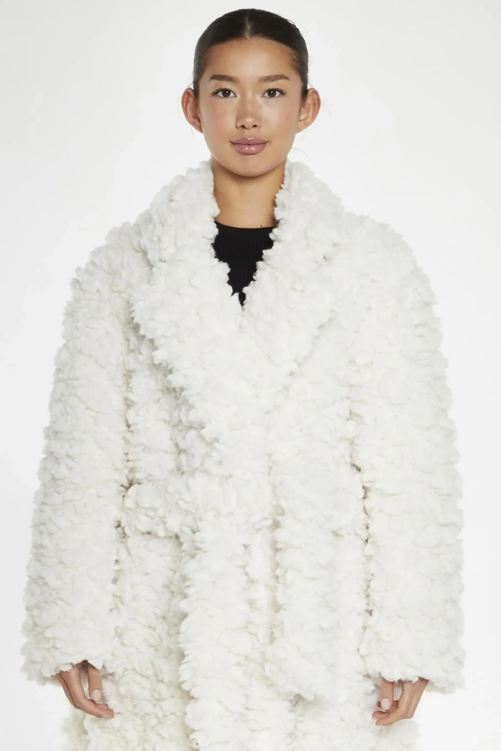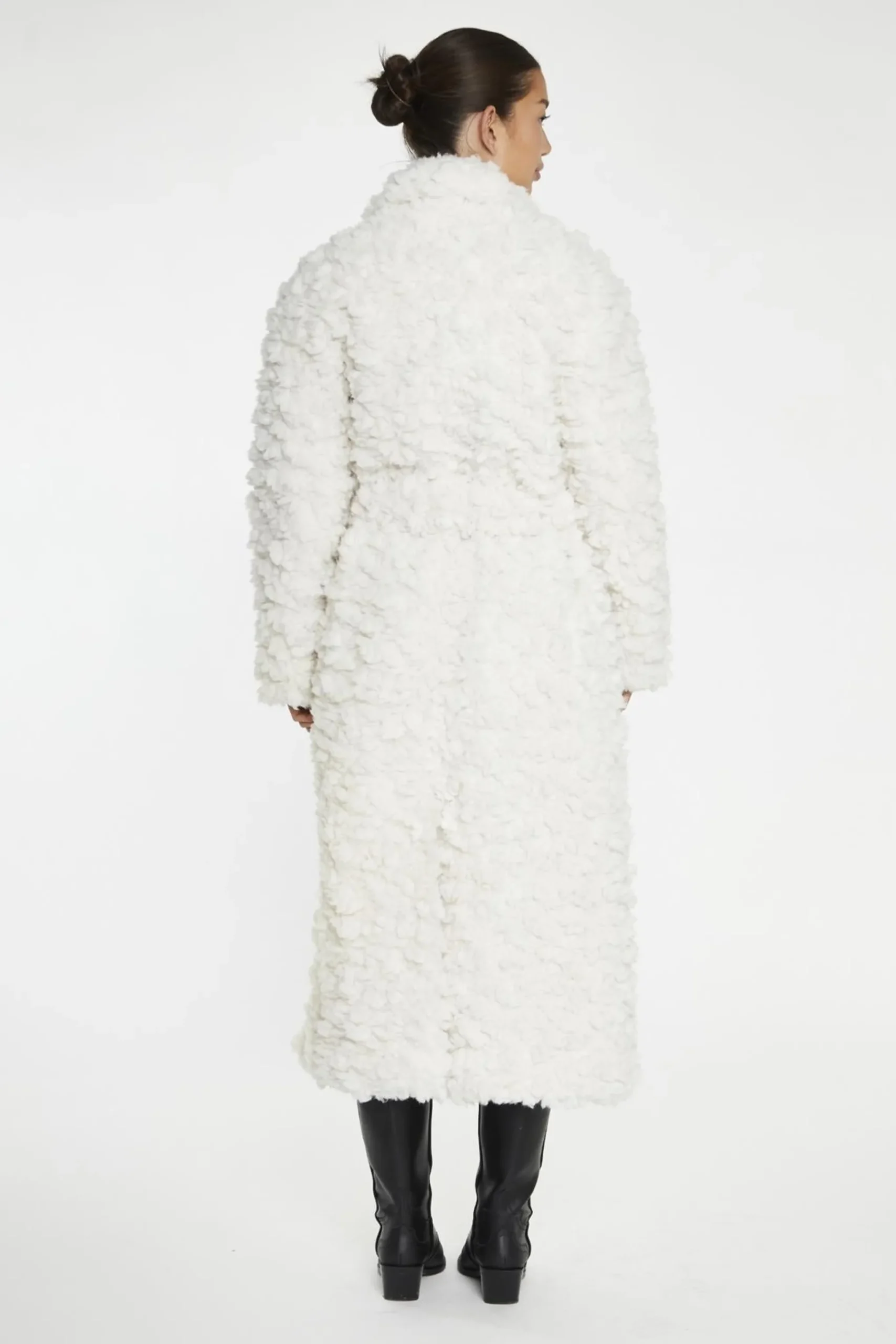 Glamorous Women’s Cream Faux Fur Longline-Coat. Wrap yourself in the cozy embrace of our Cream Faux Fur Longline Coat. This luxurious piece combines style and comfort, perfect for chilly days. The longline length offers extra coverage, while the faux fur adds a touch of elegance. Cinch the waist with the included belt for a flattering silhouette, and stay warm with the lapel collar. Fully lined for added insulation, this coat is a must-have for your winter wardrobe. Elevate your look and stay cozy with our Cream Faux Fur Longline Coat.