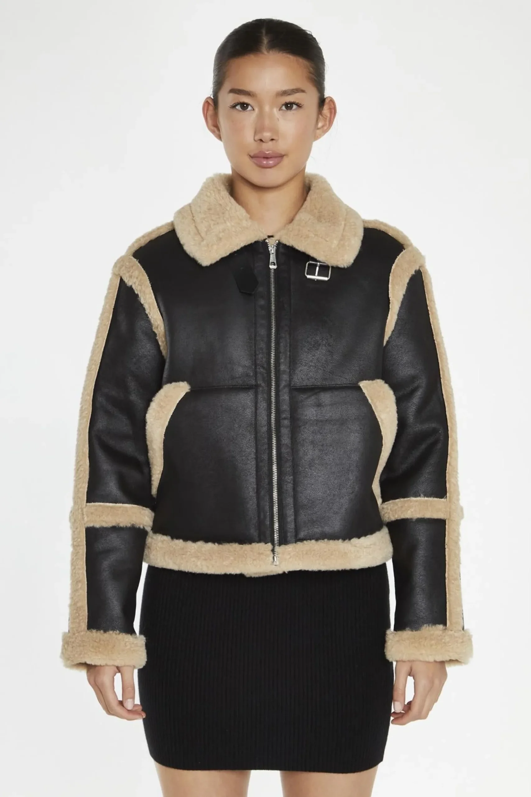 Glamorous Women’s Black-Beige Faux-Fur Trim Jacket. Look chic in our Black-Beige Faux-Fur Trim Jacket. This stylish piece features a sleek, short-length silhouette with a touch of luxurious faux fur trim around the collar, adding a playful, textural element. The collar buckle detail adds a modern, edgy vibe, while the convenient pockets allow you to keep your essentials close at hand. Slip this jacket on over your favourite sweater and jeans for a casual, yet put-together look, or pair it with a mini dress and heels for a night out. Crafted with high-quality materials, this jacket is both durable and versatile, ensuring you can enjoy it season after season.