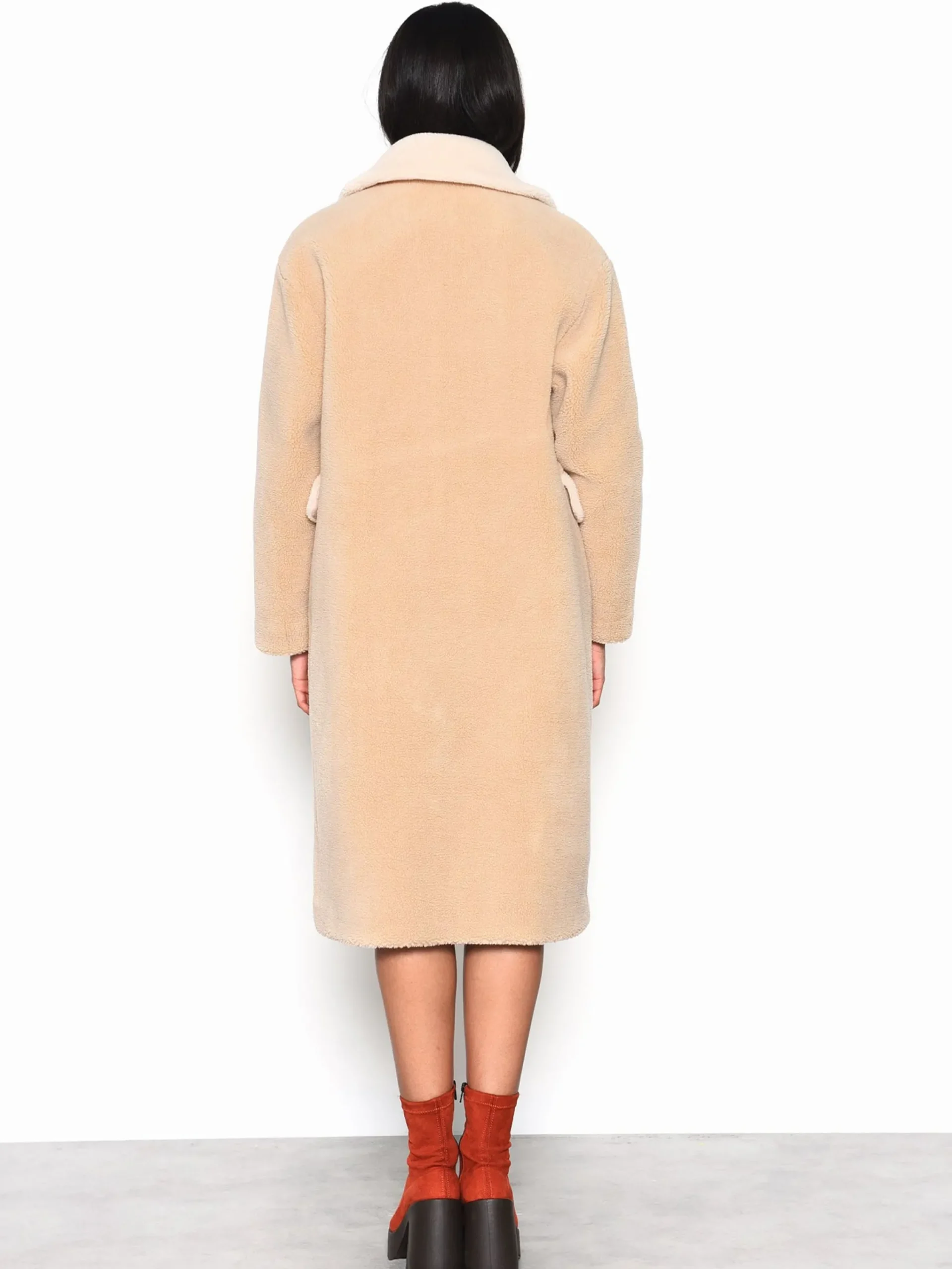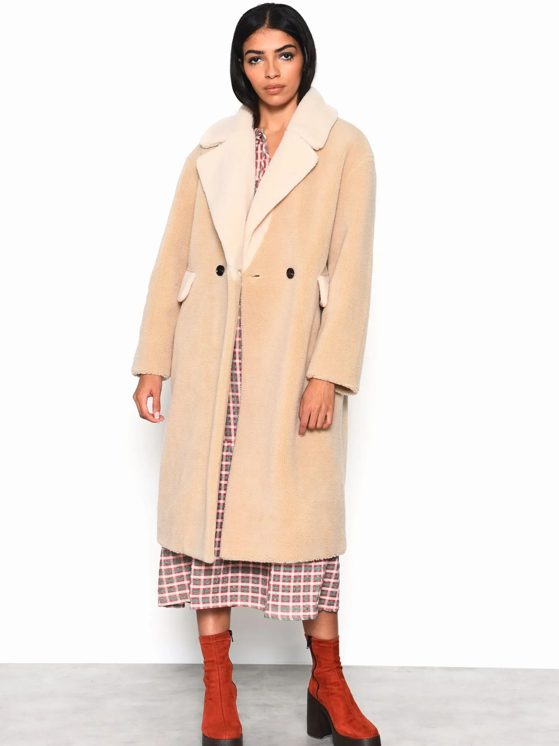 Glamorous Womens Stone Cream Fur Longline Coat. This gorgeous piece is perfect for your wardrobe this autumn season. Featuring a flattering cut and faux fur teddy texture, this jacket will not fail to impress! Style with the matching a white mini dress and chunky boots for that effortless elegant daytime look.