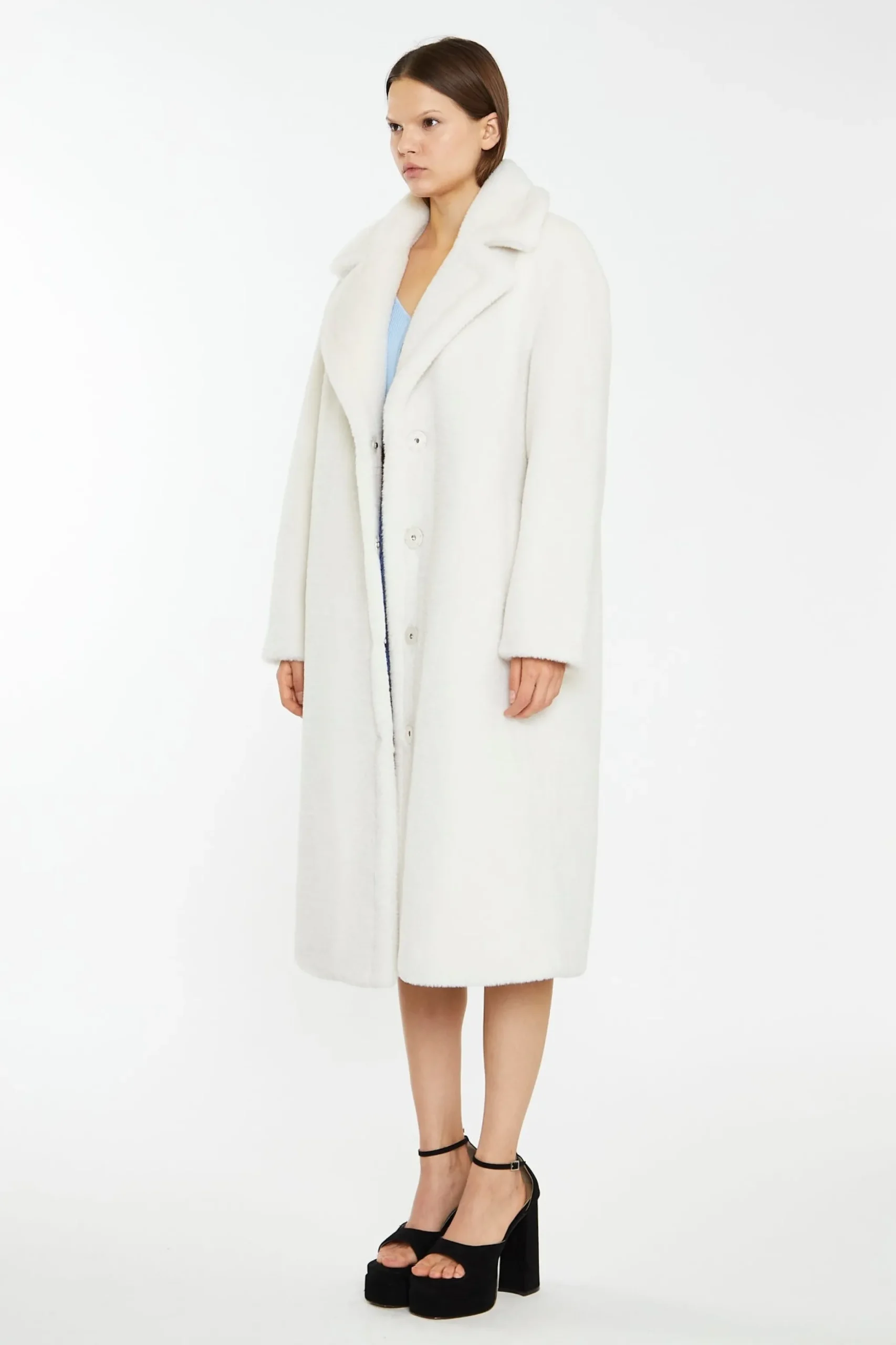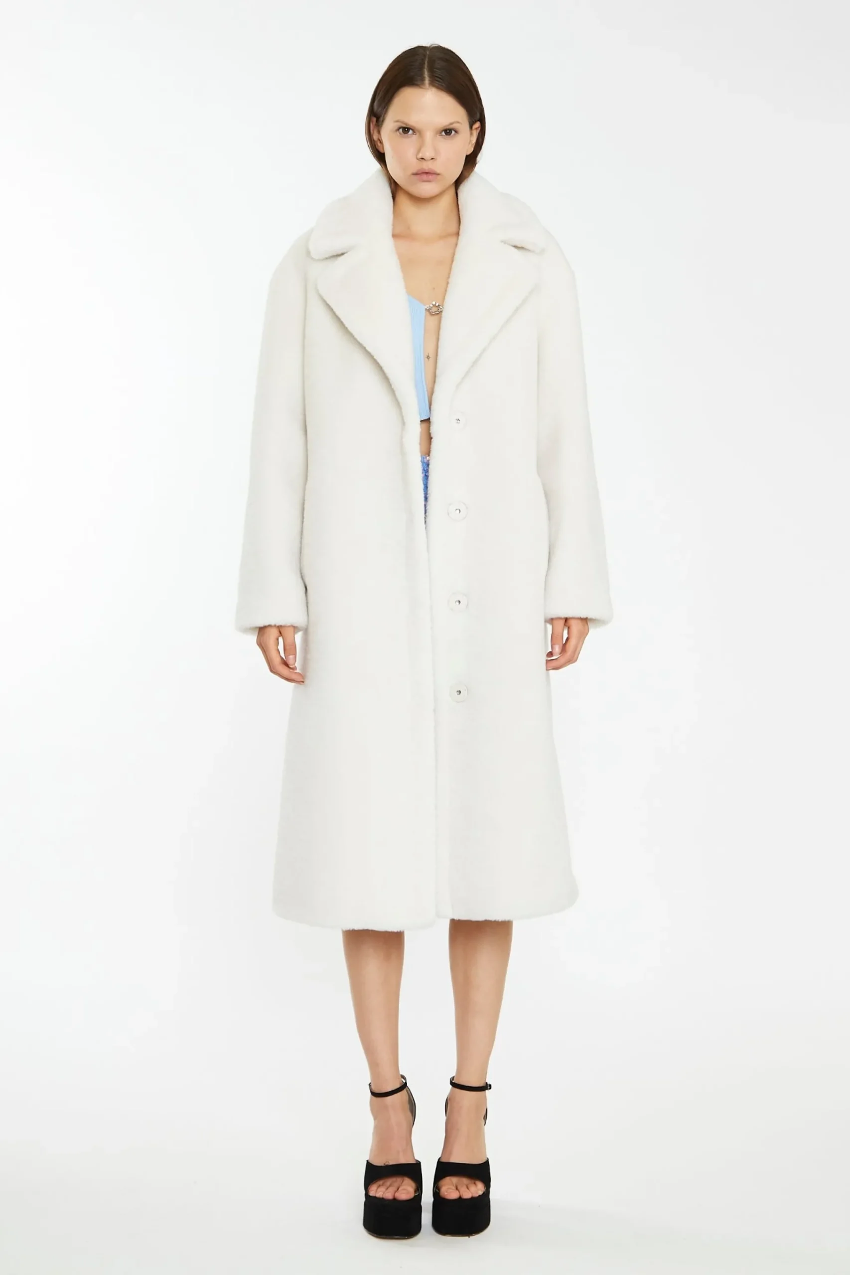 Glamorous Womens Winter White Longline Faux Fur Coat. Be prepared for the winter in this stylishly warm and chic longline faux fur coat. Keep cozy with its faux fur fabric, pockets, and lapel collar, this coat is perfect for braving the cold and keeping cozy at the same time.