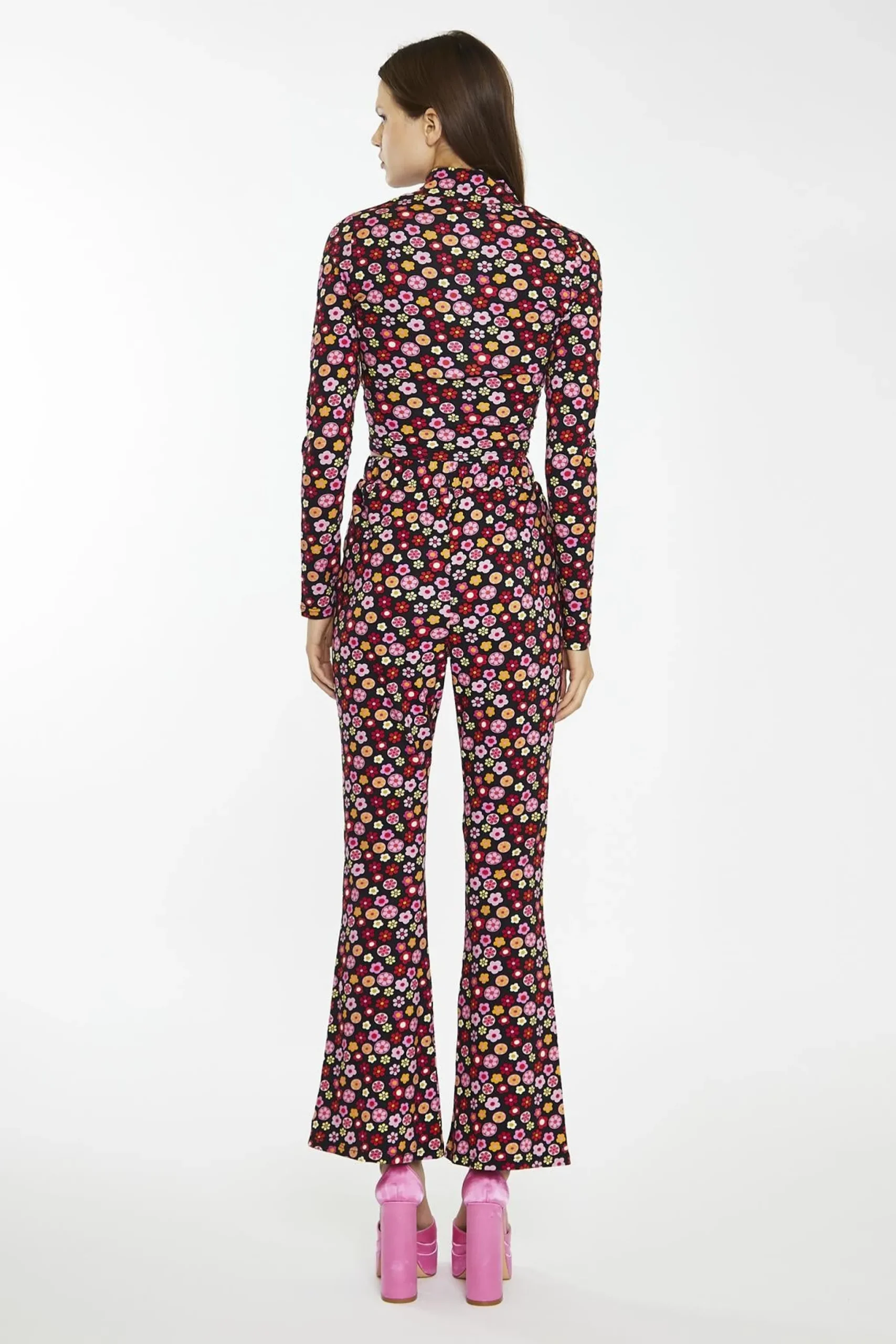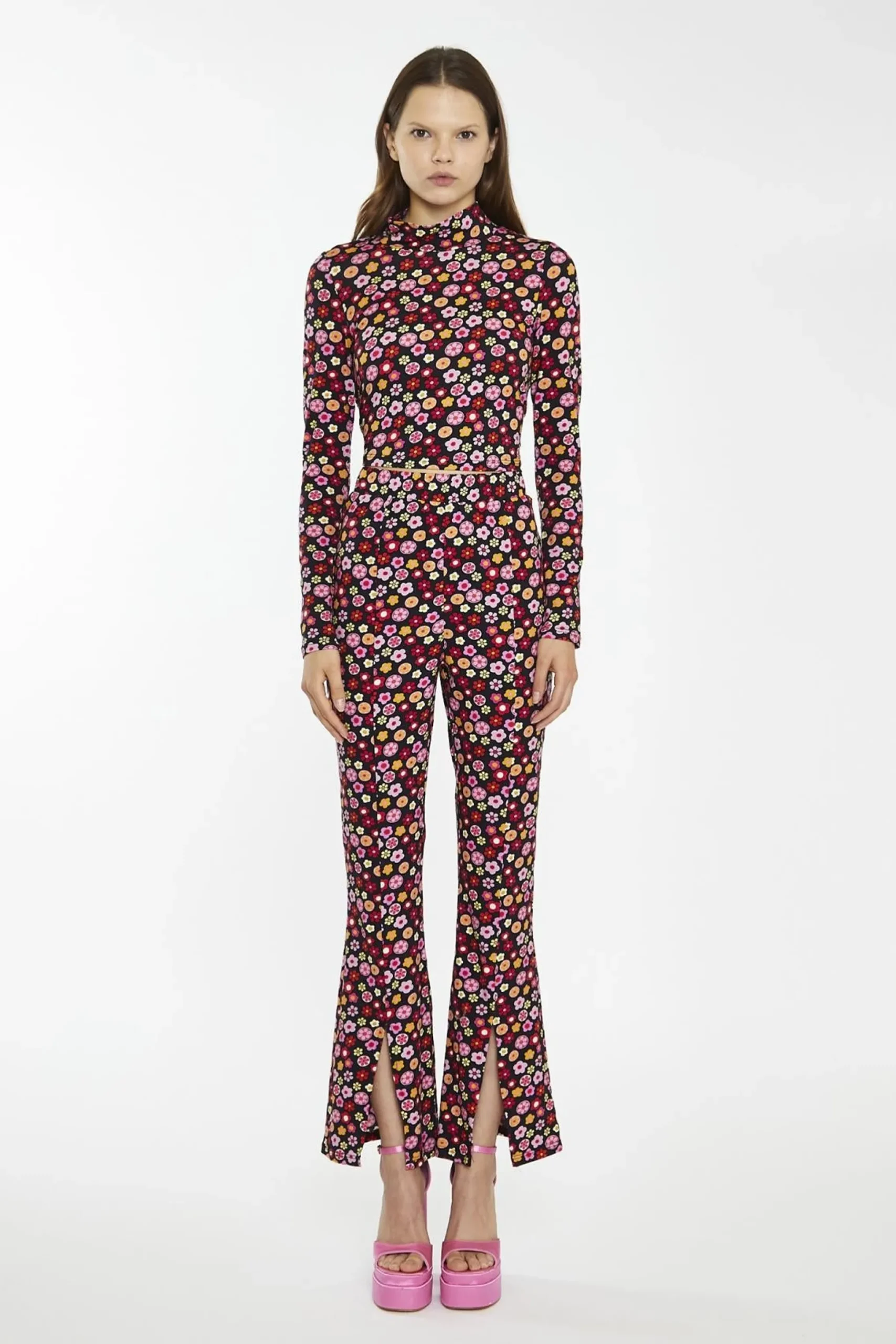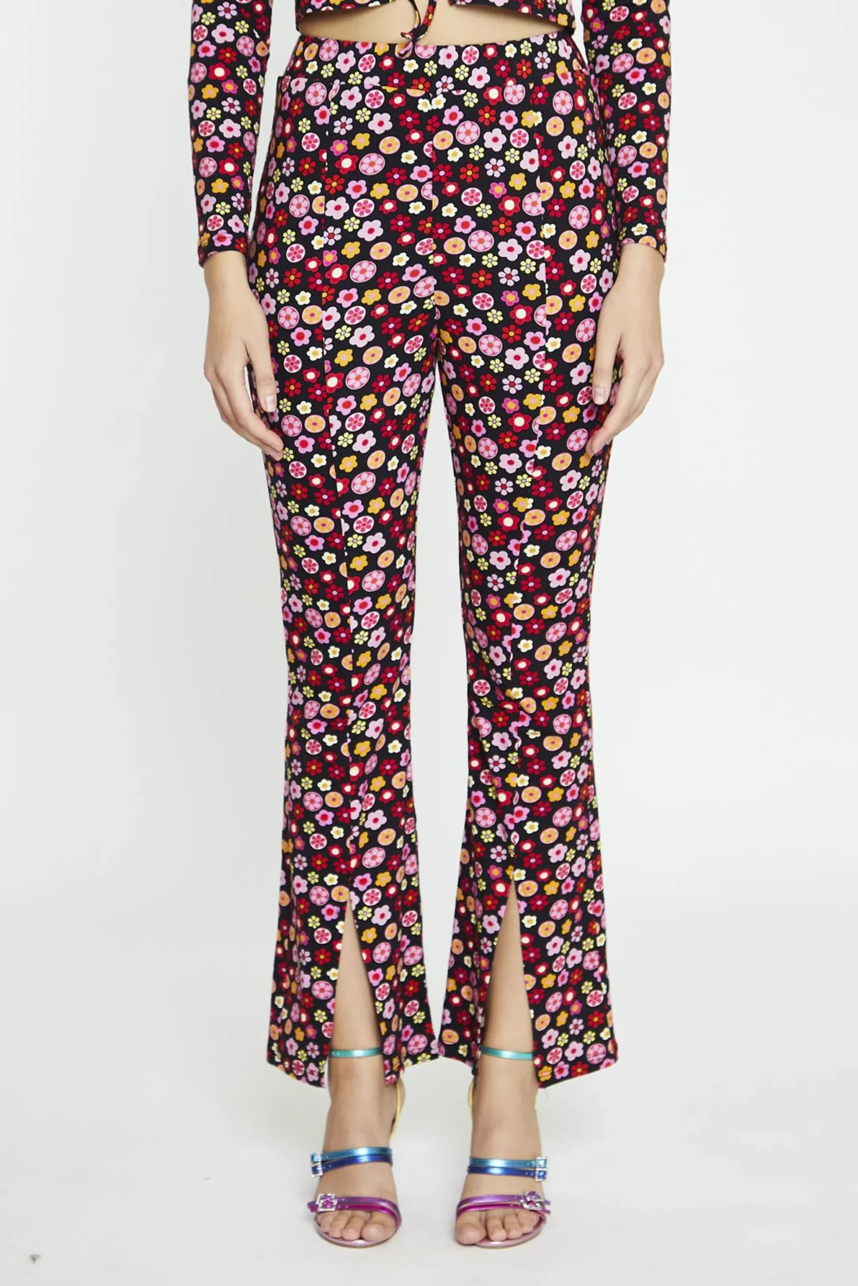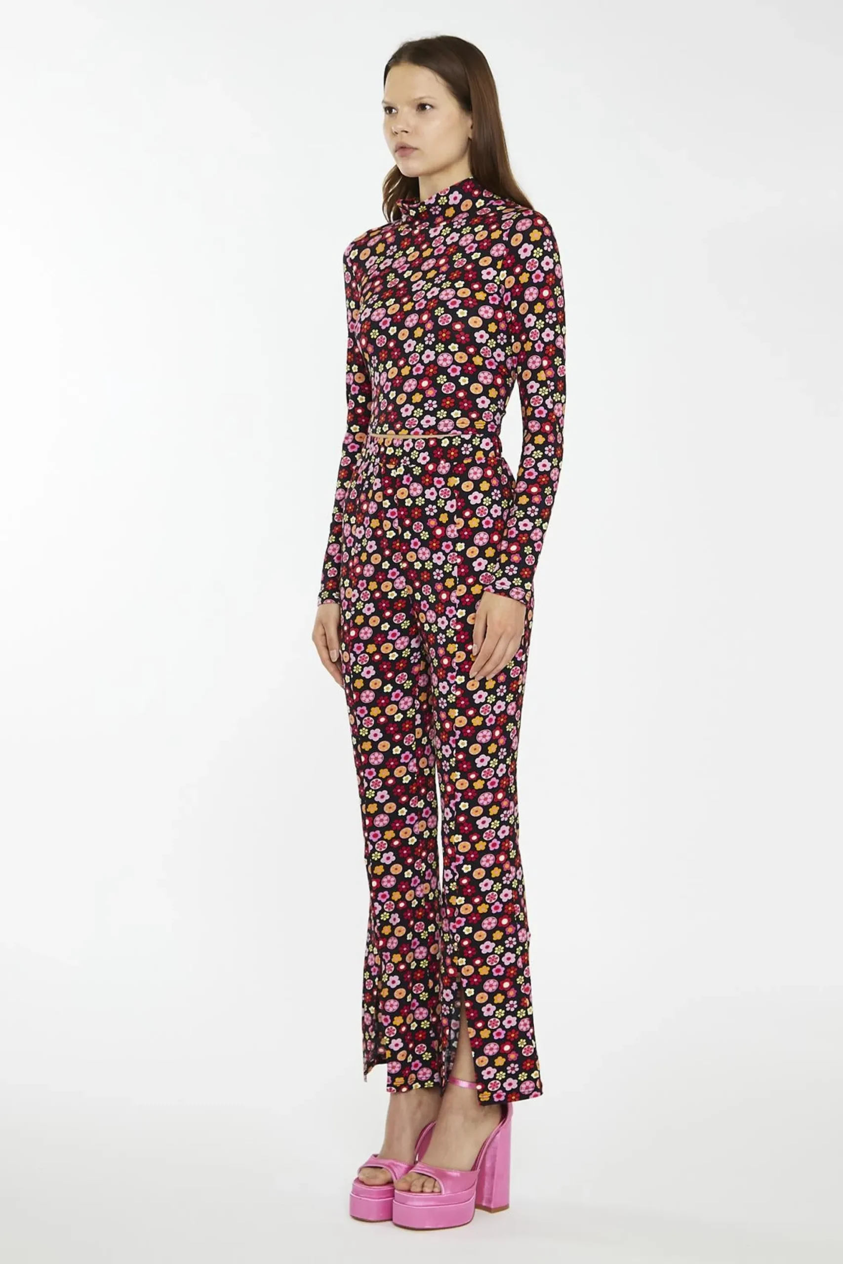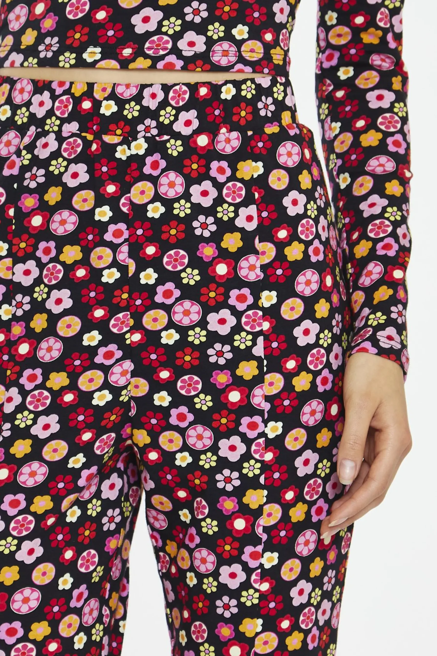 Glamorous Women’s Black 60S Flower Split-Front Flared Trousers . These groovy trousers are a blast from the past with a modern twist. The eye-catching 60s-inspired floral print brings a fun, retro vibe to your wardrobe. The low-rise fit sits comfortably on your hips, while the split-front flared design adds a dramatic flair to your stride. These trousers are perfect for those who love to make a statement with their fashion choices. The split front not only looks fab but also allows for easy movement, making them ideal for dancing the night away. Pair them with the matching top for a coordinated, head-to-toe vintage look, or mix it up with a solid tee for a more casual ensemble. The floral print is bold enough to stand out yet versatile enough to style in numerous ways. These trousers are more than just clothing – they’re a mood lifter, bringing a touch of flower power to your day. They’re sure to become a favourite piece in your wardrobe, perfect for any occasion where you want to channel your inner 60s icon.