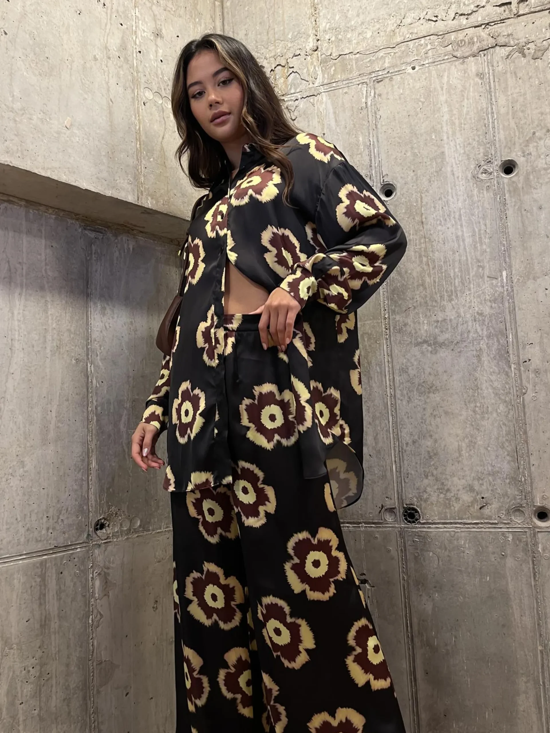Glamorous Care Women’s Black Amber-Yellow Flower Oversized-Shirt. Say hello to your new favourite shirt – a comfy, oversized wonder that’s as eco-friendly as it is stylish. This classic shirt design gets a modern twist with its roomy fit, perfect for those days when you want to feel relaxed and look effortlessly cool. The eye-catching black base is brought to life with vibrant amber-yellow flower prints, adding a pop of colour to your wardrobe. But here’s the best part: it’s made from recycled fabric, so you can feel good about your fashion choices. Throw it on over jeans for a casual day out, or dress it up with some tailored pants for a more polished look. It’s versatile, it’s comfortable, and it’s doing its bit for the planet. This shirt is like a breath of fresh air for your closet – and trust us, you’ll find yourself reaching for it time and time again.